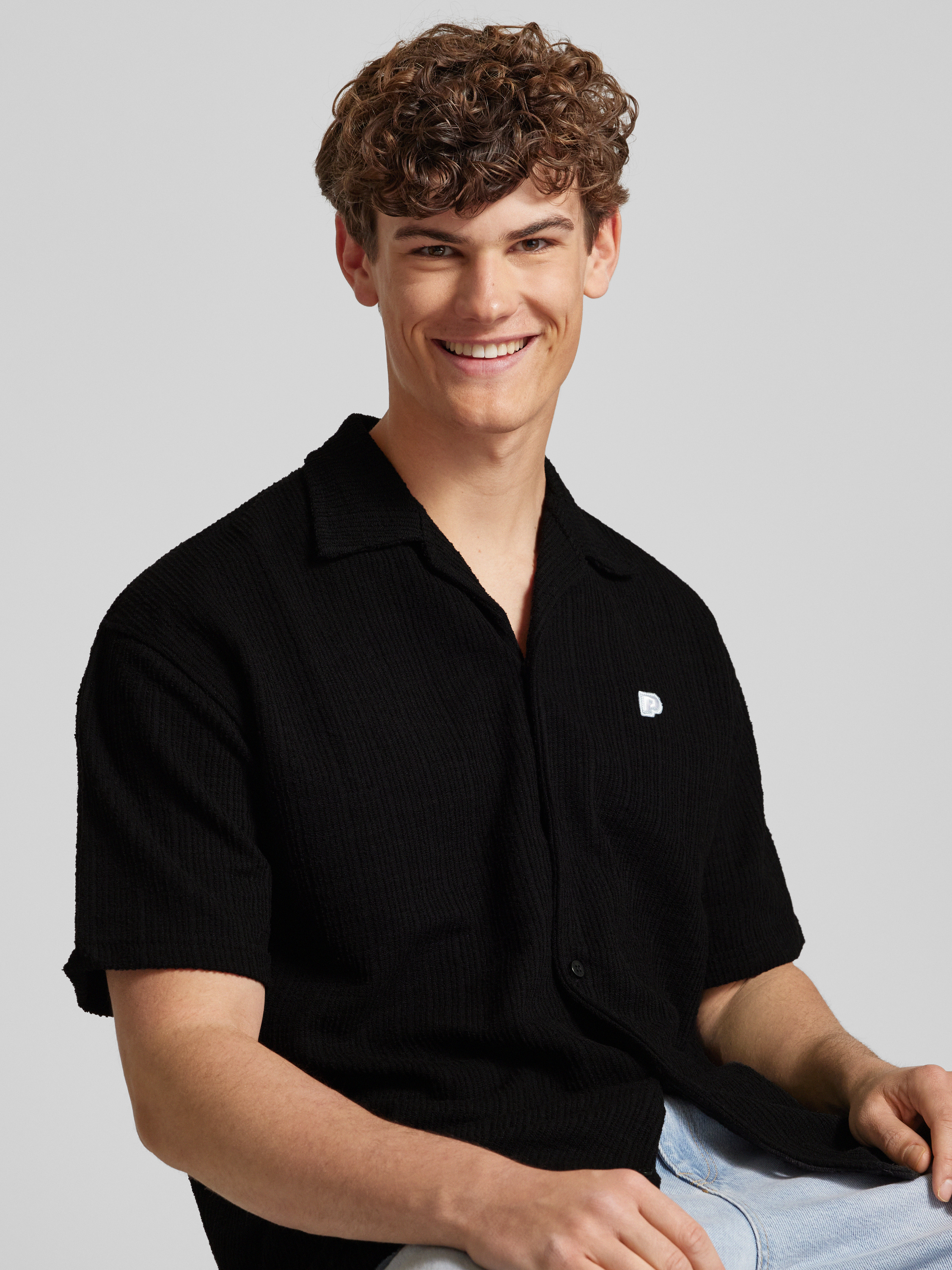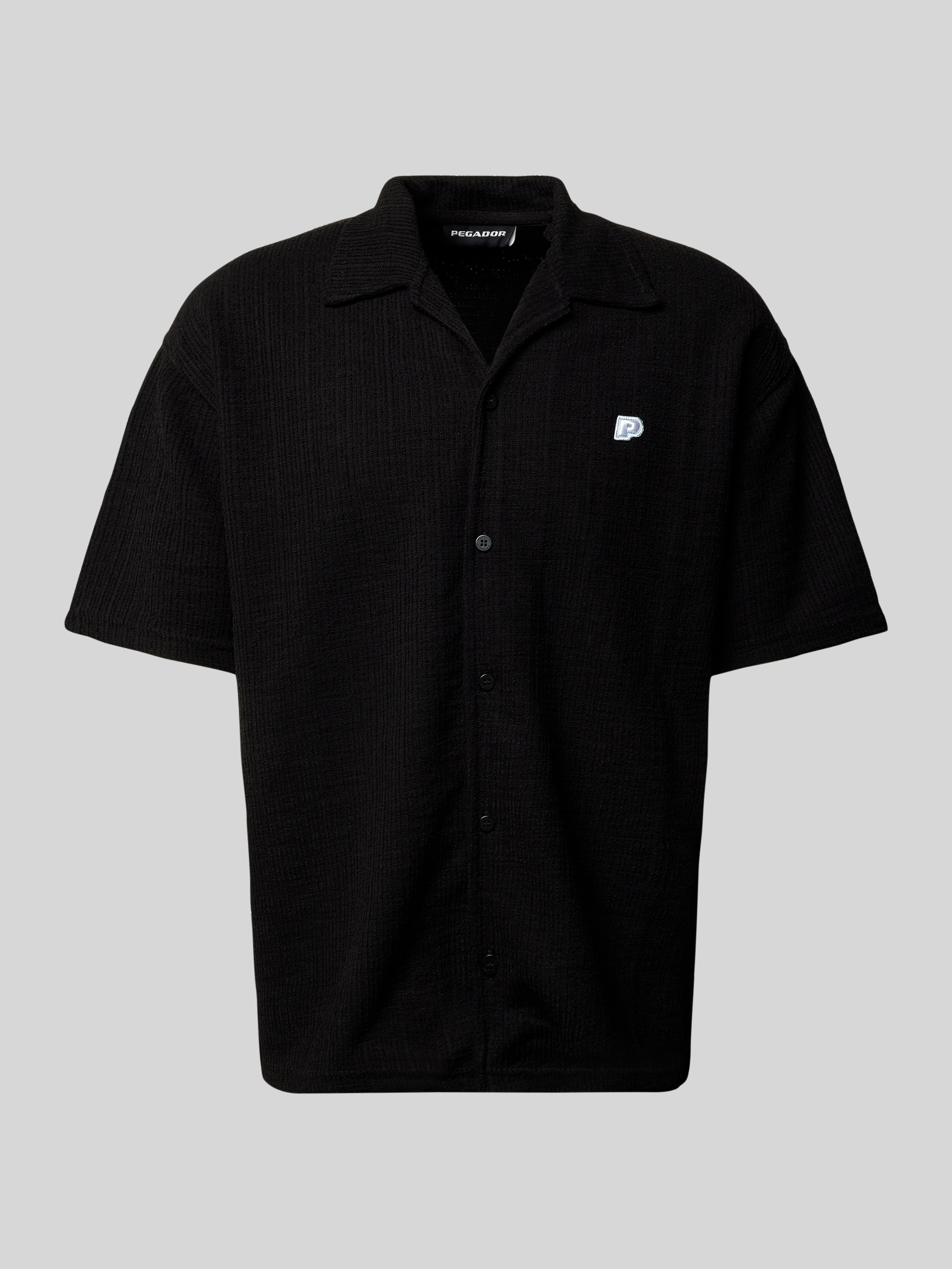 Relaxed fit vrijetijdsoverhemd met structuurmotief, model 'LIBCO' in zwart
