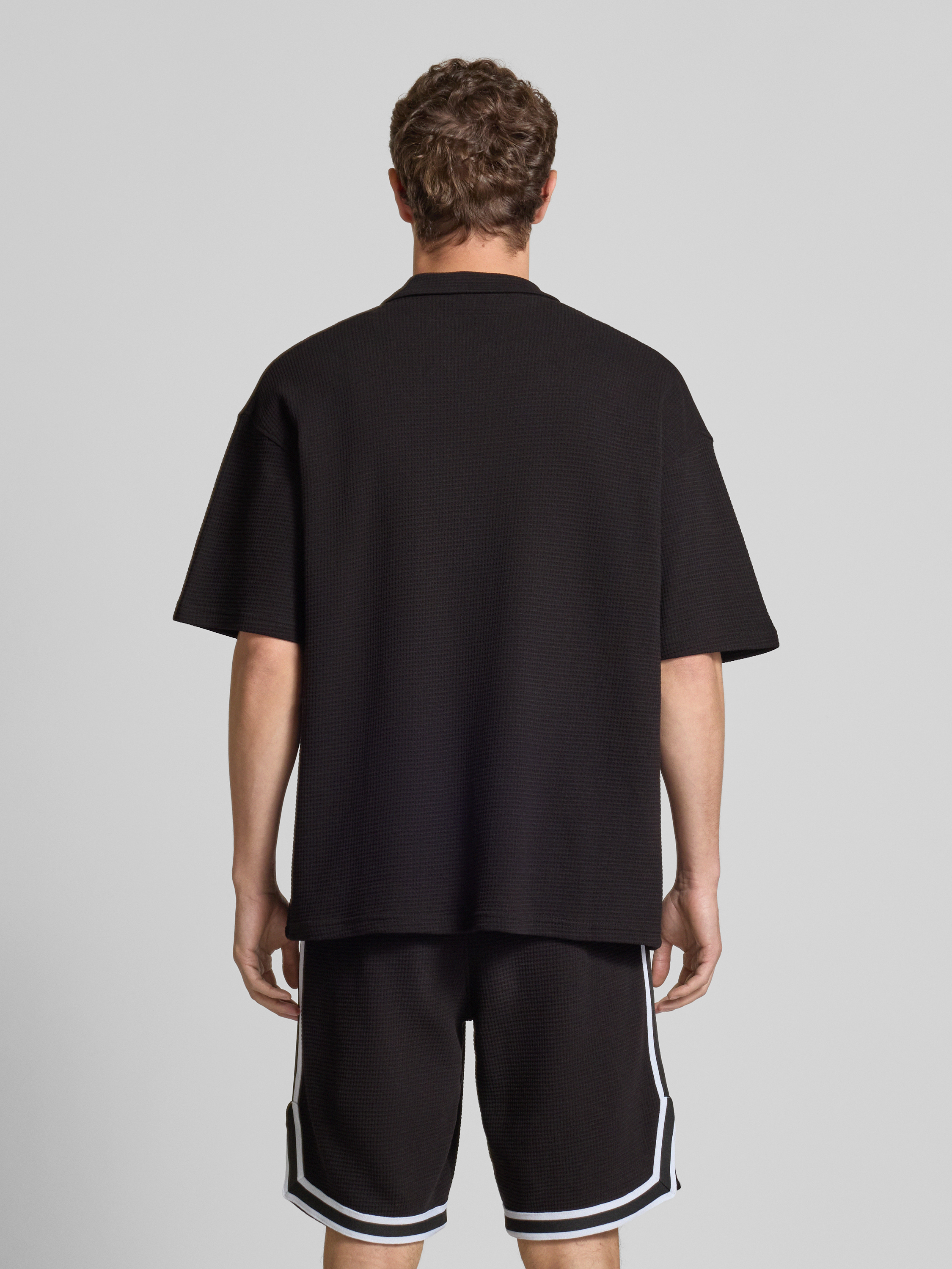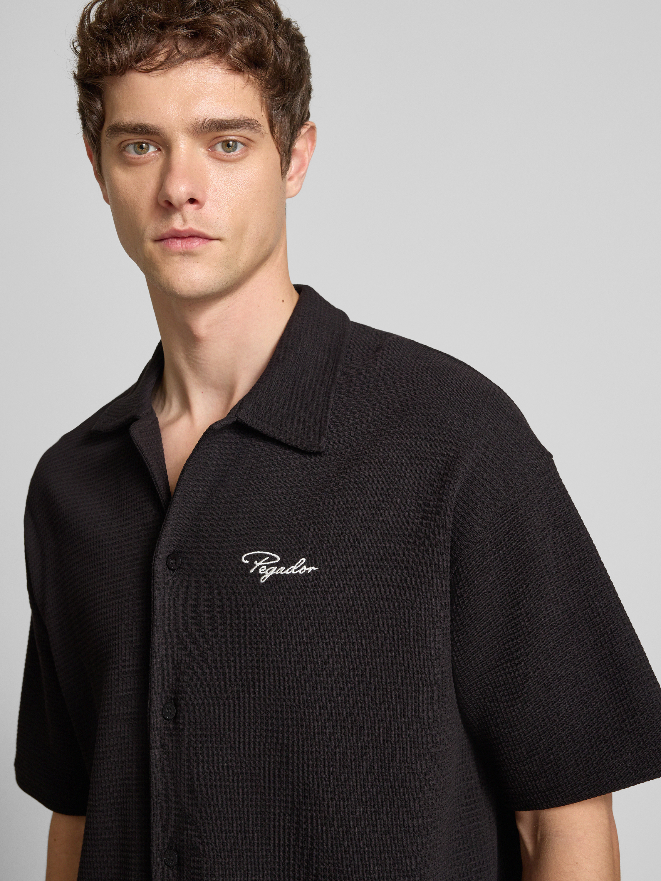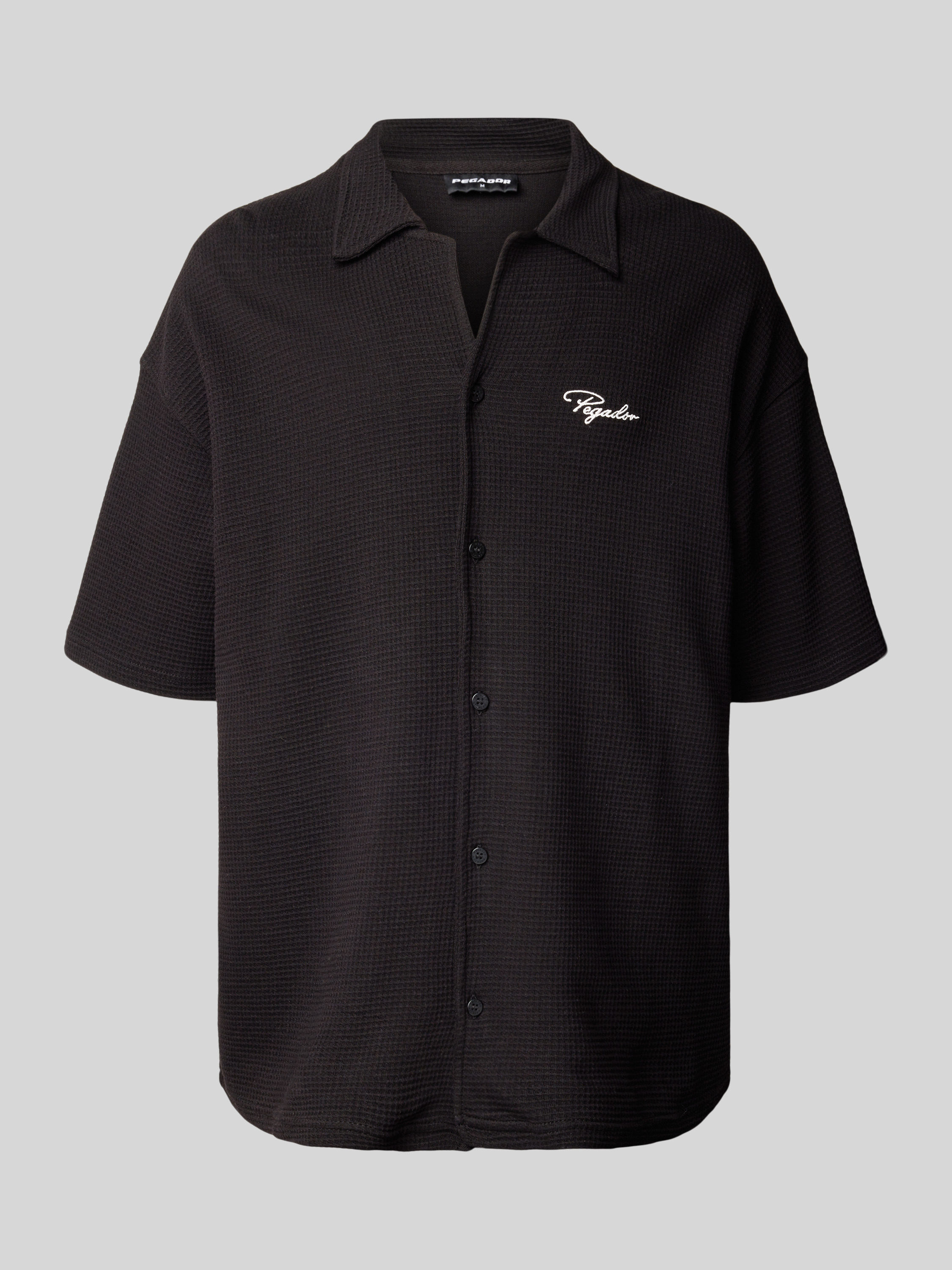 Relaxed fit vrijetijdsoverhemd met structuurmotief, model 'SIGNAR' in zwart