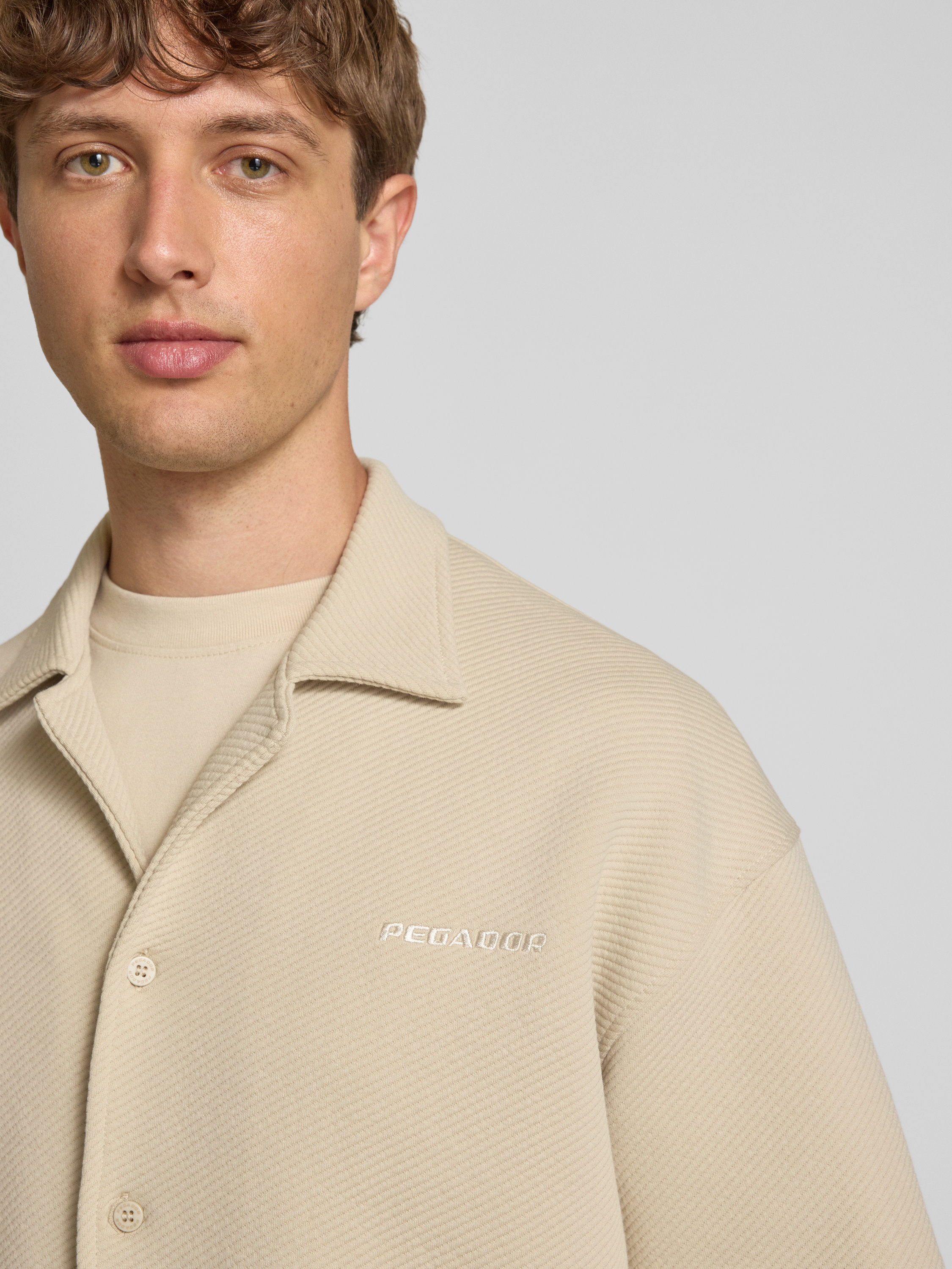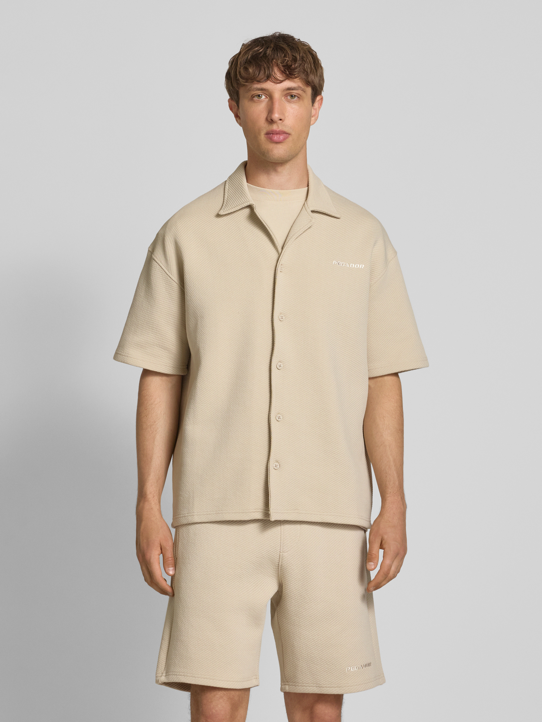 Relaxed fit vrijetijdsoverhemd met structuurmotief, model 'Tate' in beige