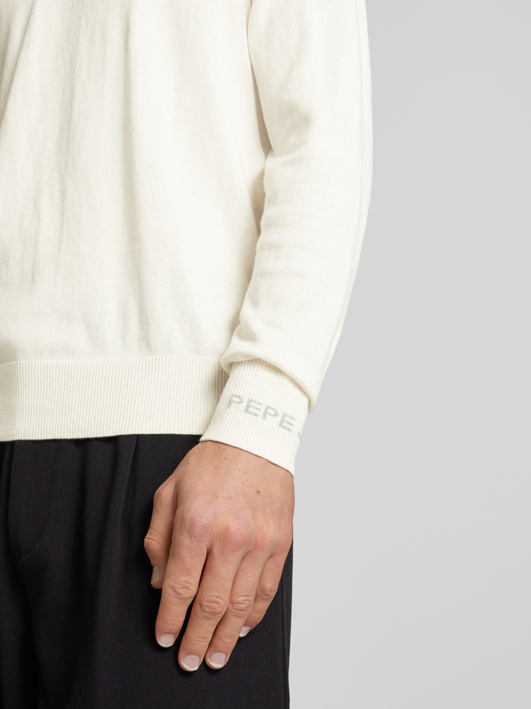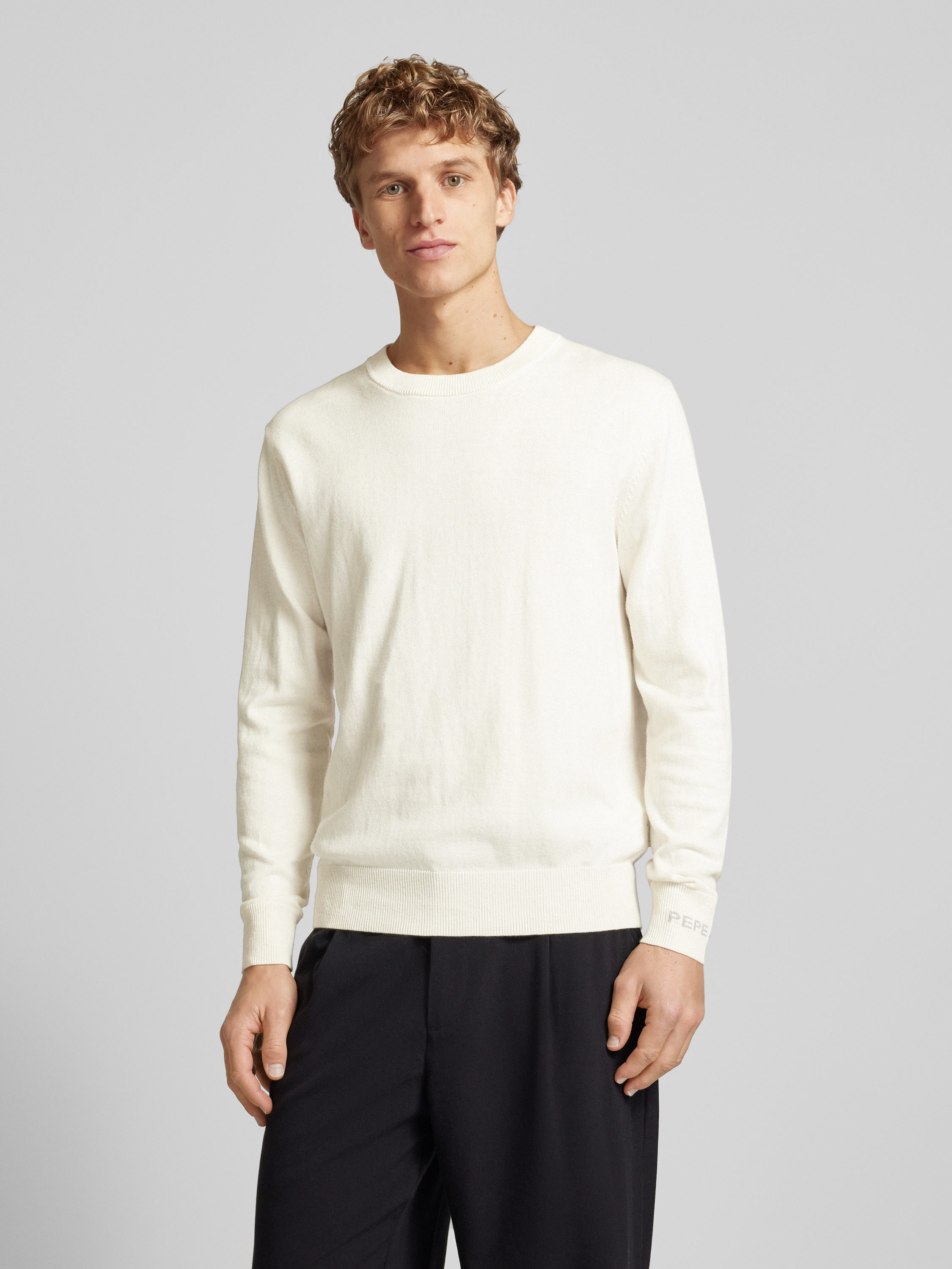 Gebreide pullover met ronde hals, model 'Andre' in offwhite