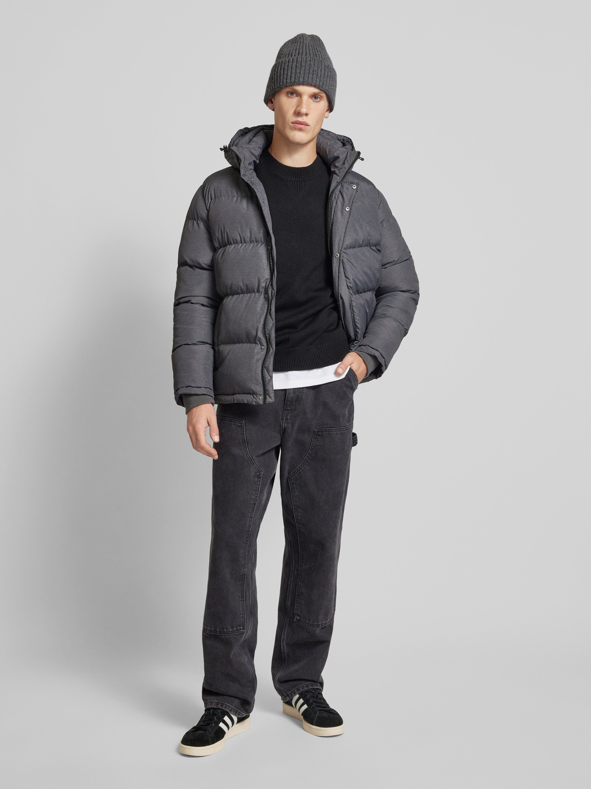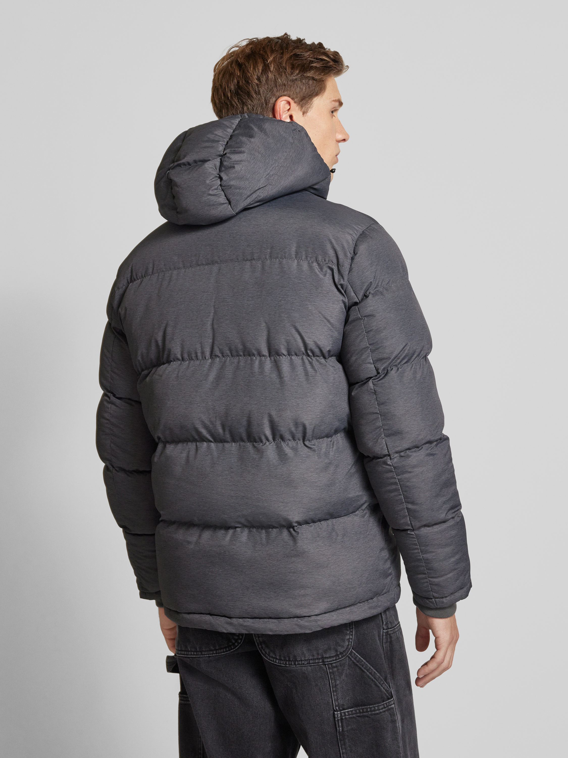 Gewatteerd jack met capuchon, model 'Tobias' in donkergrijs