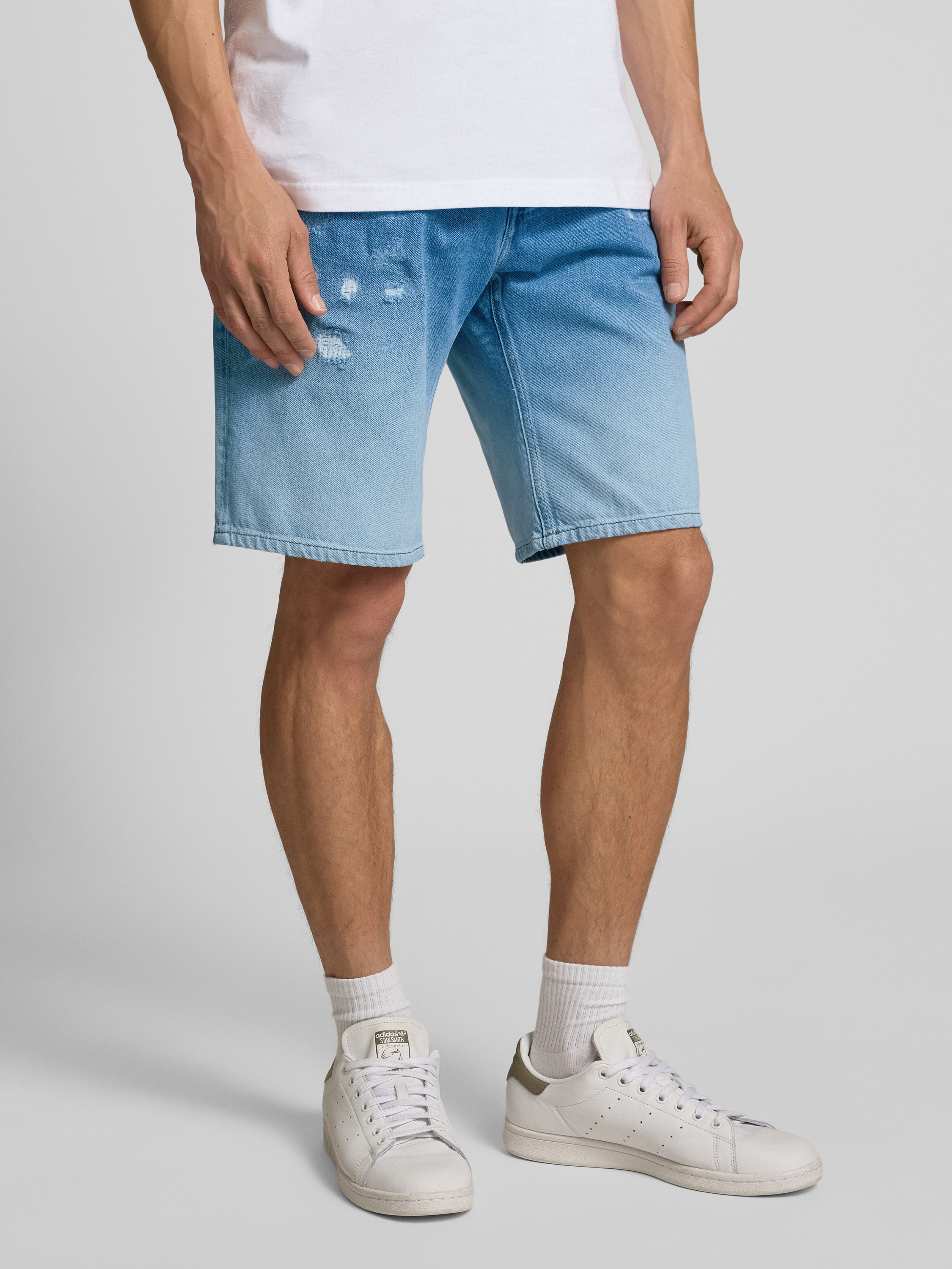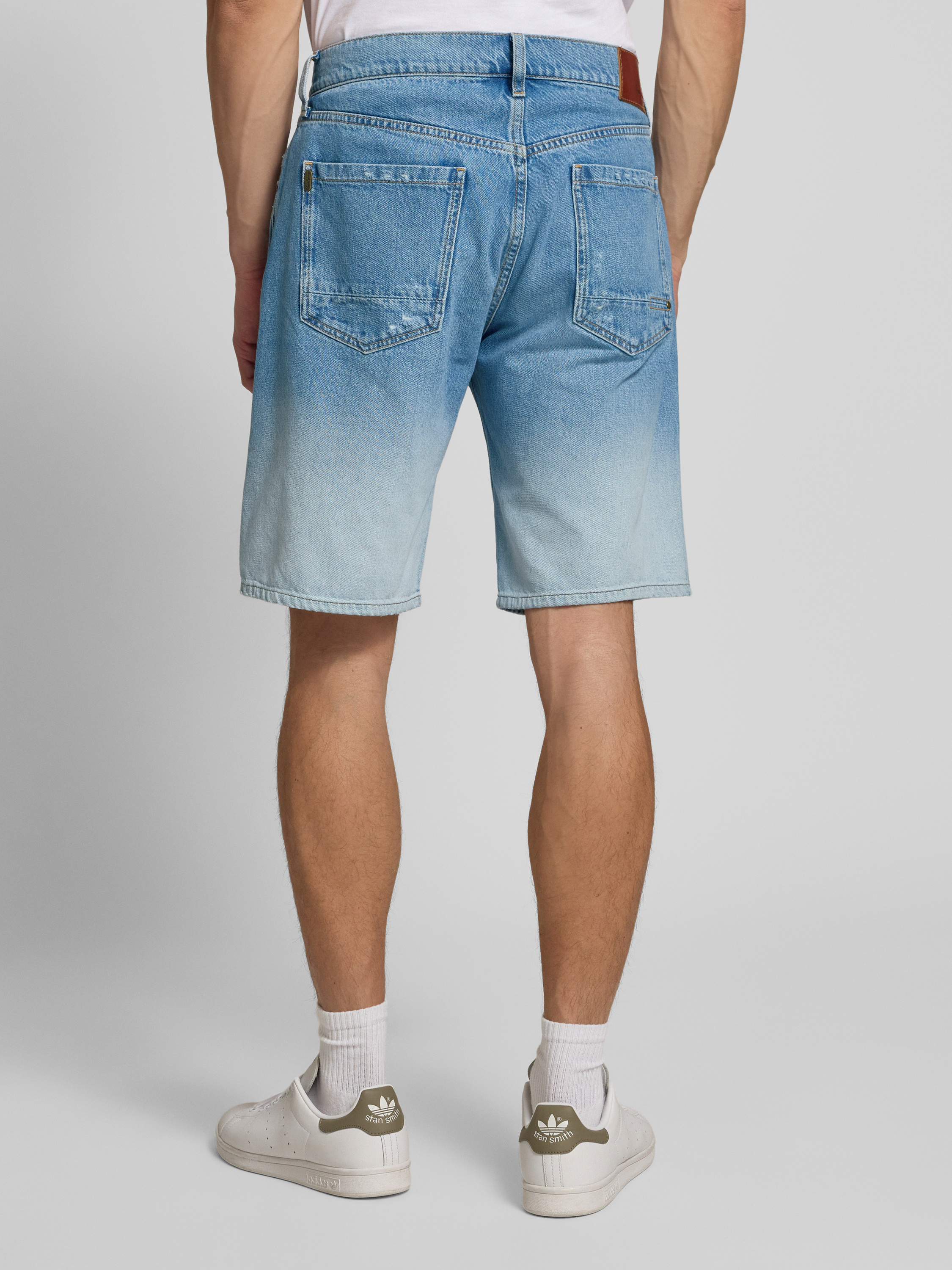 Loose fit korte jeans in destroyed-look in jeansblauw