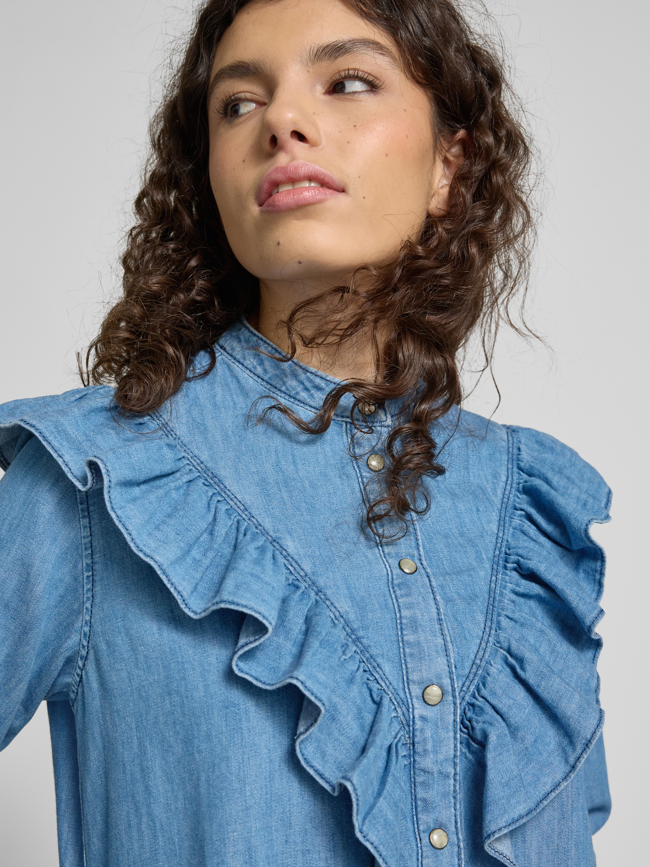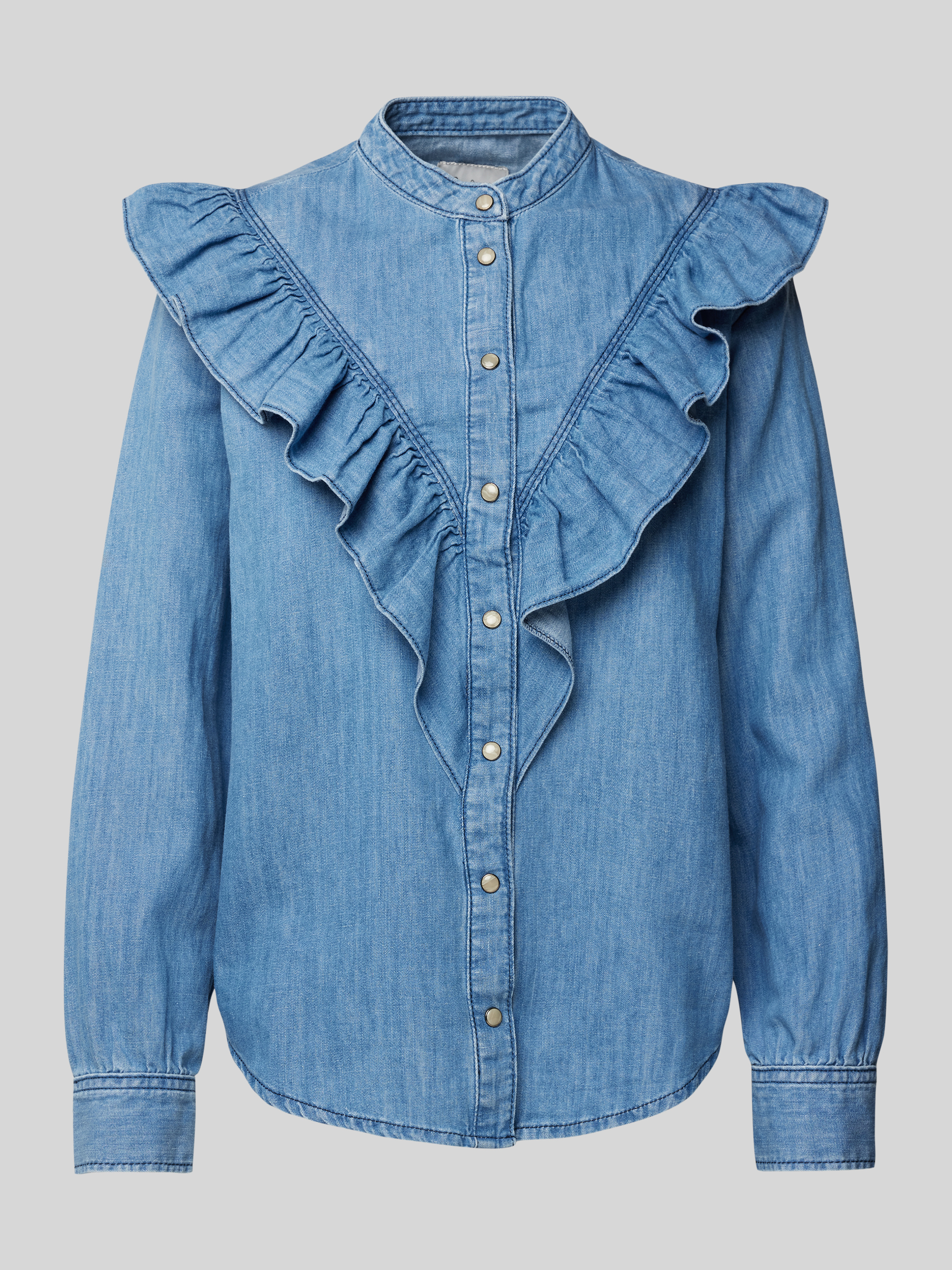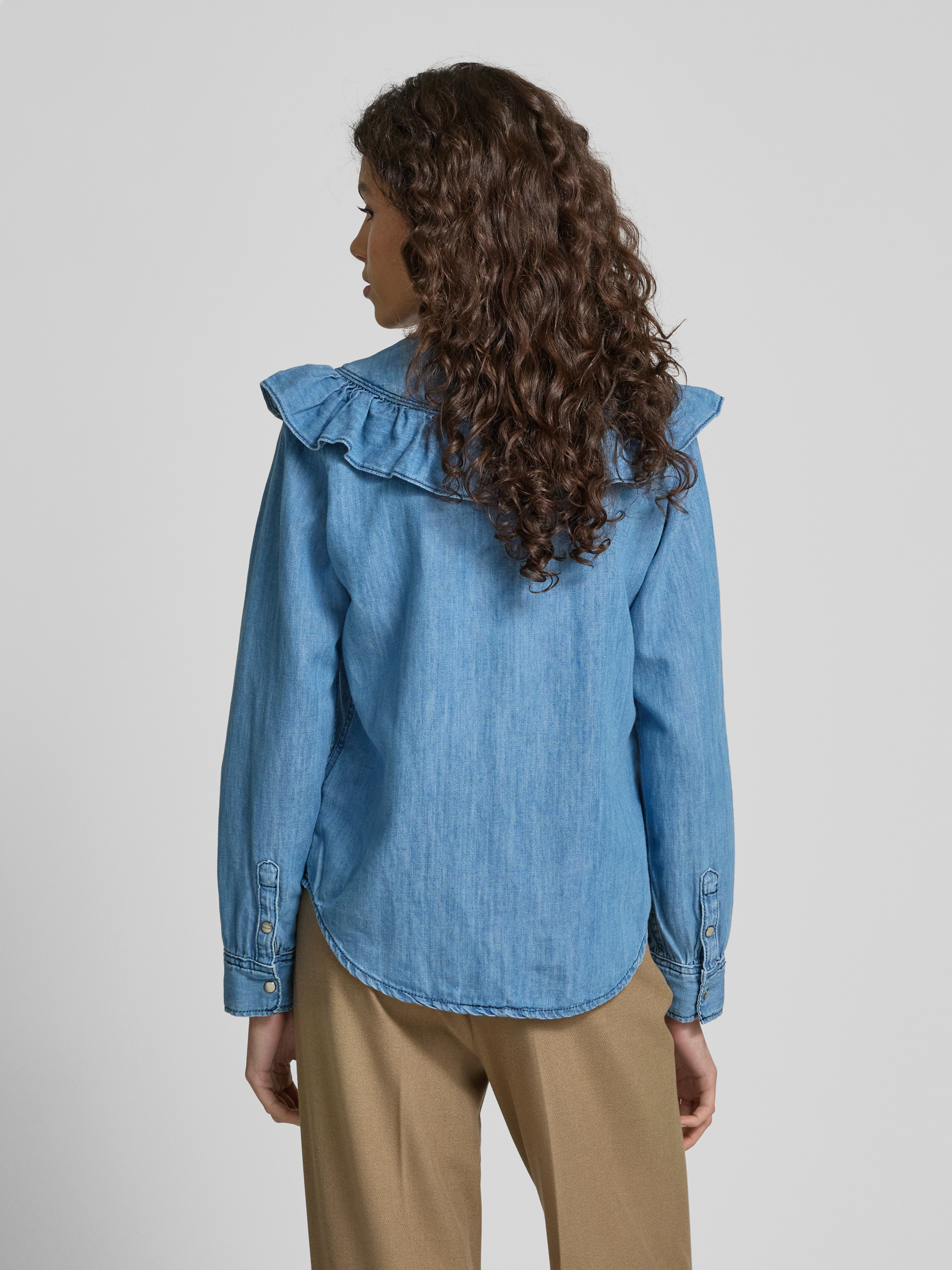 Overhemdblouse met drukknoopsluiting, model 'KATIA' in blauw