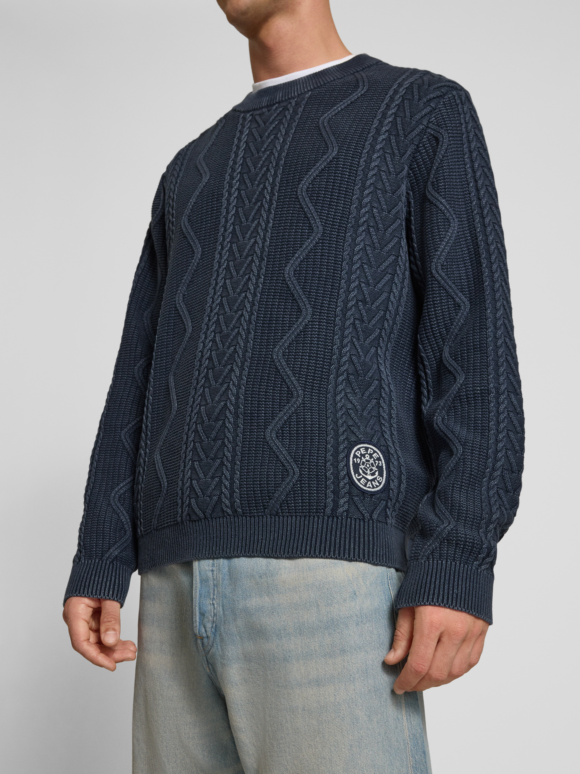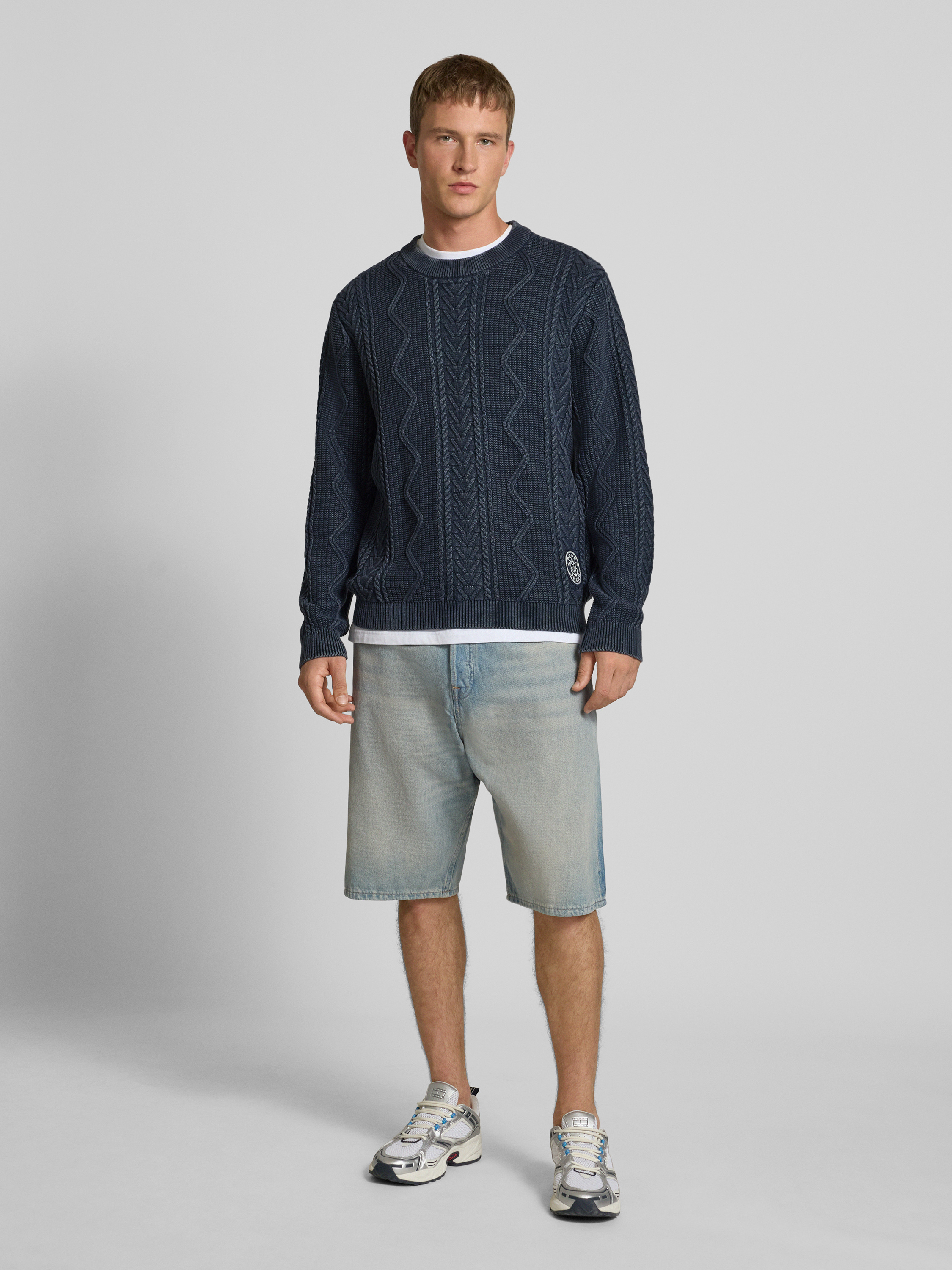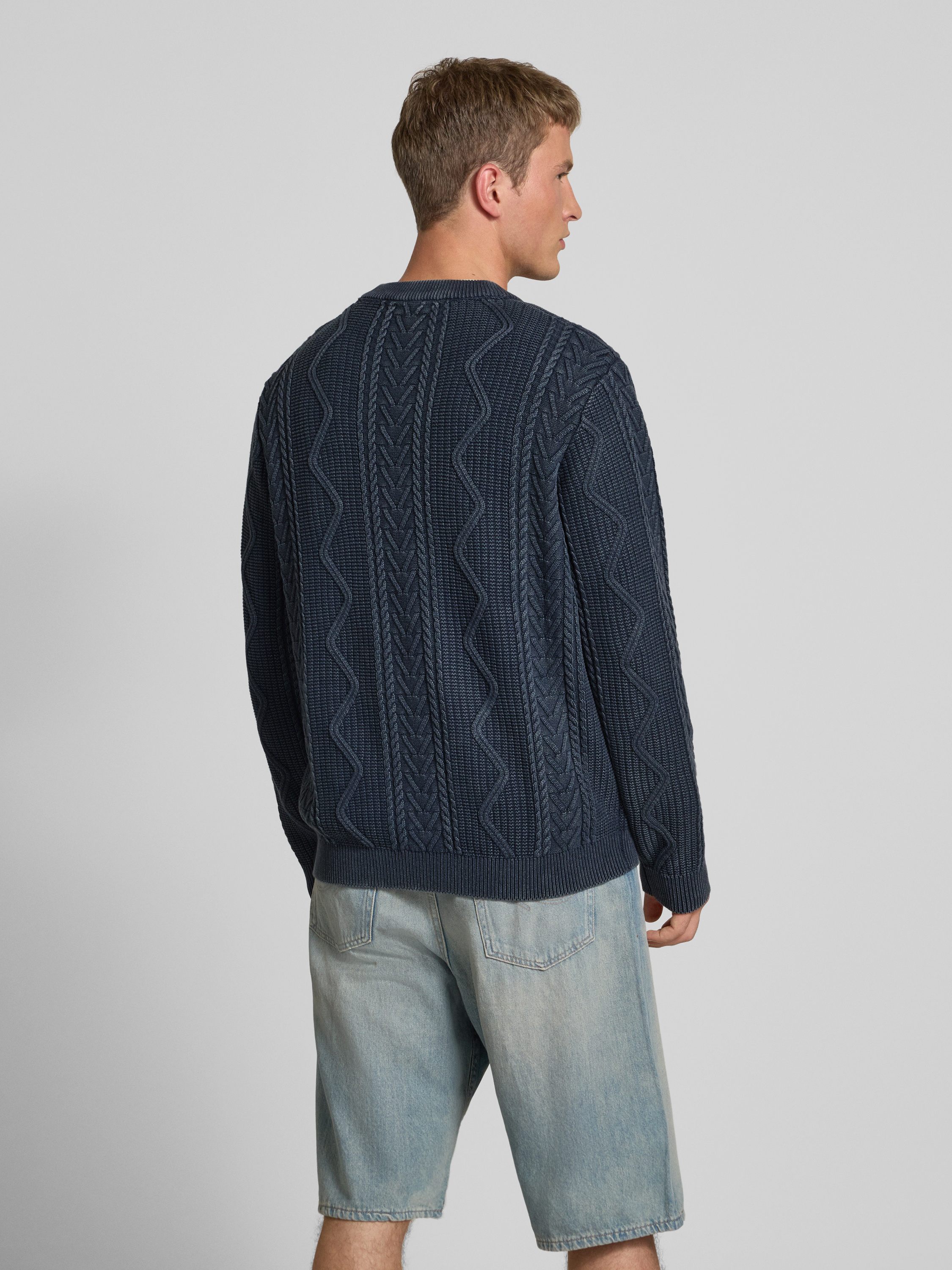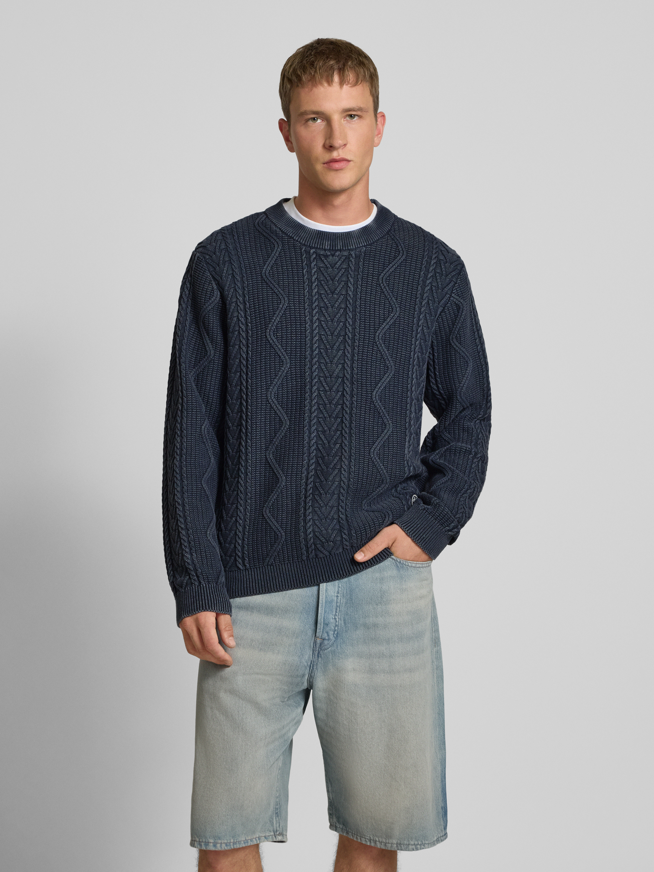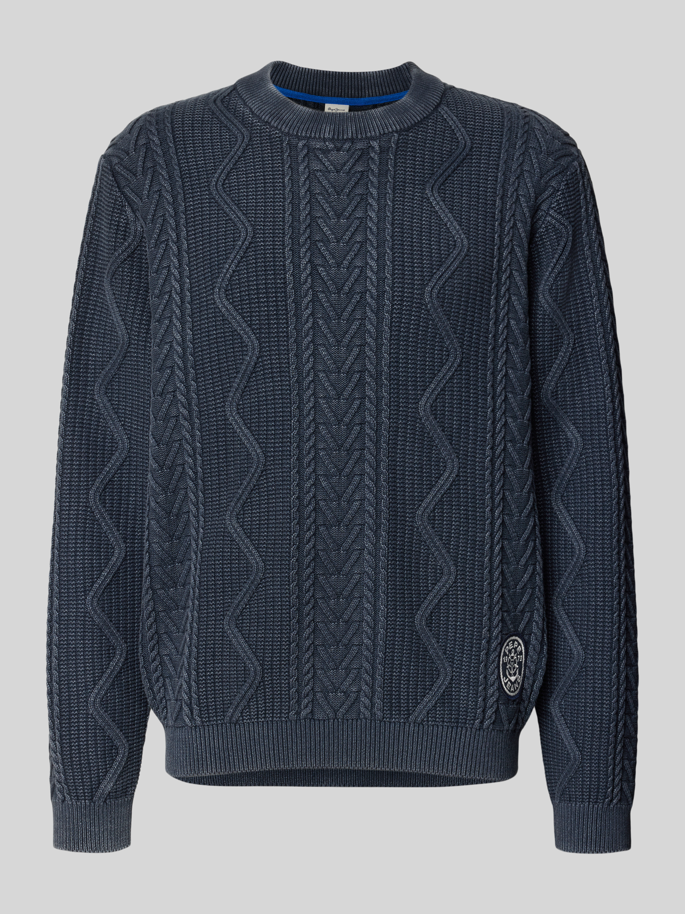 Regular fit gebreide pullover van puur katoen, model 'PERRY' in marineblauw