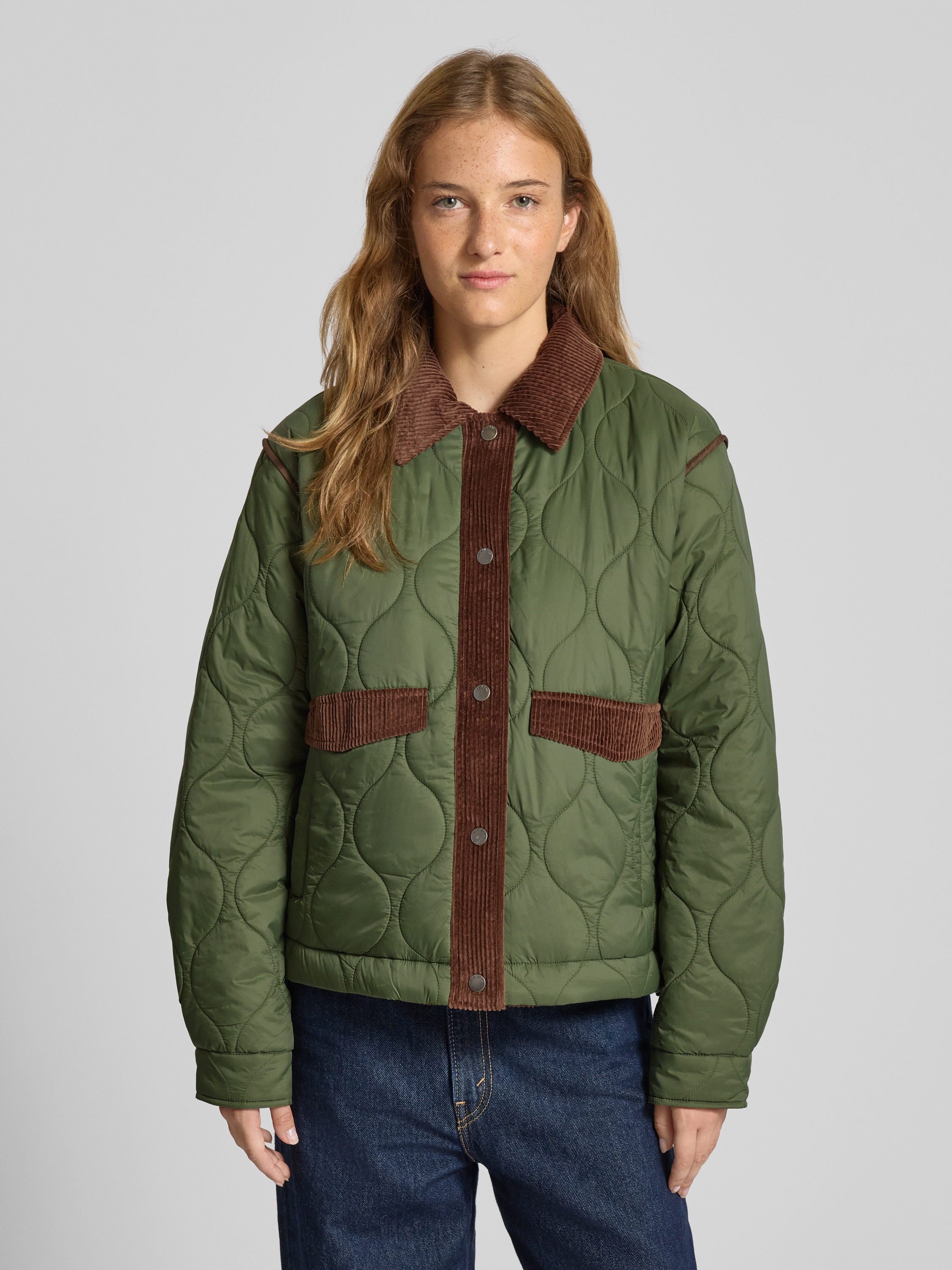Regular fit gewatteerd jack met corduroy, model 'PAOLA' in kaki