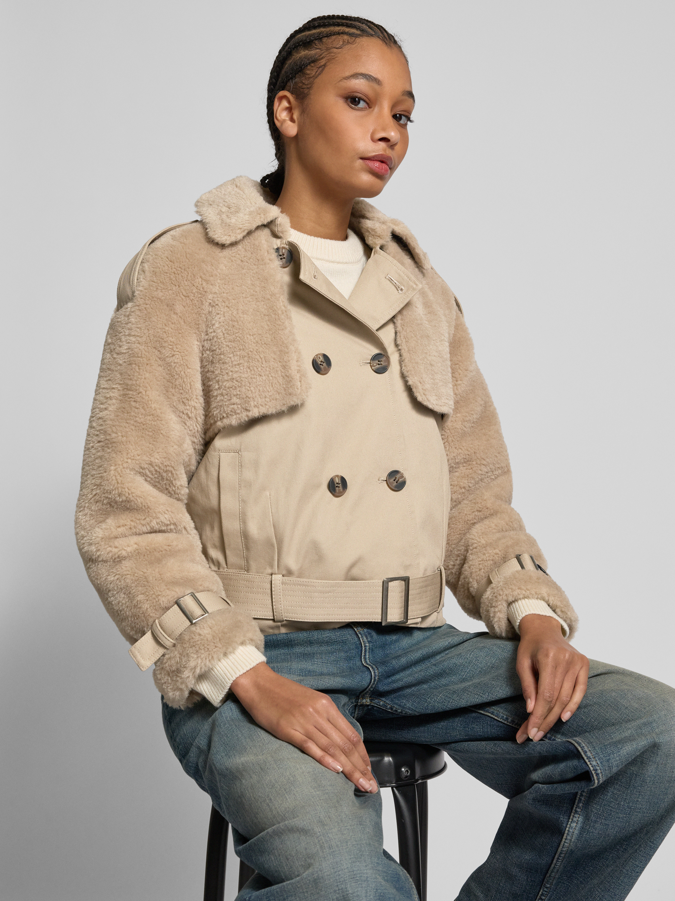 Pepe JeansRegular fit jack met imitatiebont, model 'FIONA' in taupe