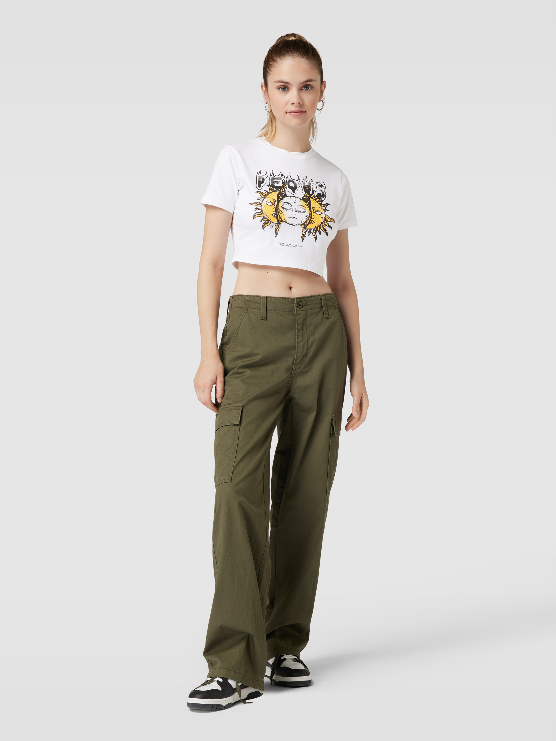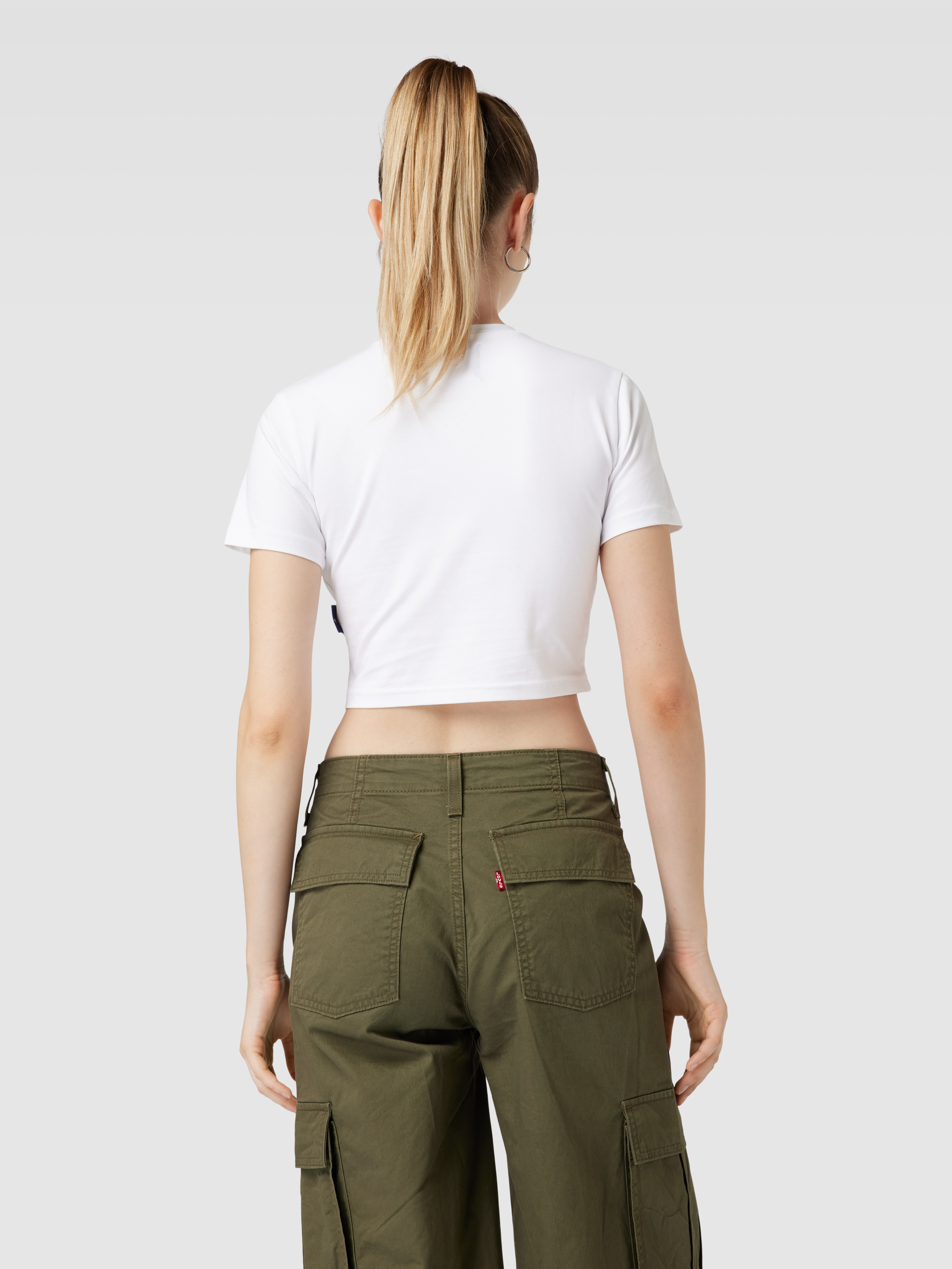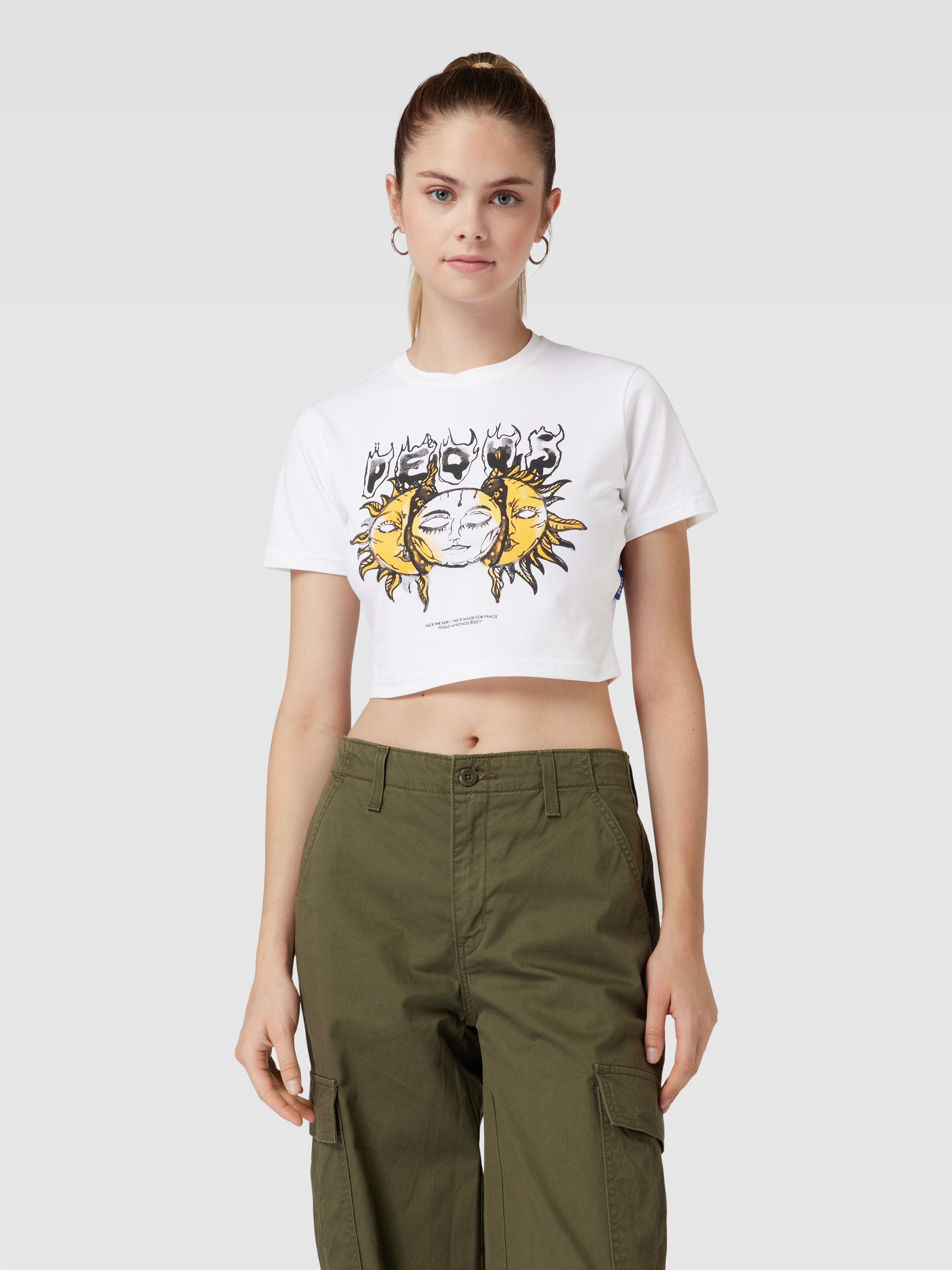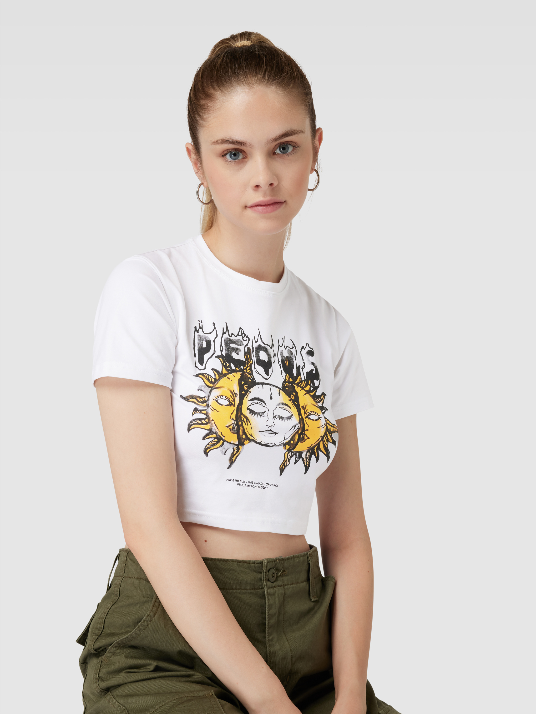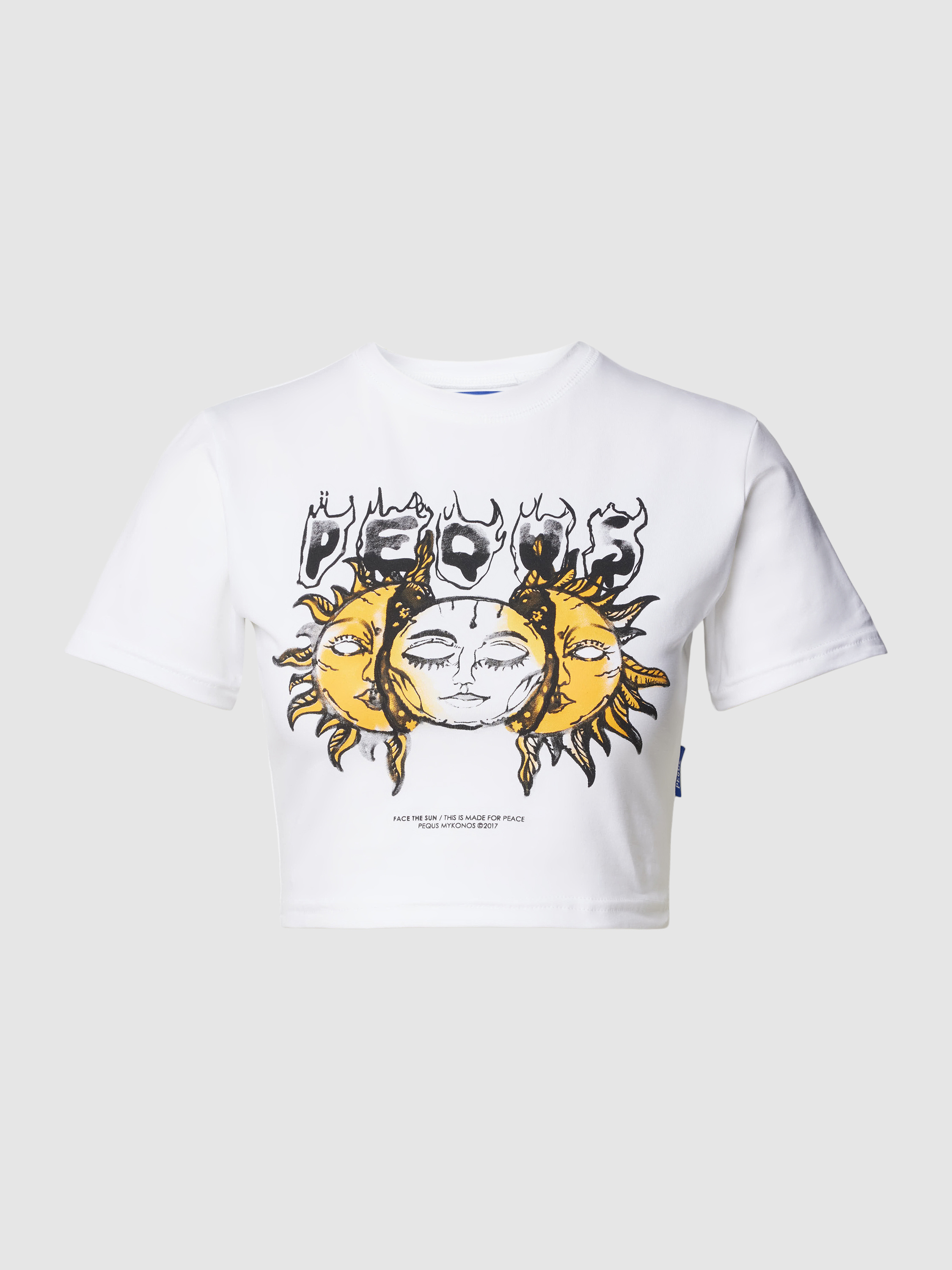 Kort T-shirt met motiefprint, model 'Face The Sun' in wit