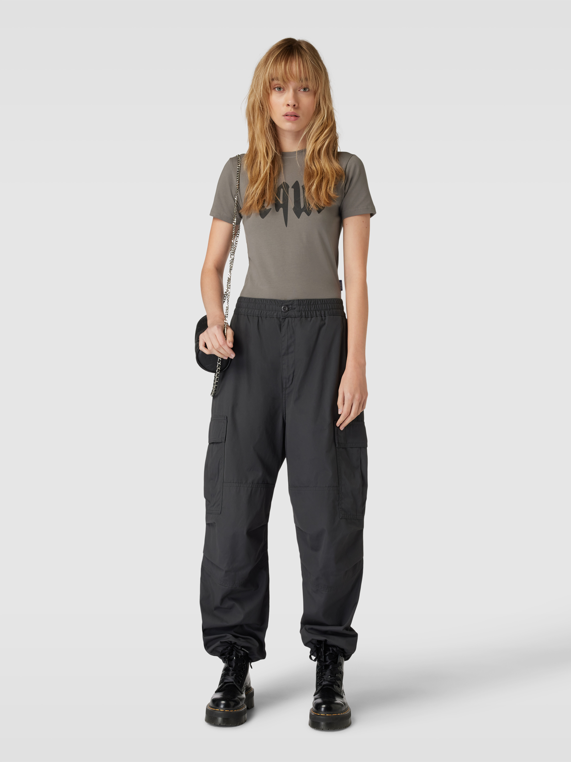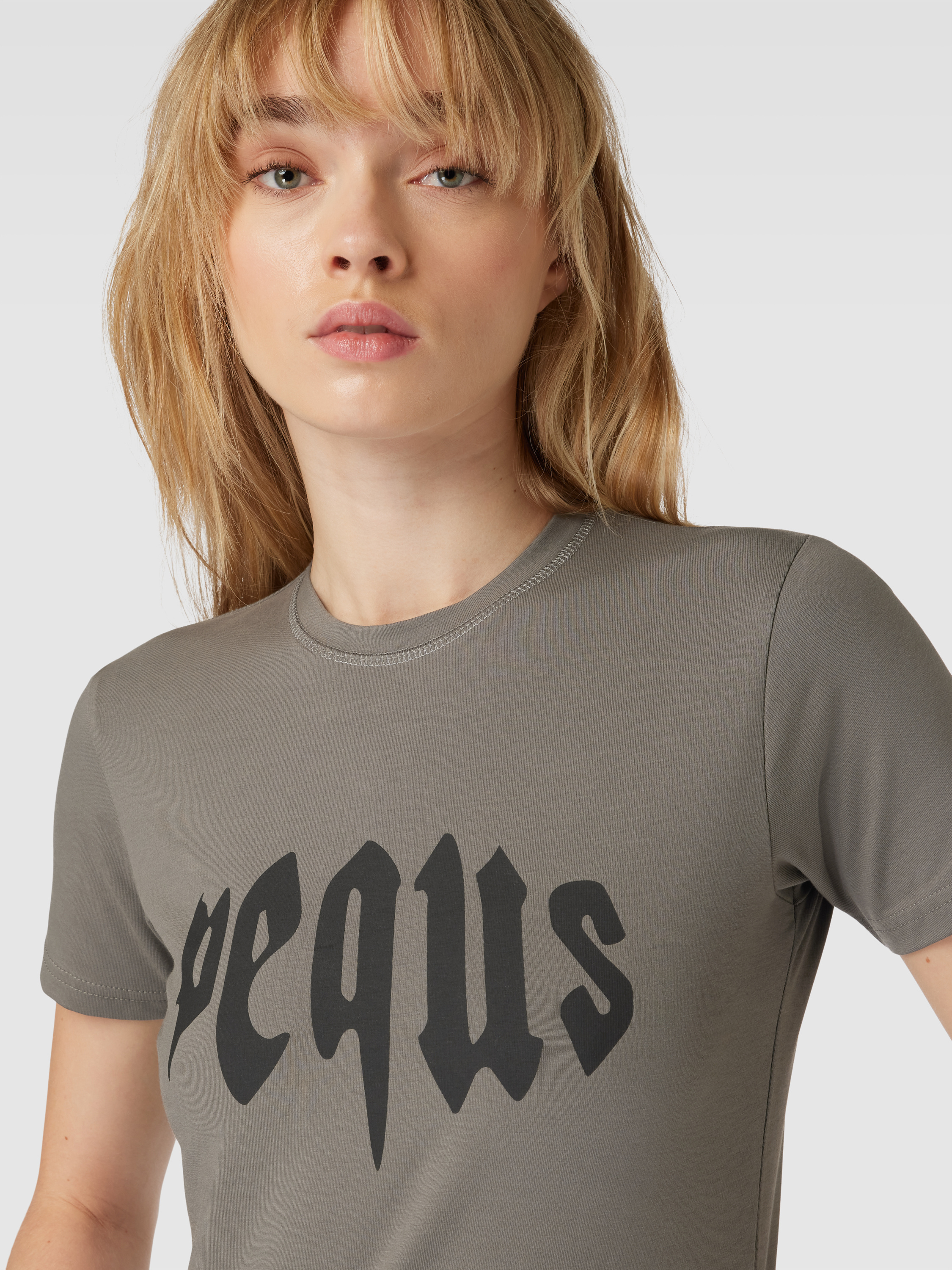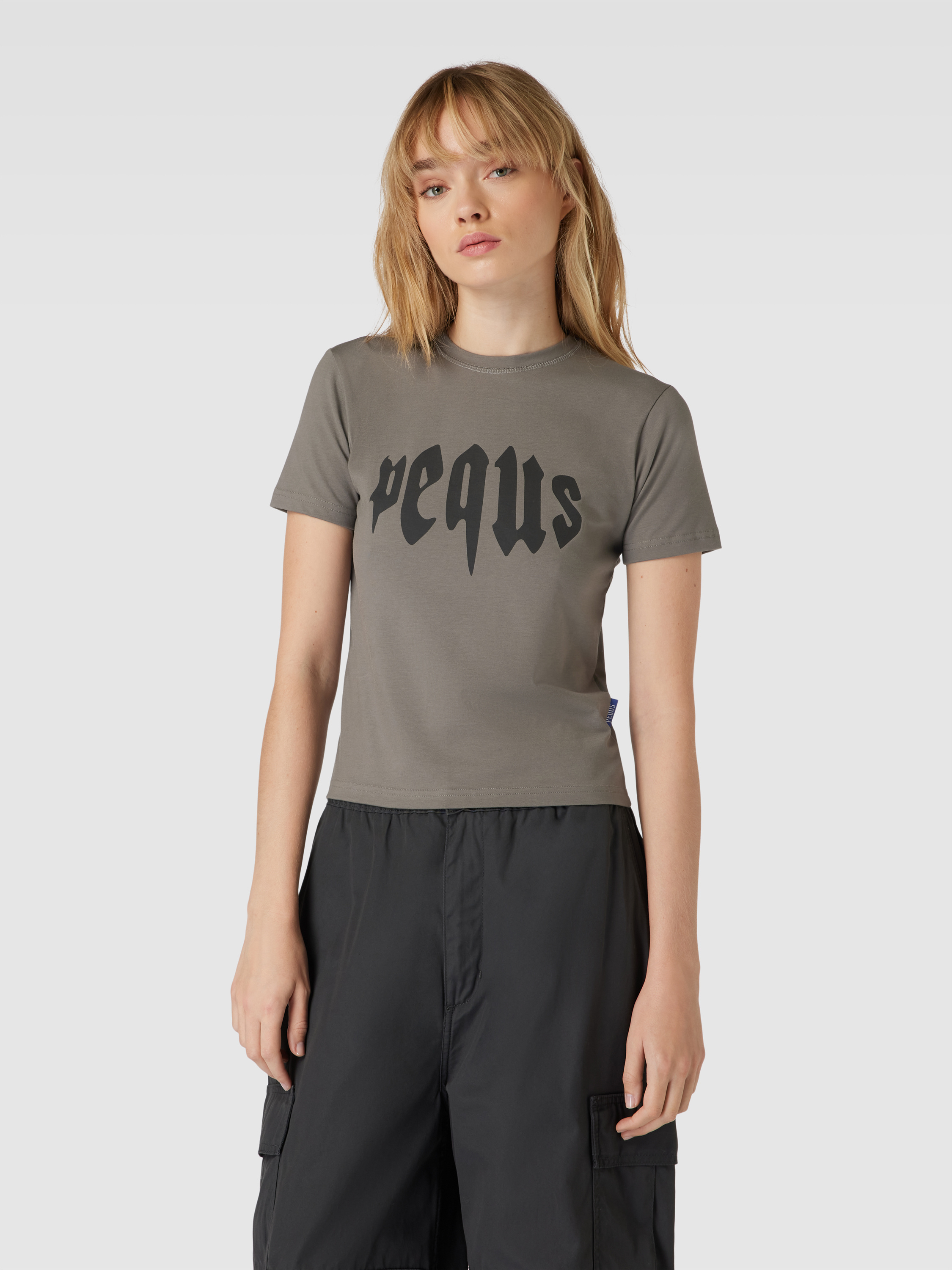T-shirt met labelprint in grafiet