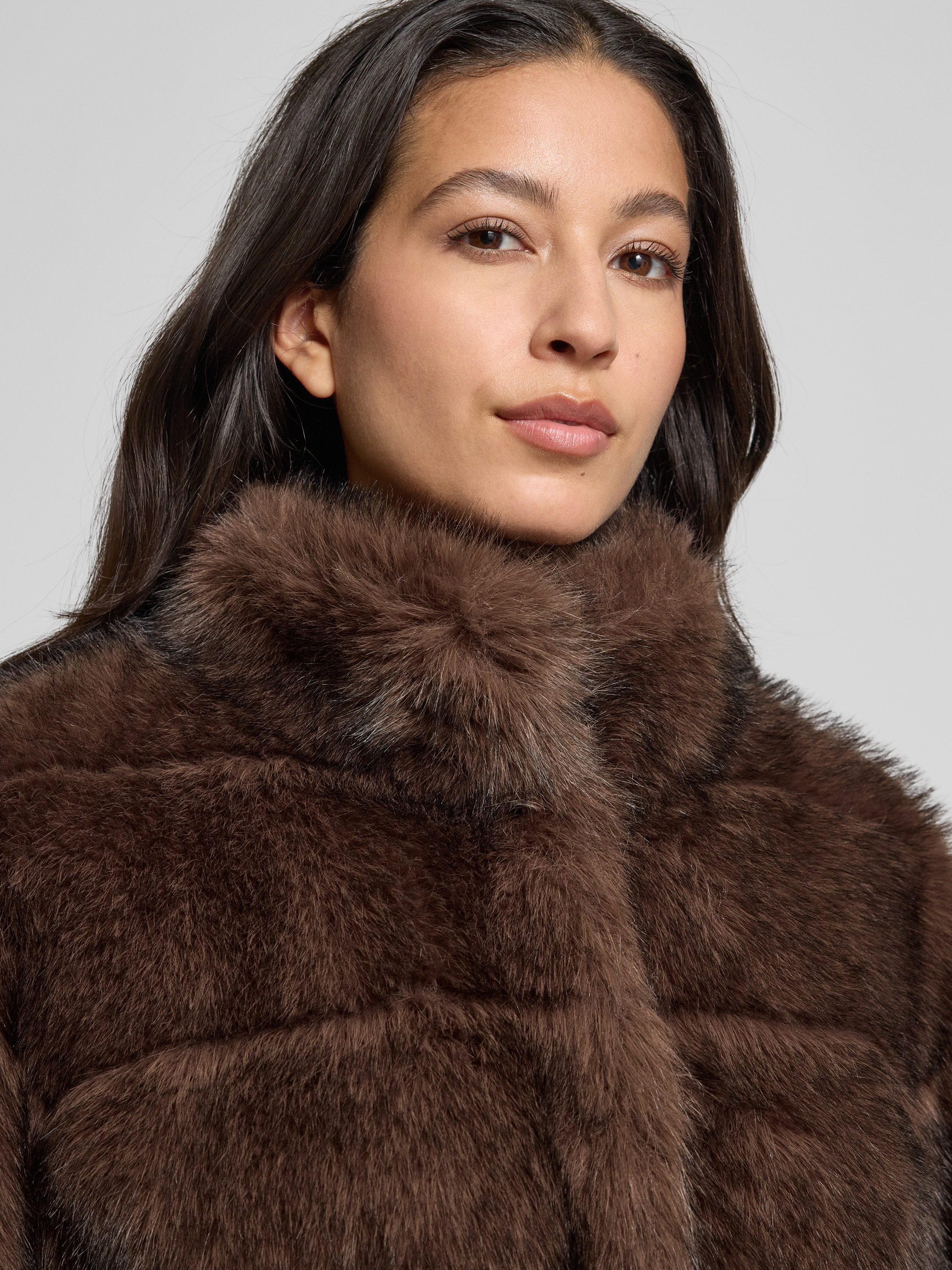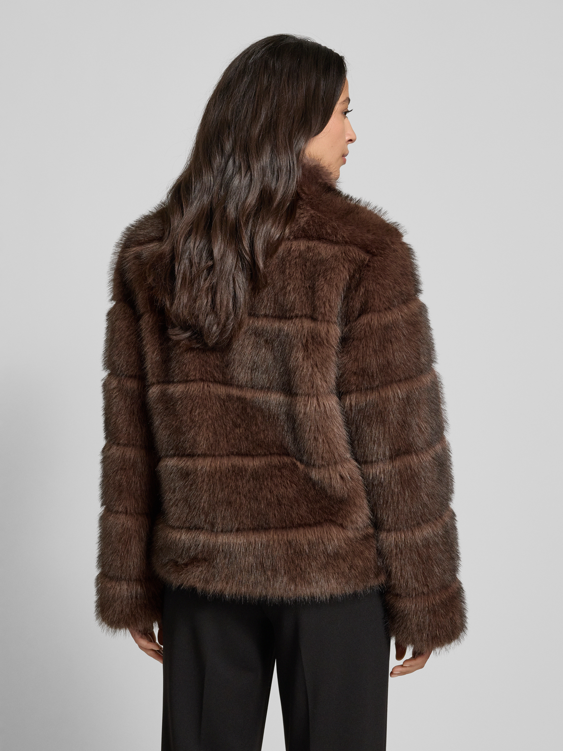 Regular fit jack van imitatiebont in donkerbruin