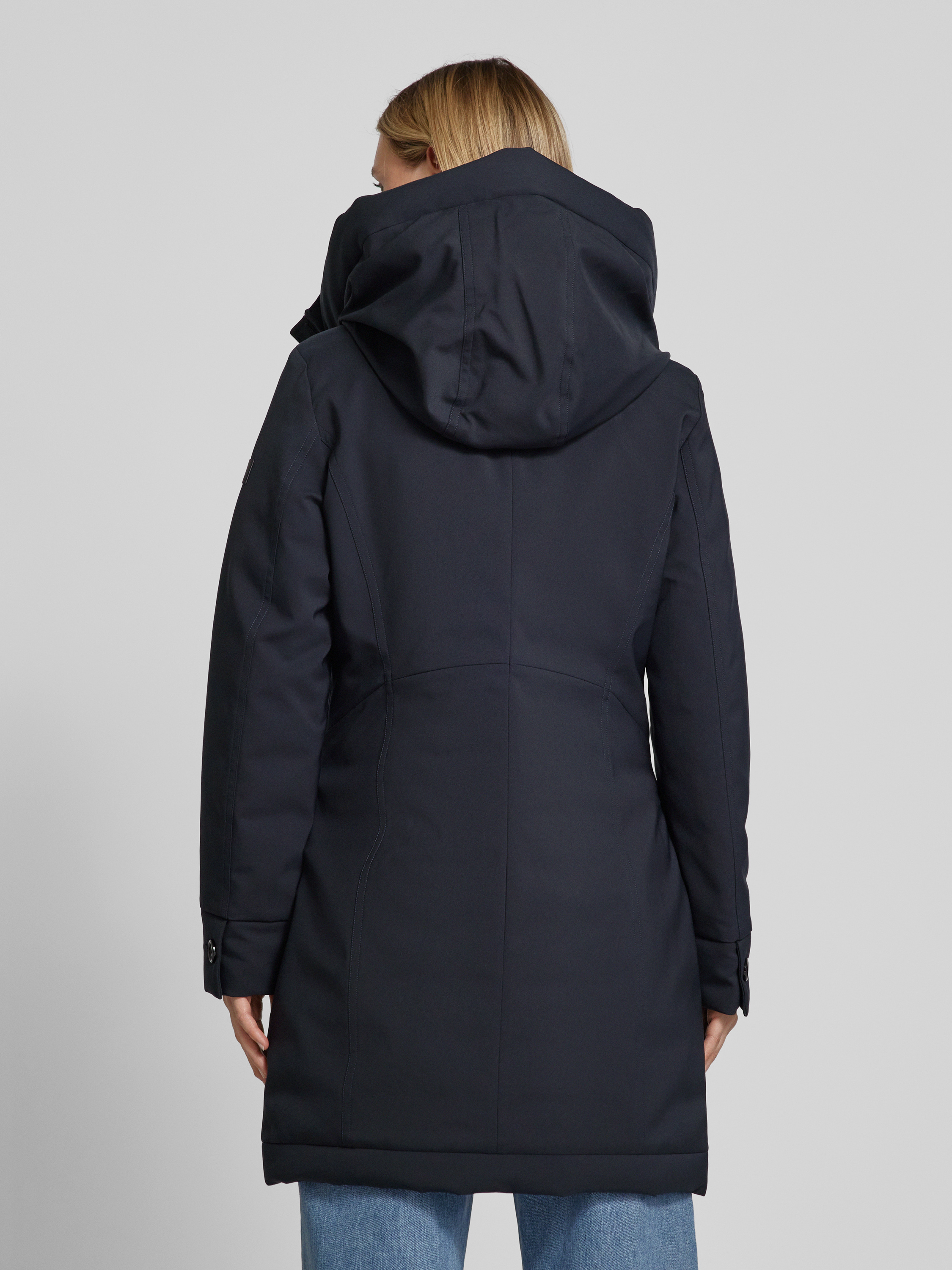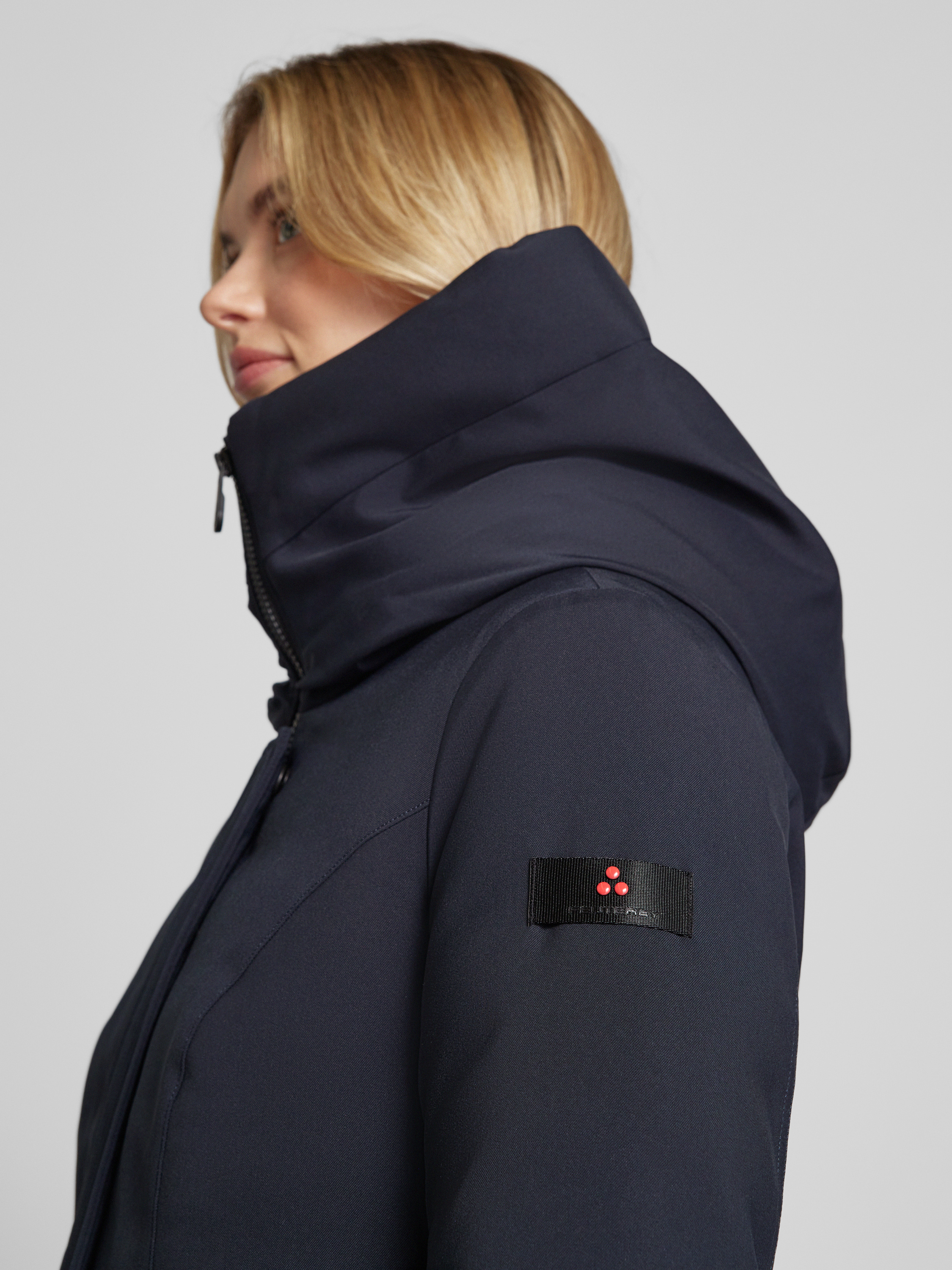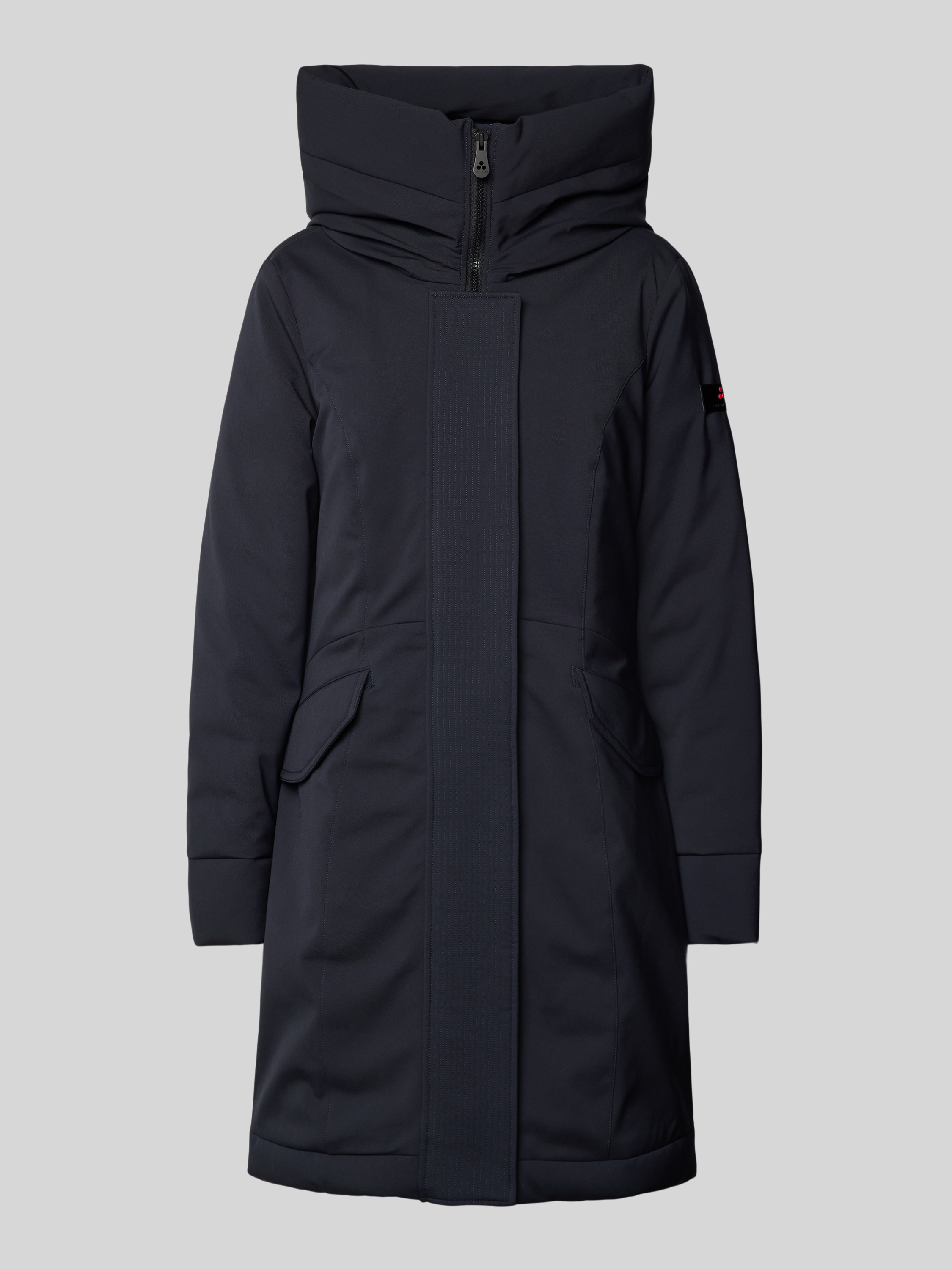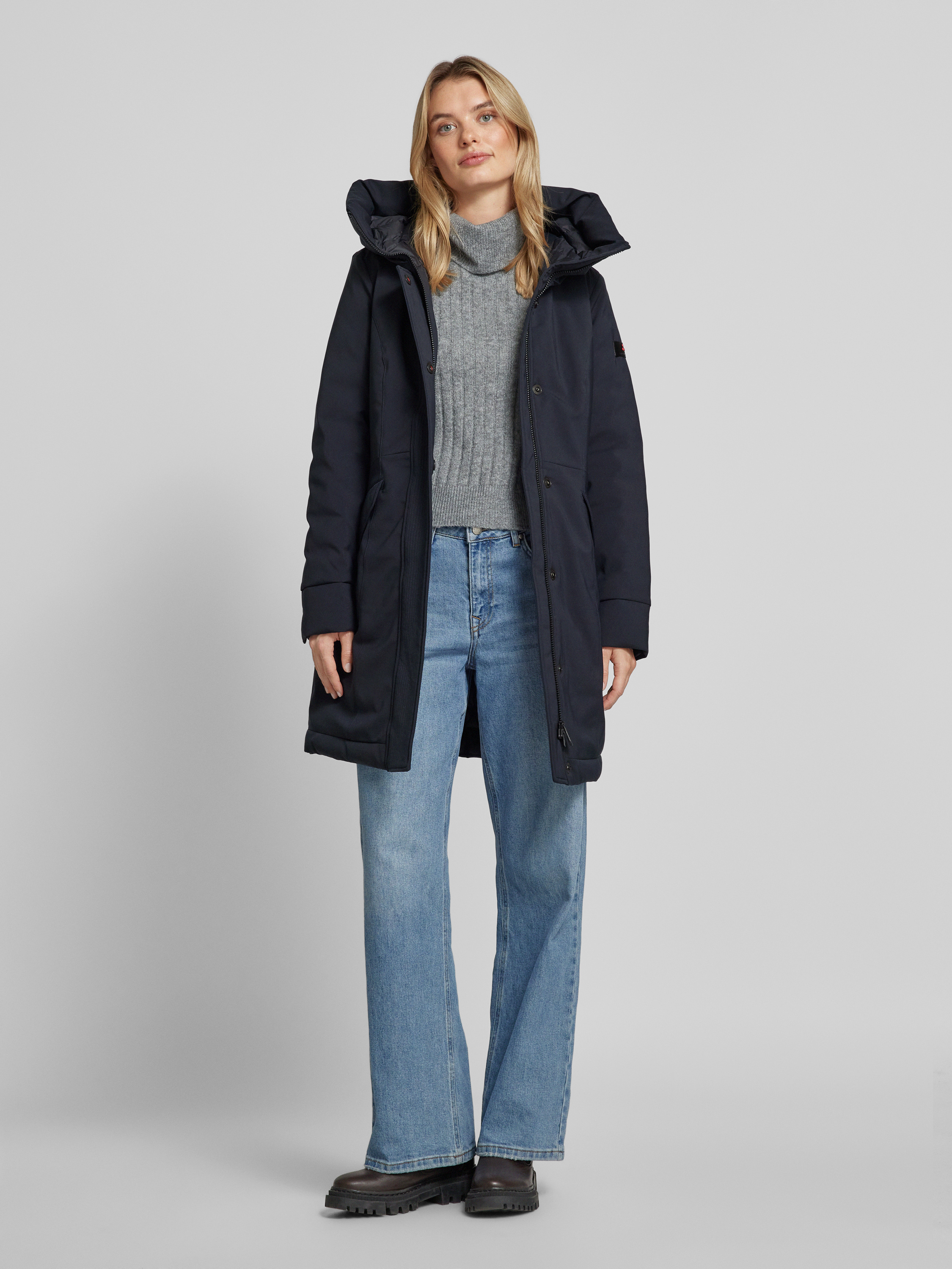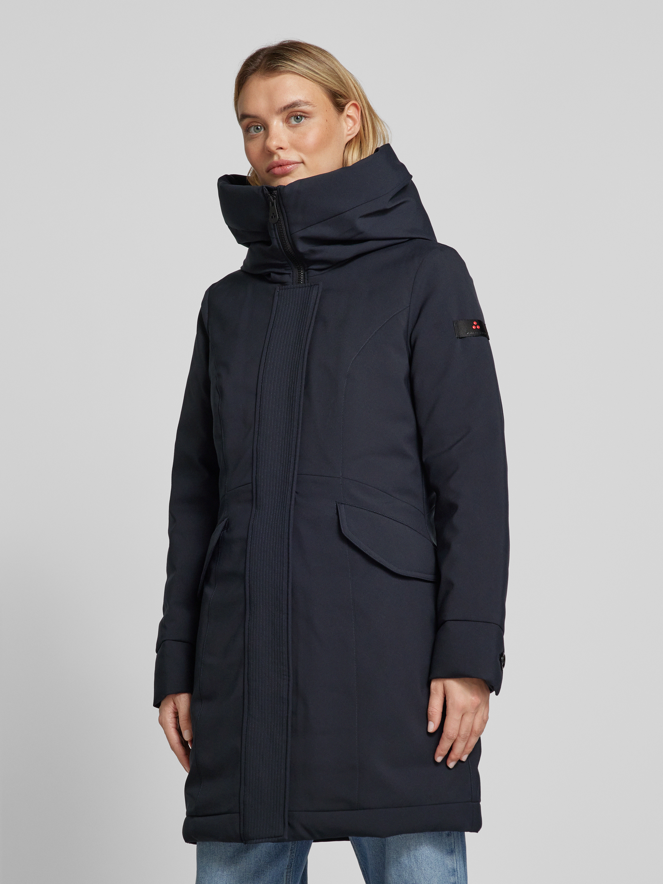Gewatteerde lange jas met opstaande kraag, model 'EMIN' in donkerblauw