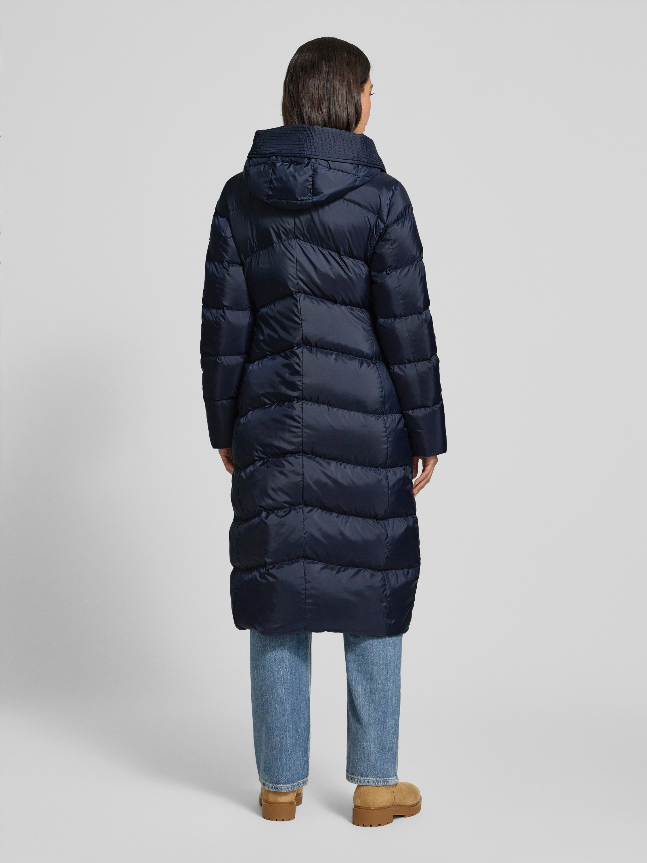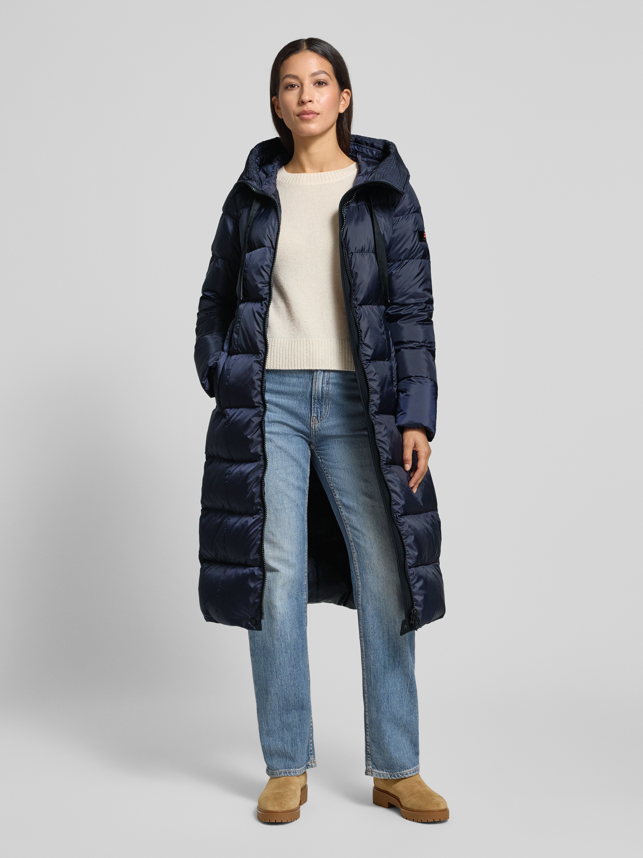 PeutereyGewatteerde lange jas met steekzakken, model 'NUNKI' in donkerblauw