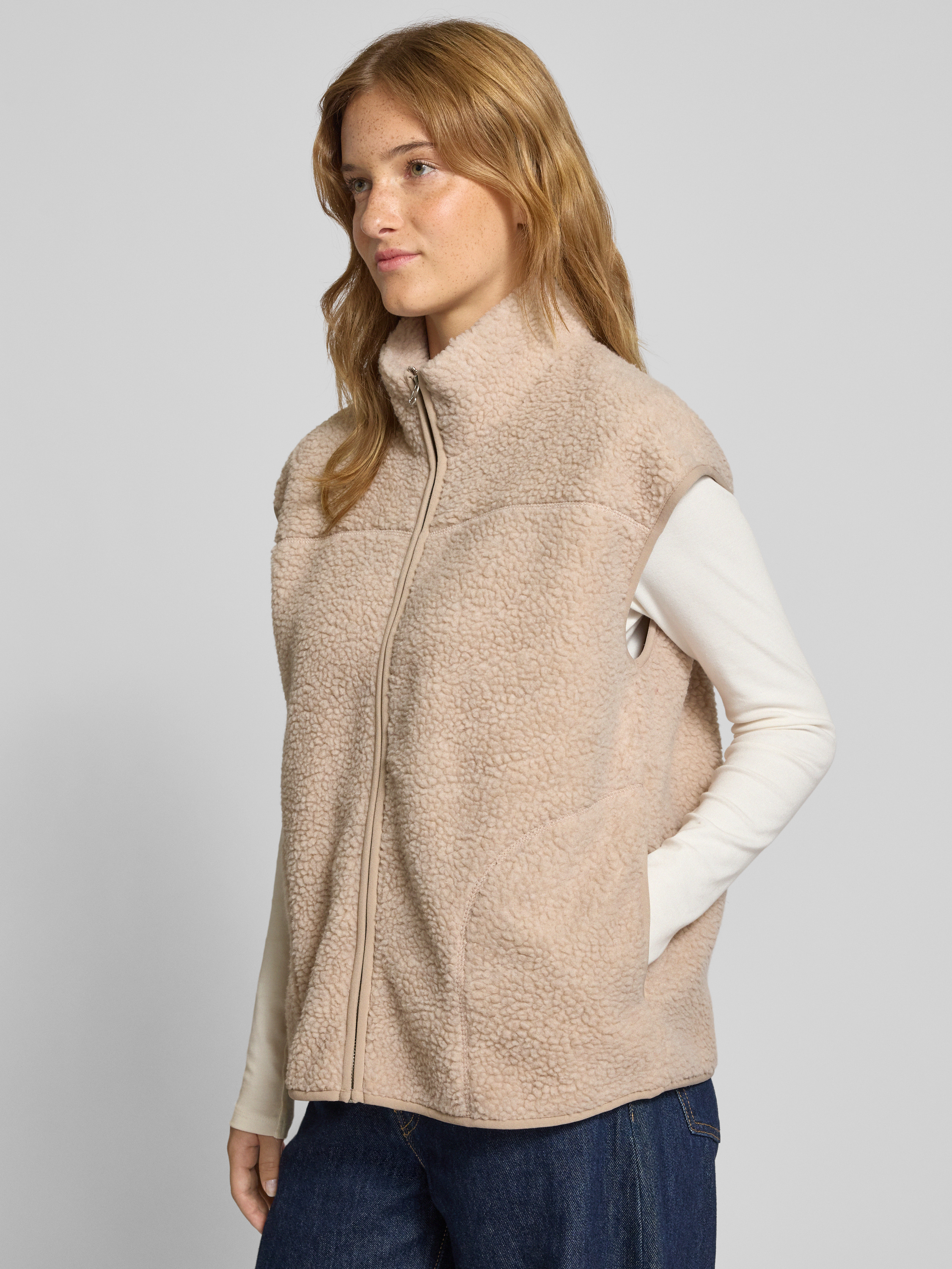 Comfort fit gilet van teddybont met opstaande kraag, model 'SADIA' in beige