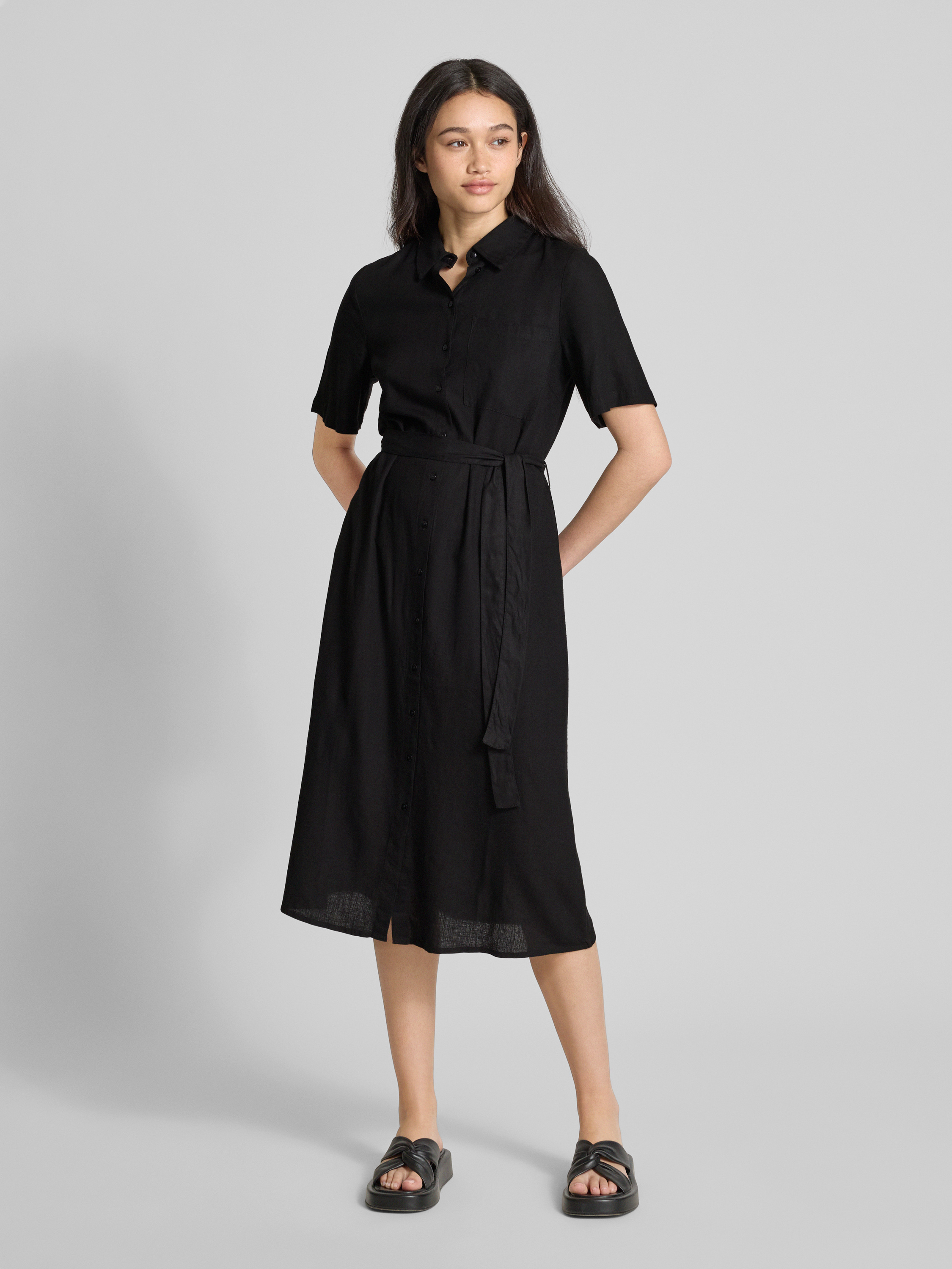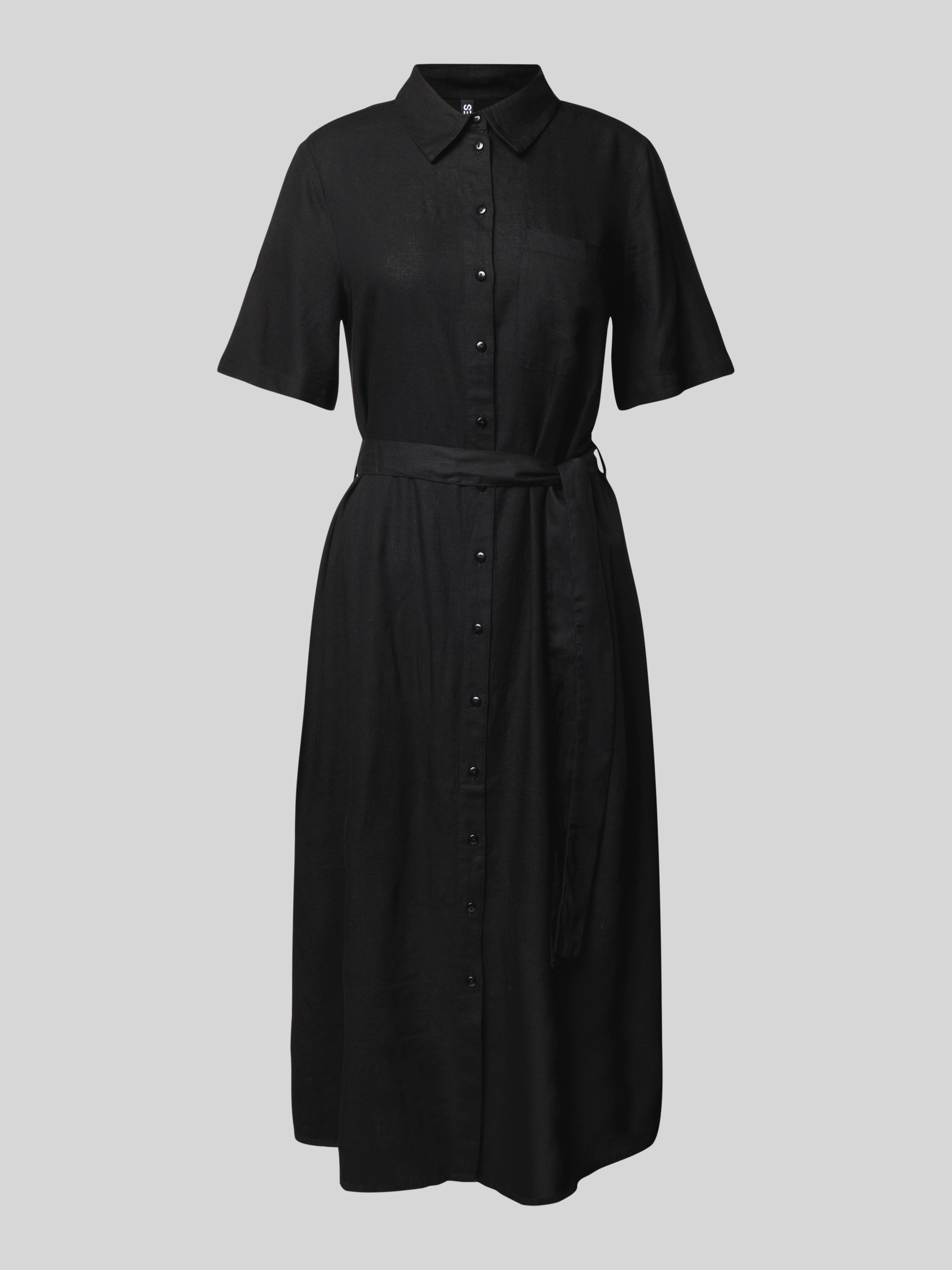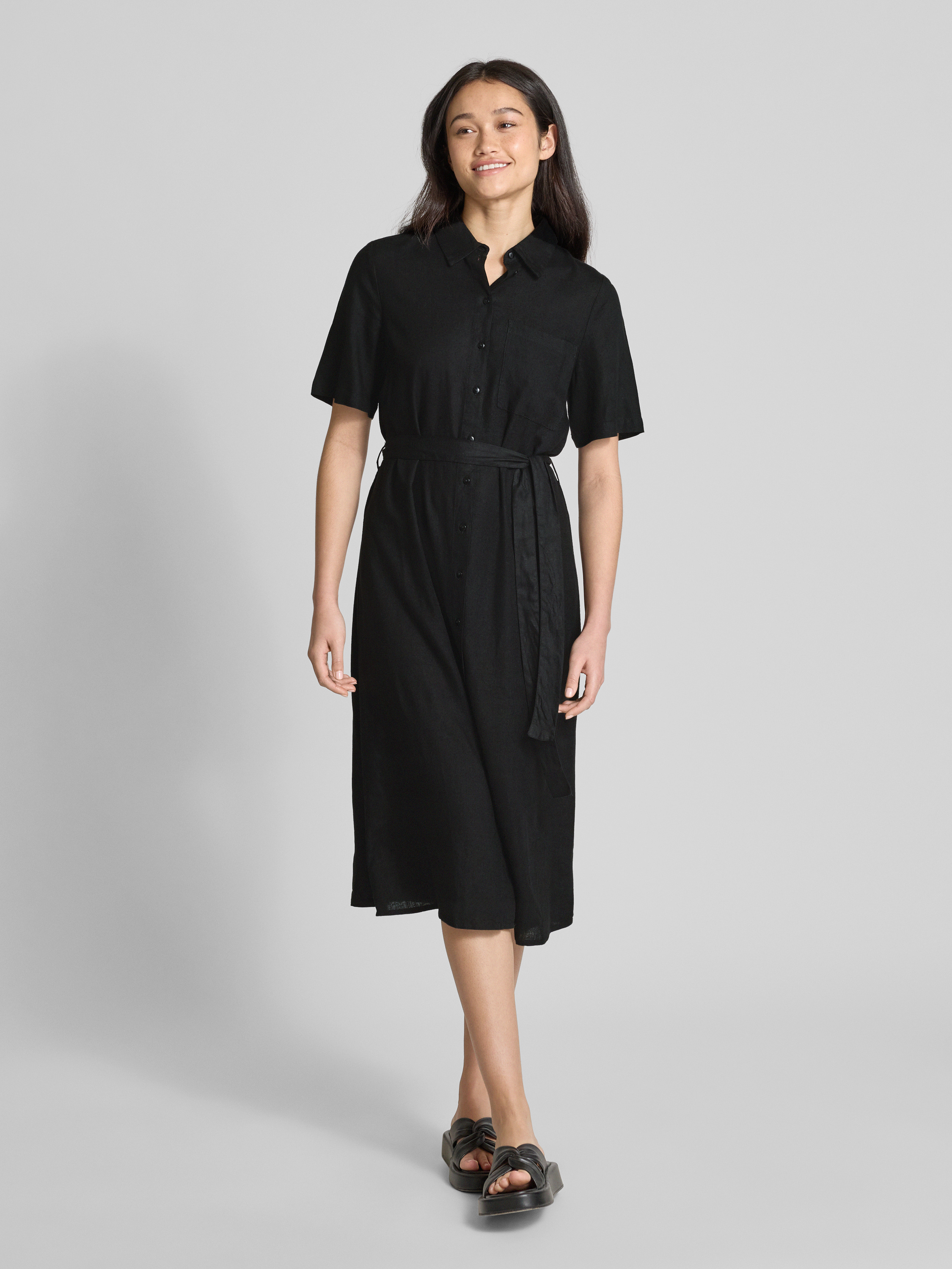 Getailleerde vrijetijdsjurk met strikceintuur, model 'PIA' in zwart