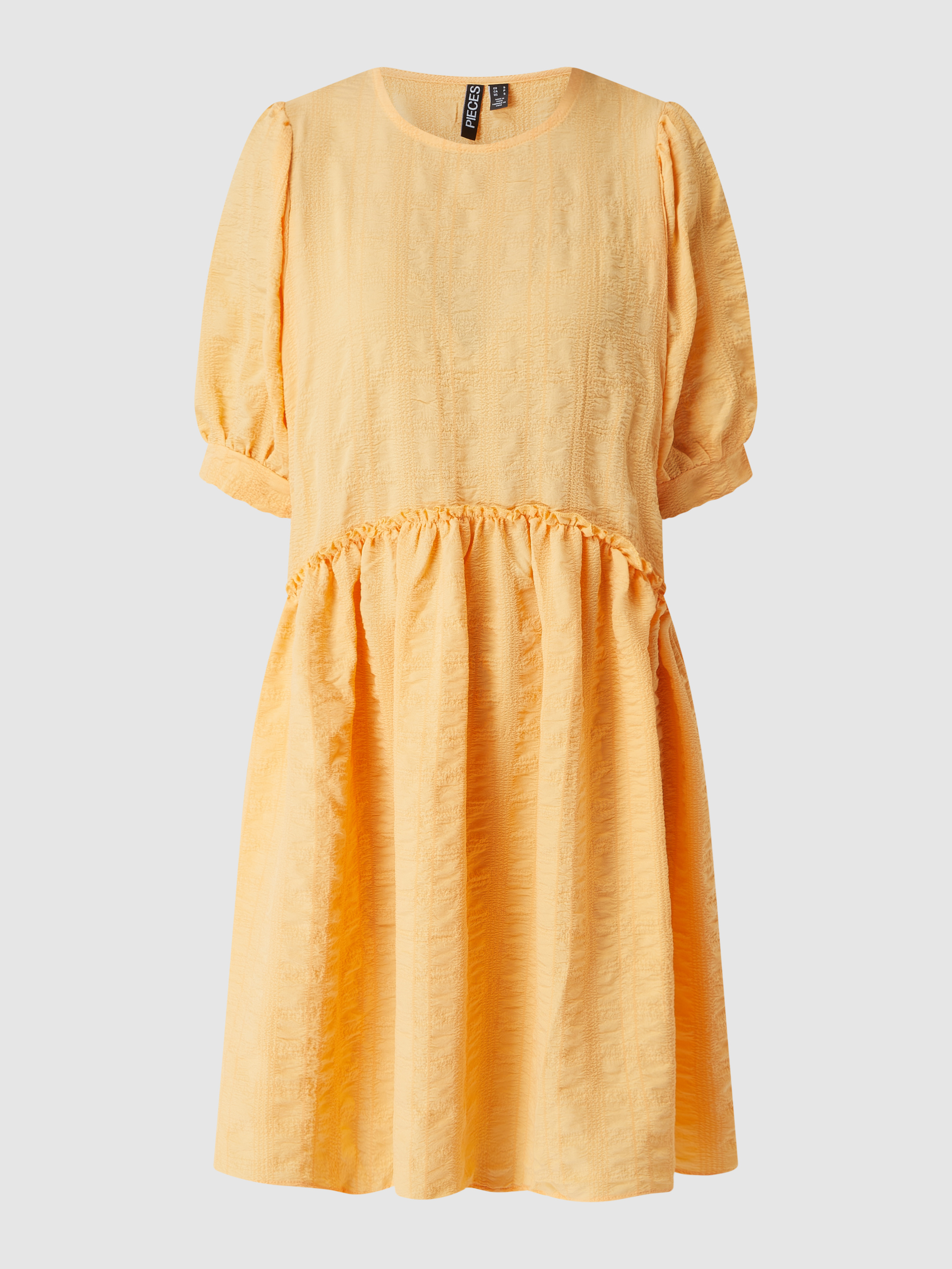 Jurk met tartanruit, model 'Vudmilla' in abrikoos