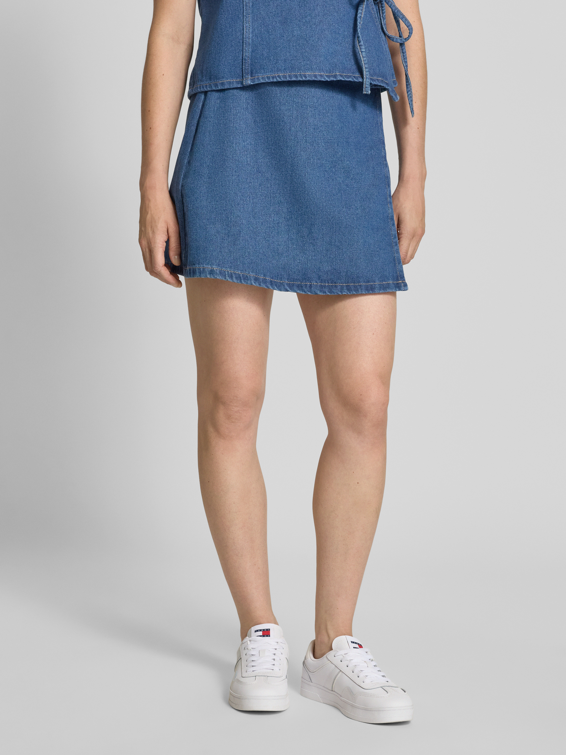 Licht uitlopende jeansrok in wikkellook, model 'FIBBO' in donkerblauw