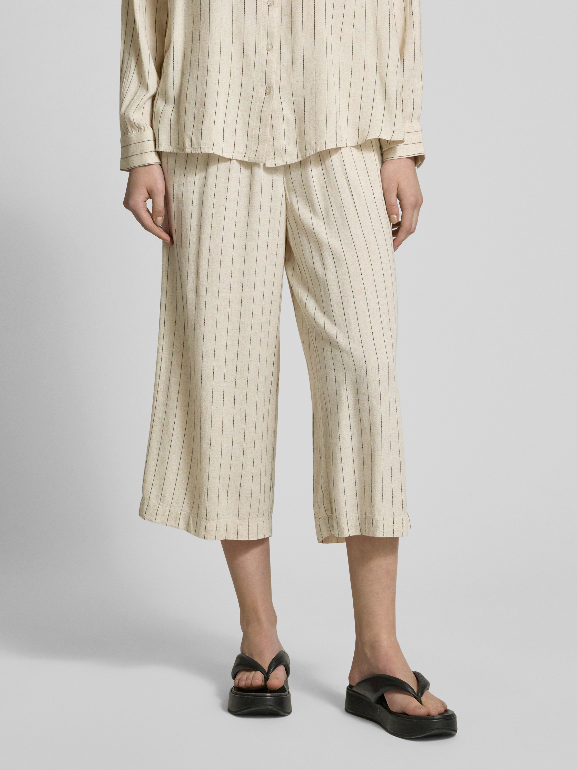 Loose fit culotte van een mix van viscose en linnen, model 'PIA' in beige