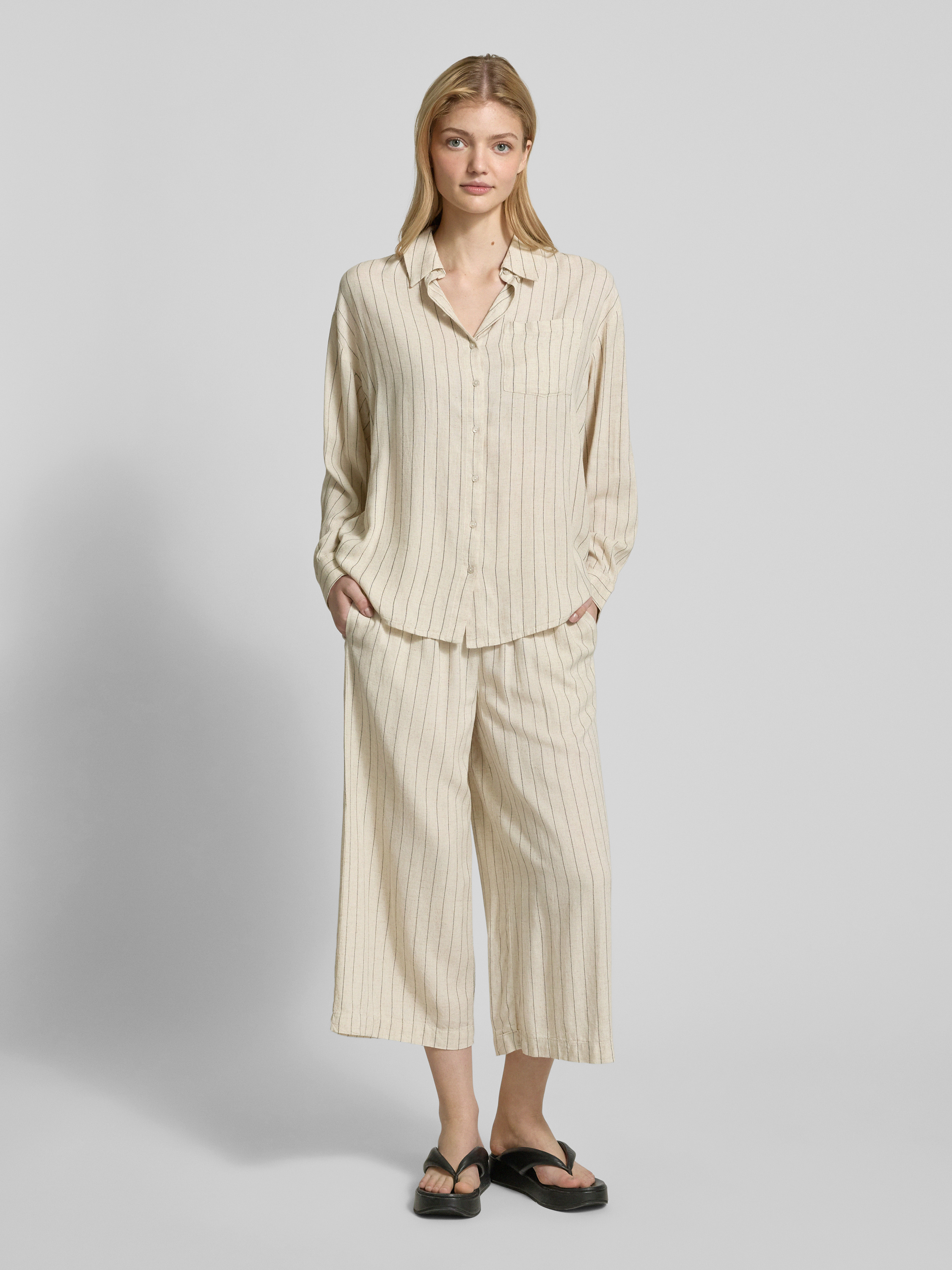 Relaxed fit overhemdblouse in een mix van viscose en linnen, model 'PIA'