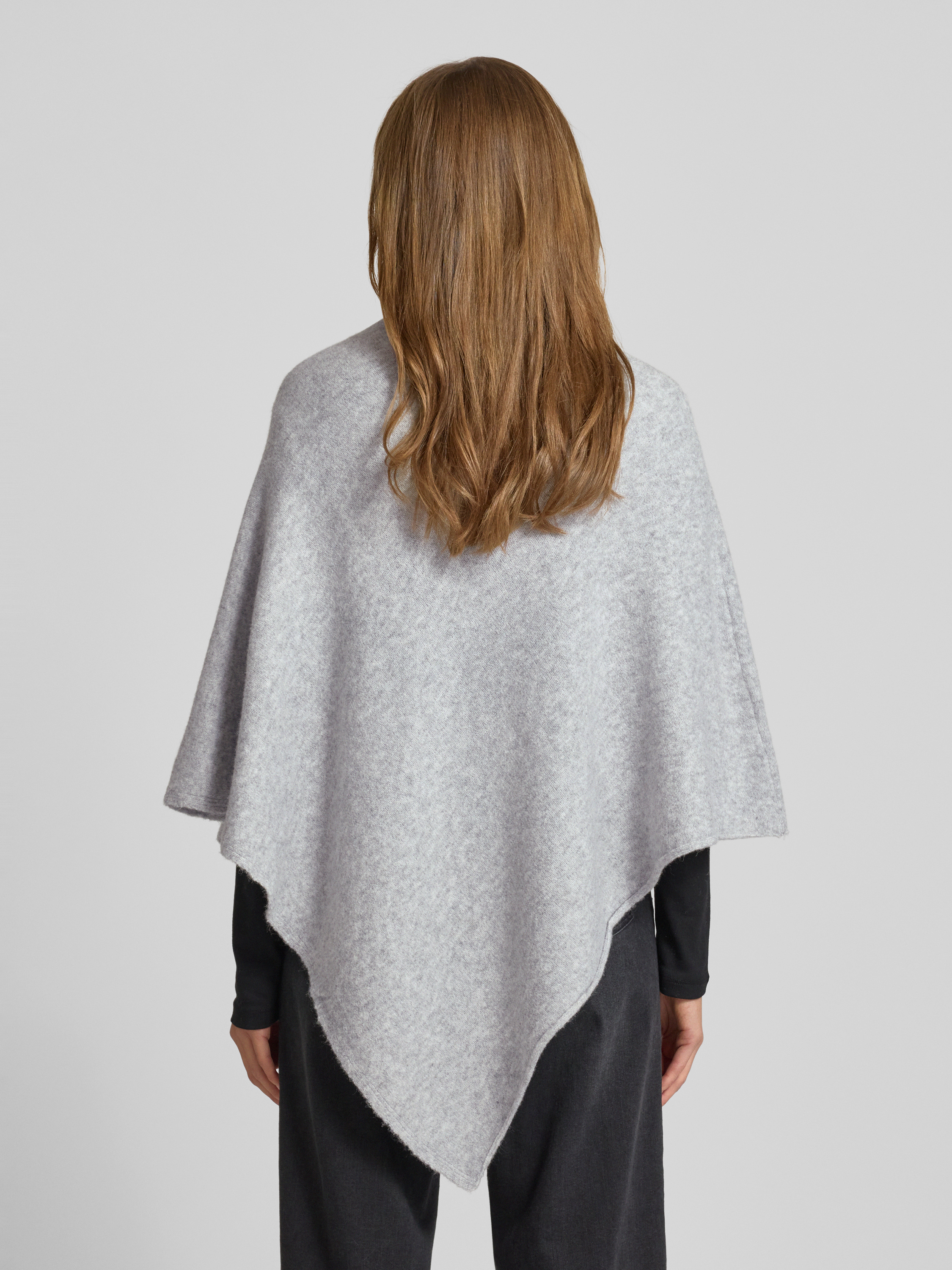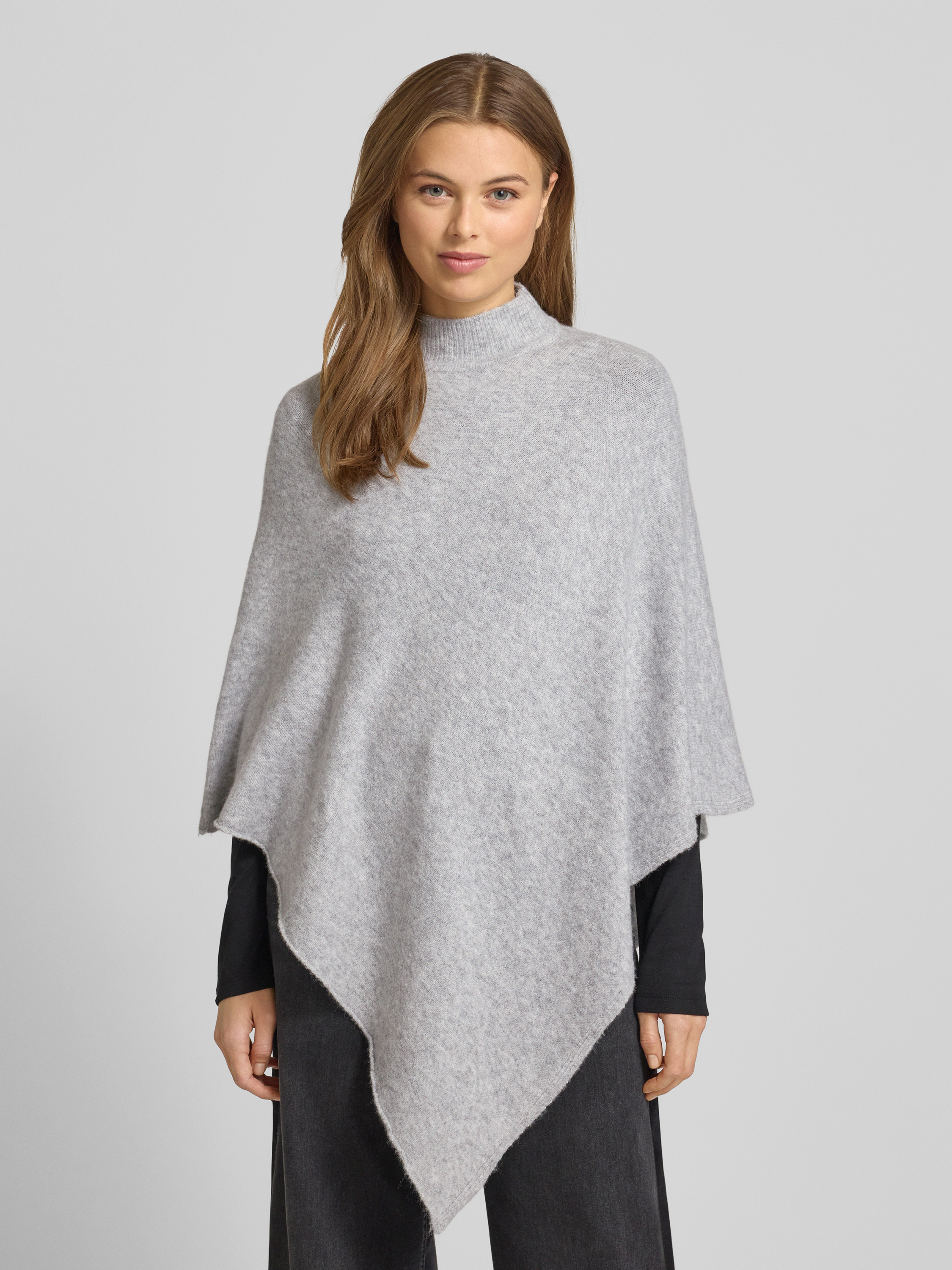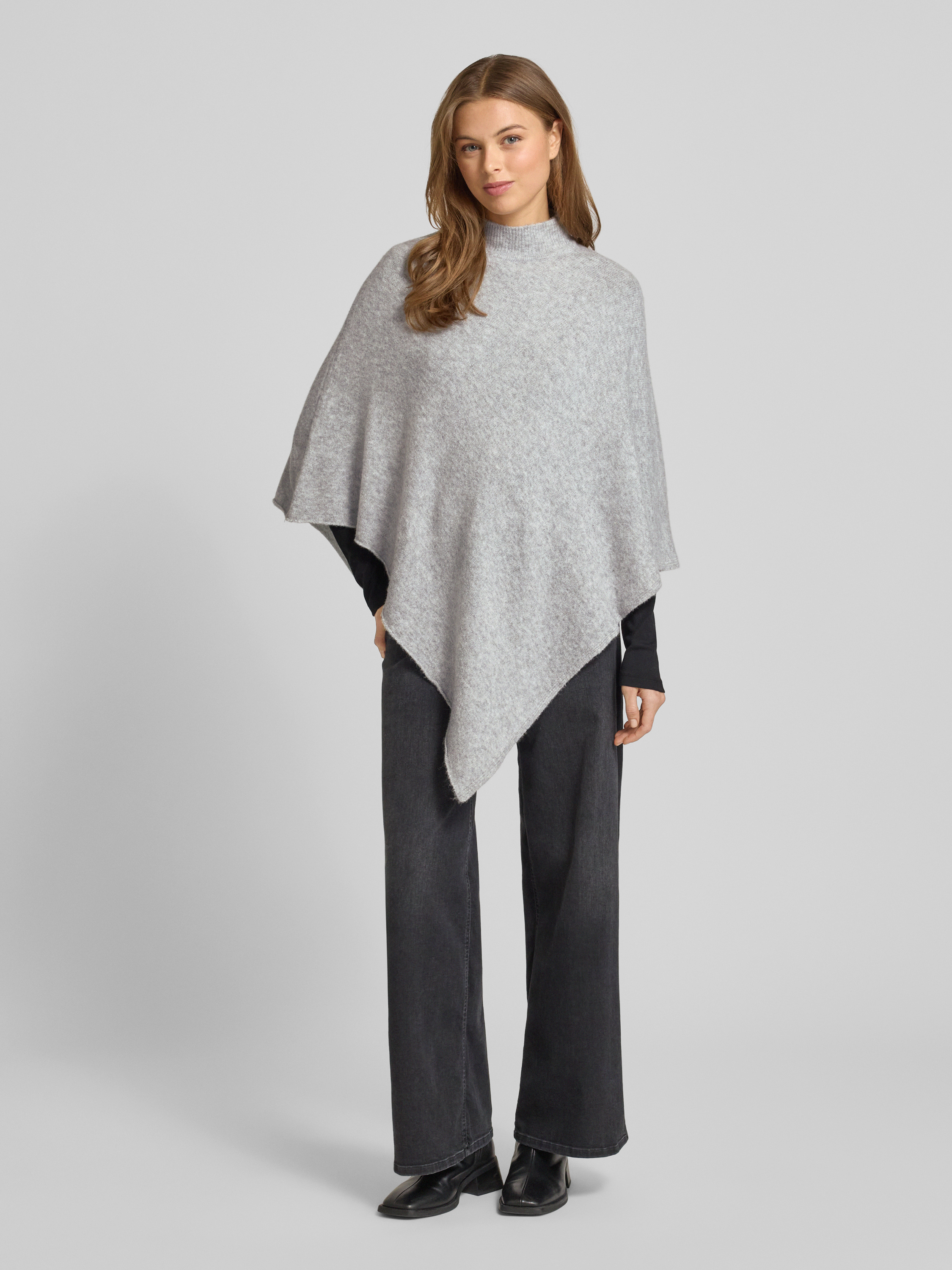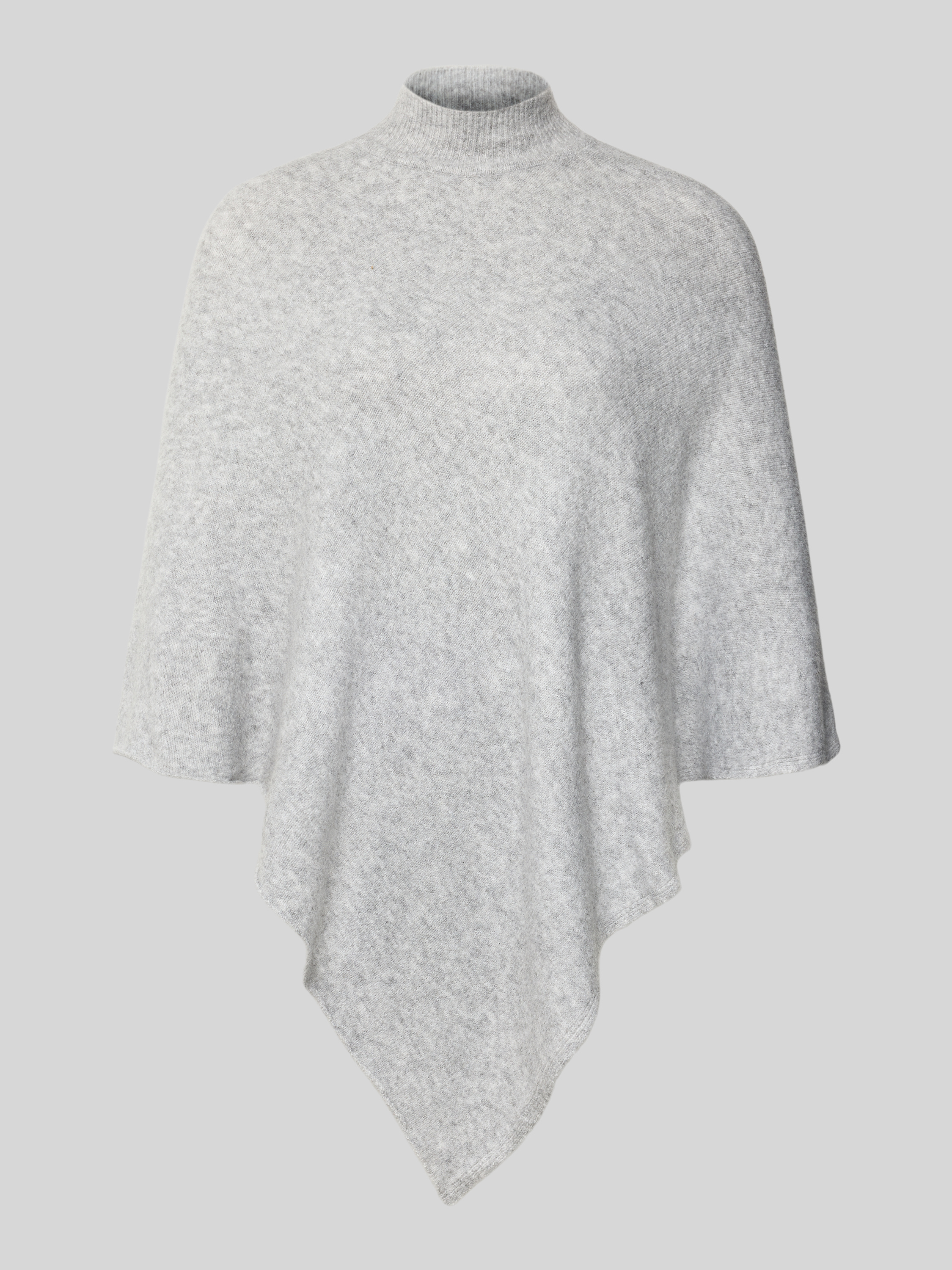 Loose fit gebreide poncho met ronde hals en kraag, model 'FORTUNA' in lichtgrijs gemêleerd