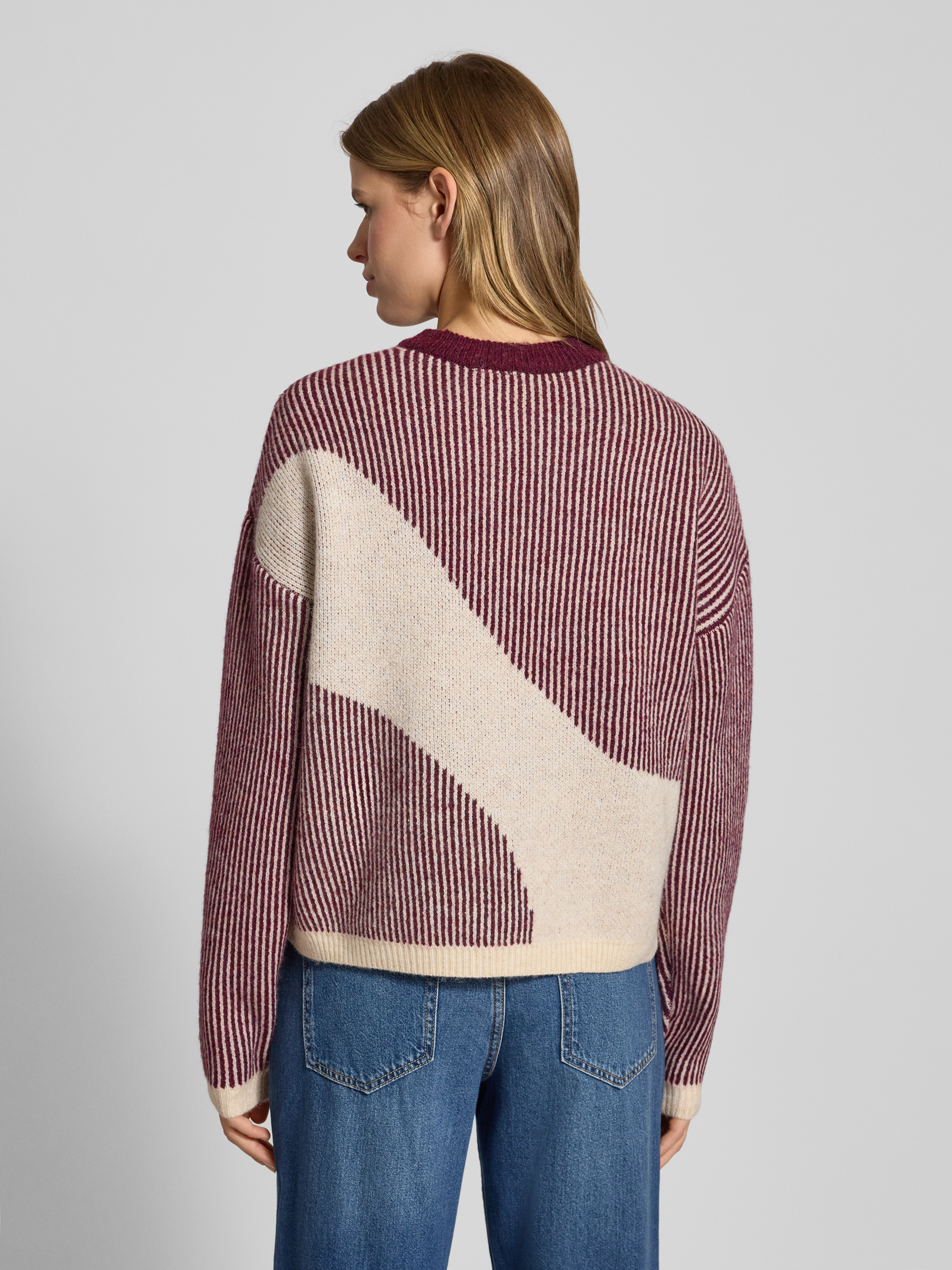 Loose fit gebreide pullover met all-over motief, model 'LINNA' in donkerrood gemêleerd