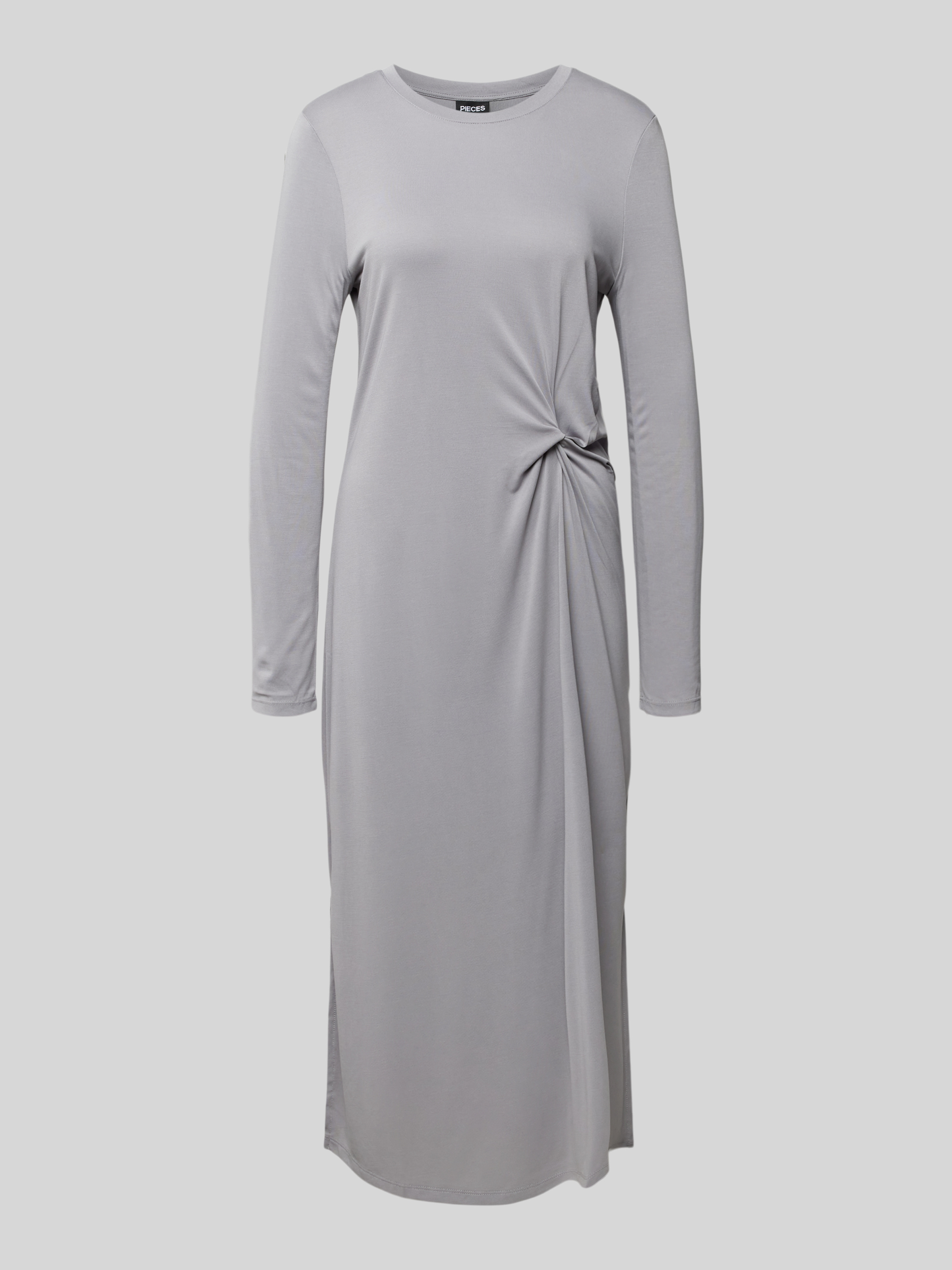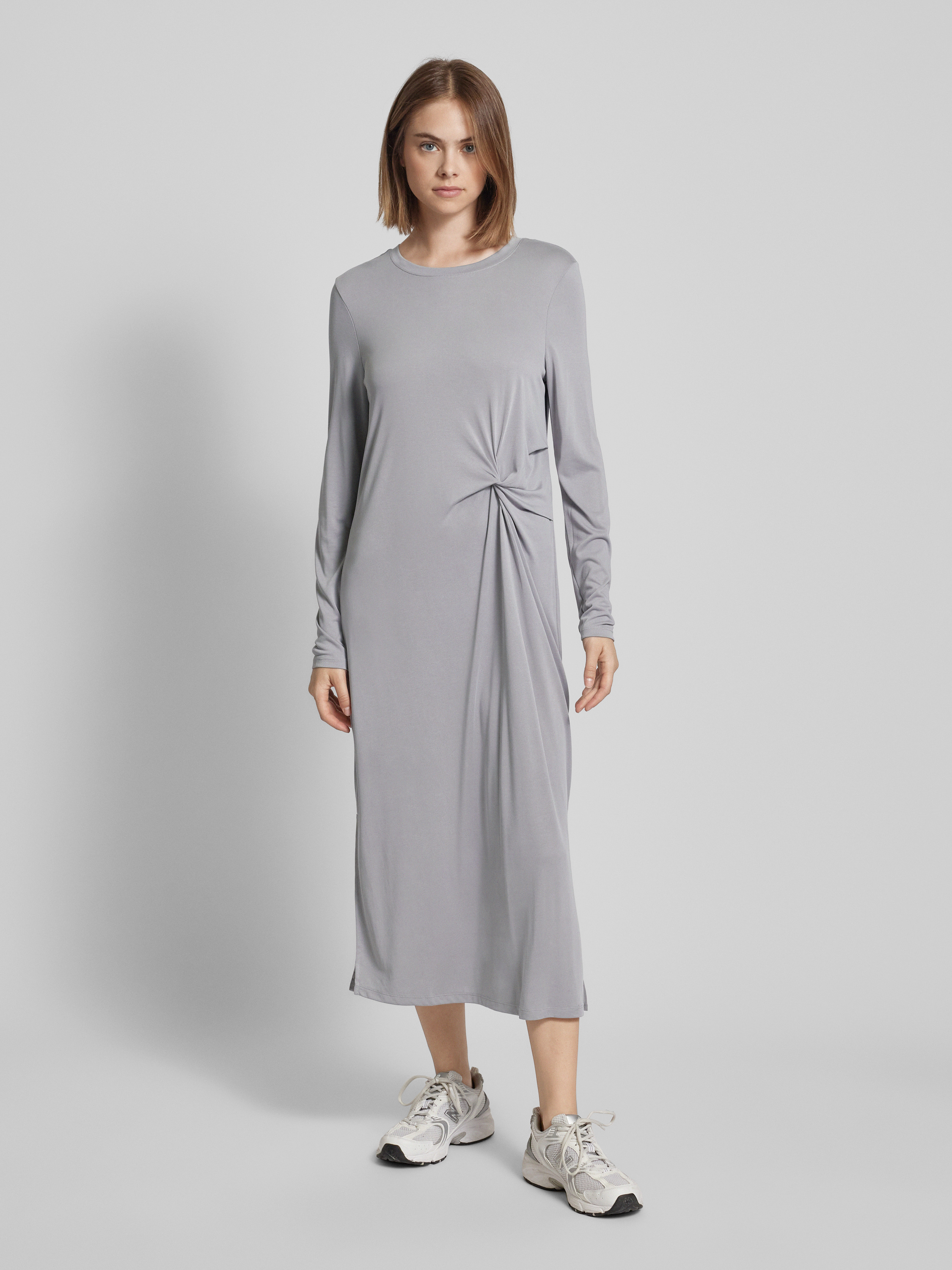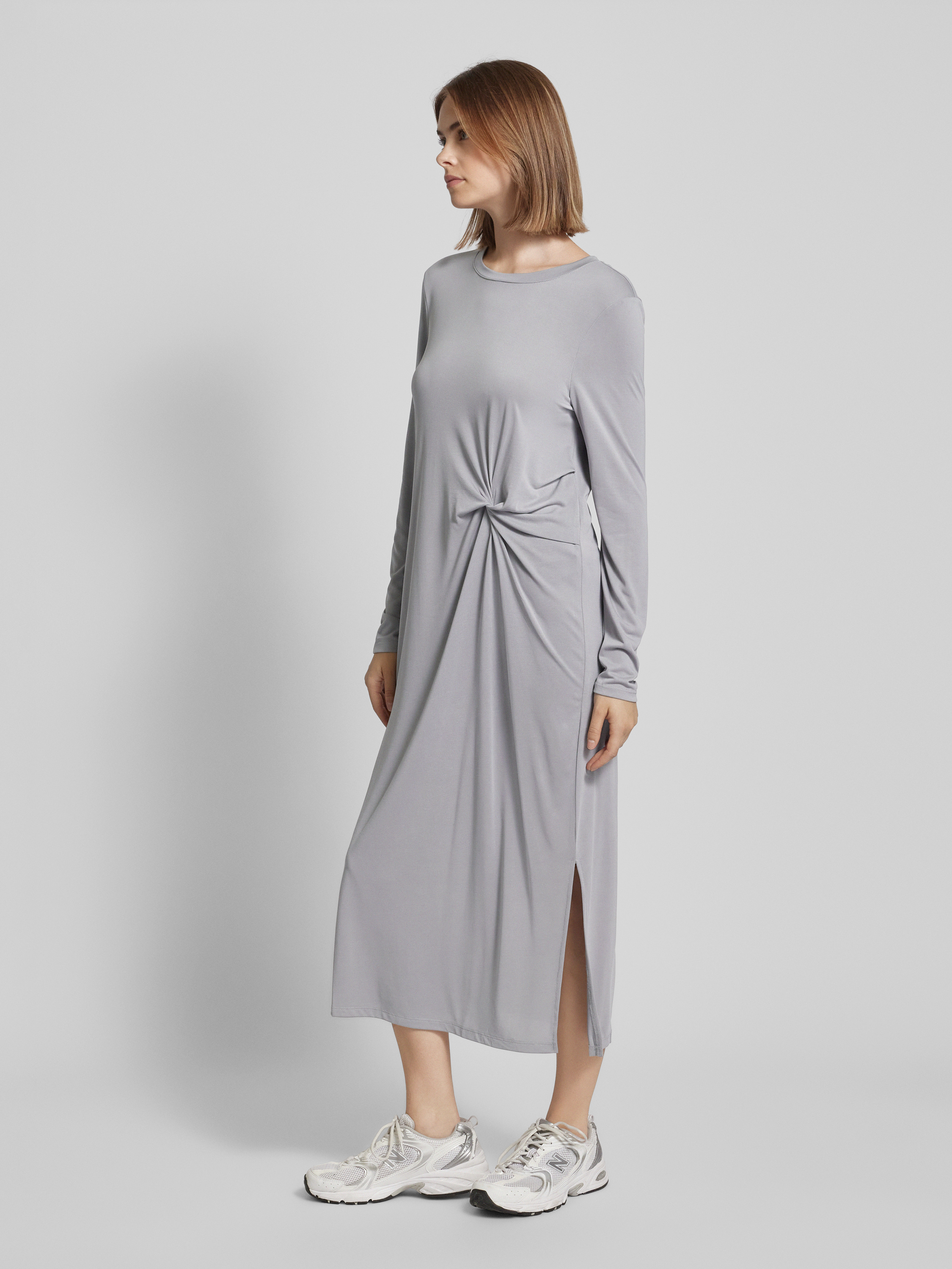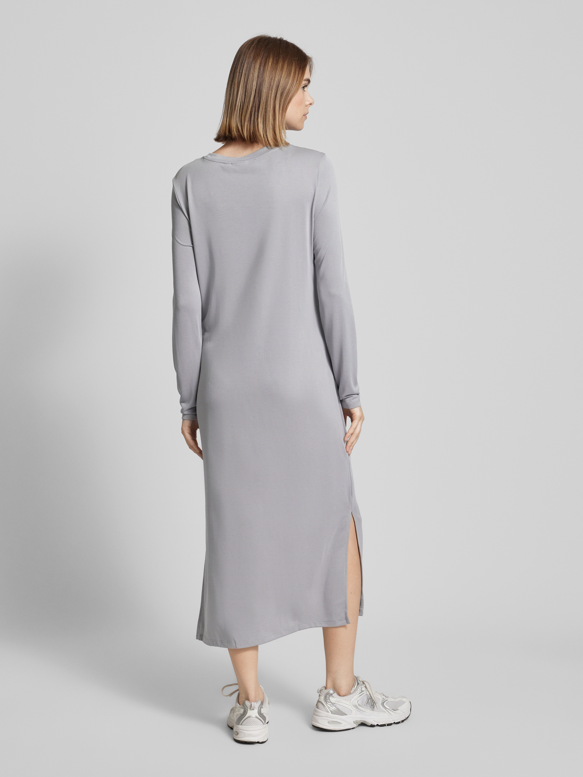 Midi-jurk met ronde hals, model 'ANORA' in lichtgrijs