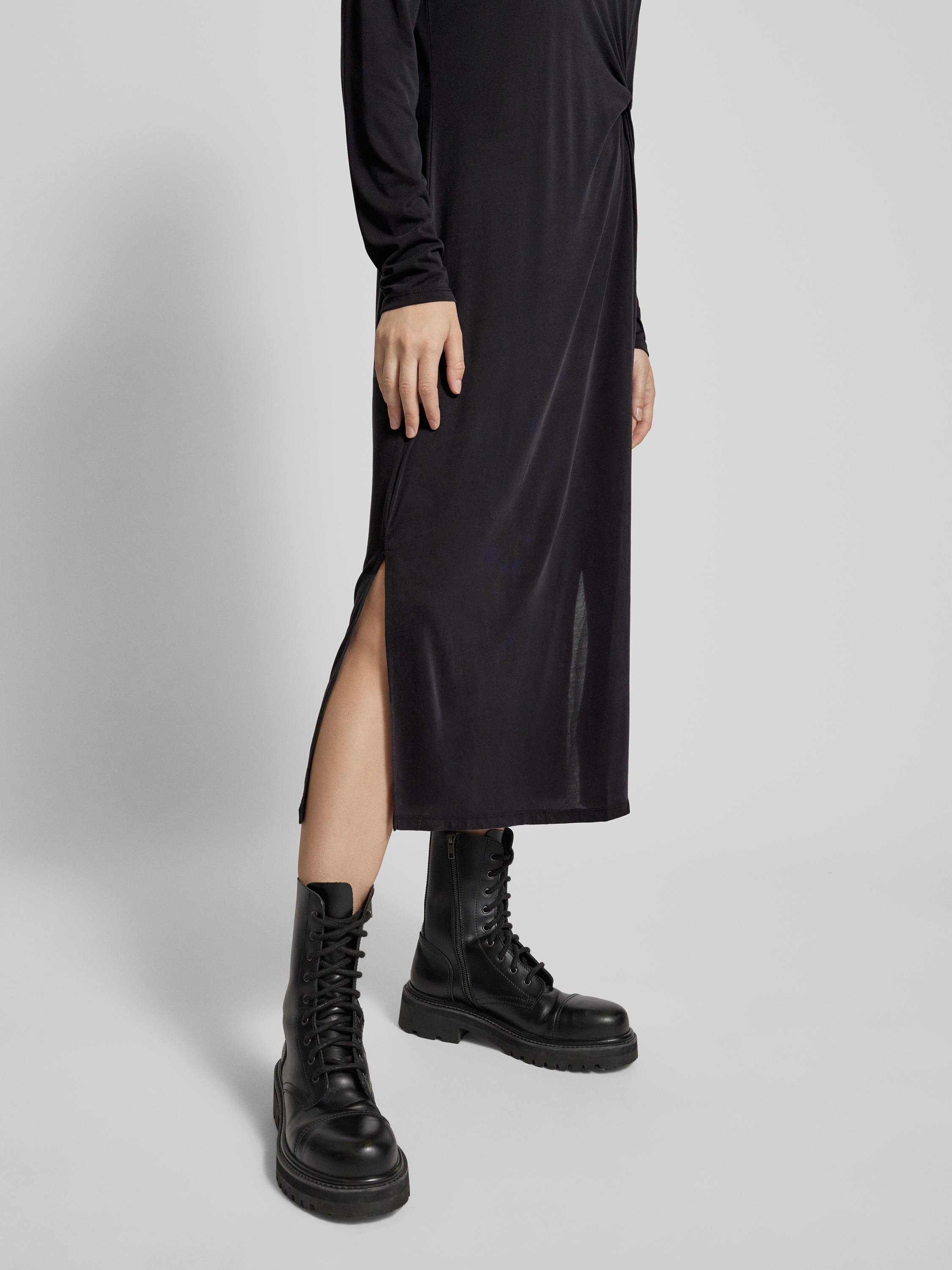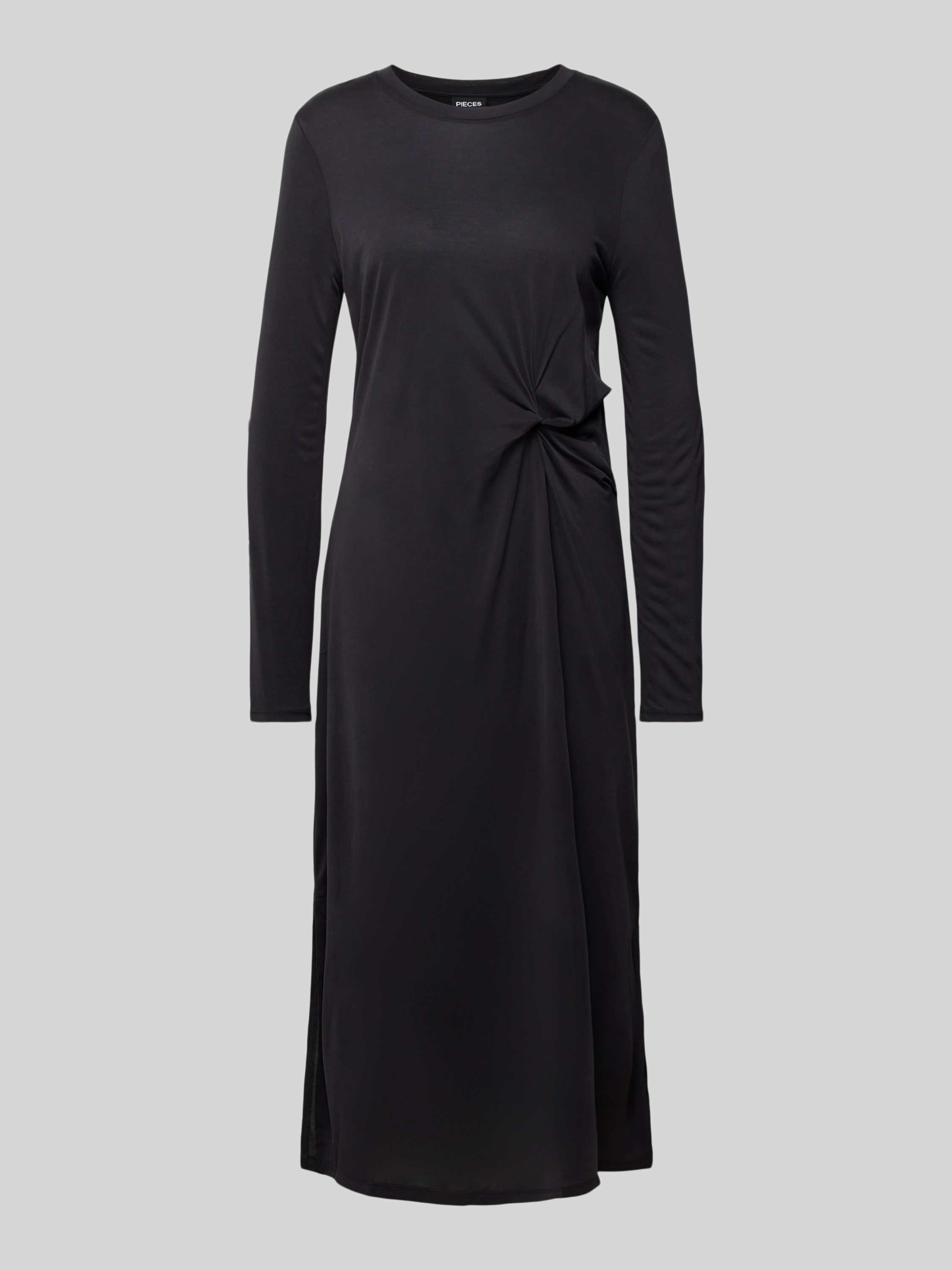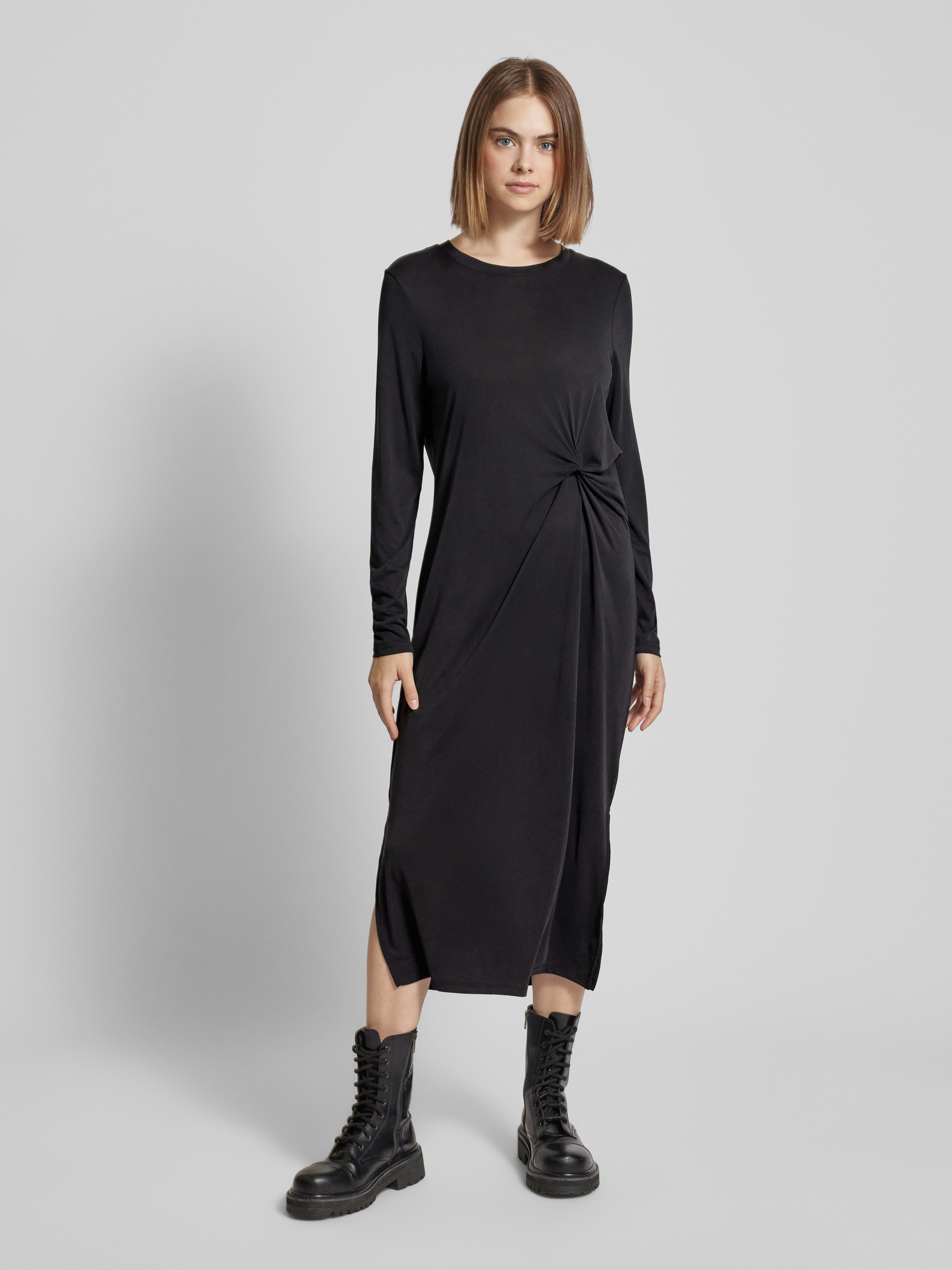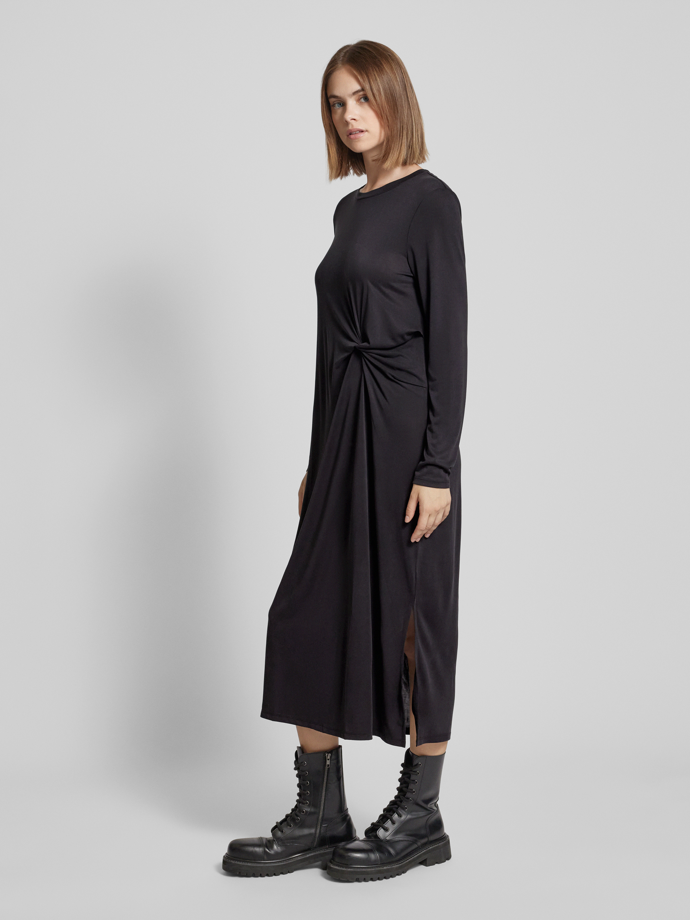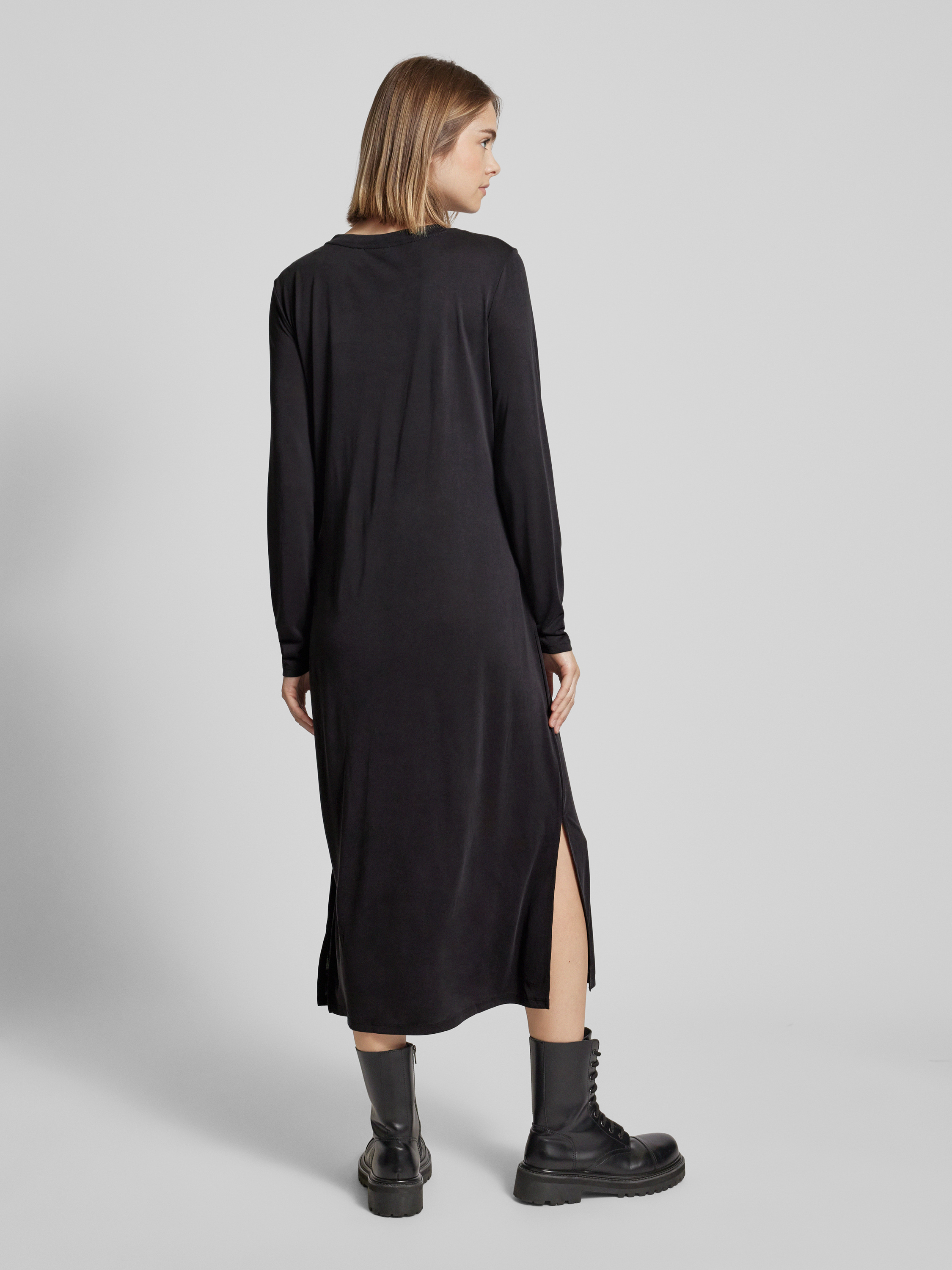Midi-jurk met ronde hals, model 'ANORA' in zwart