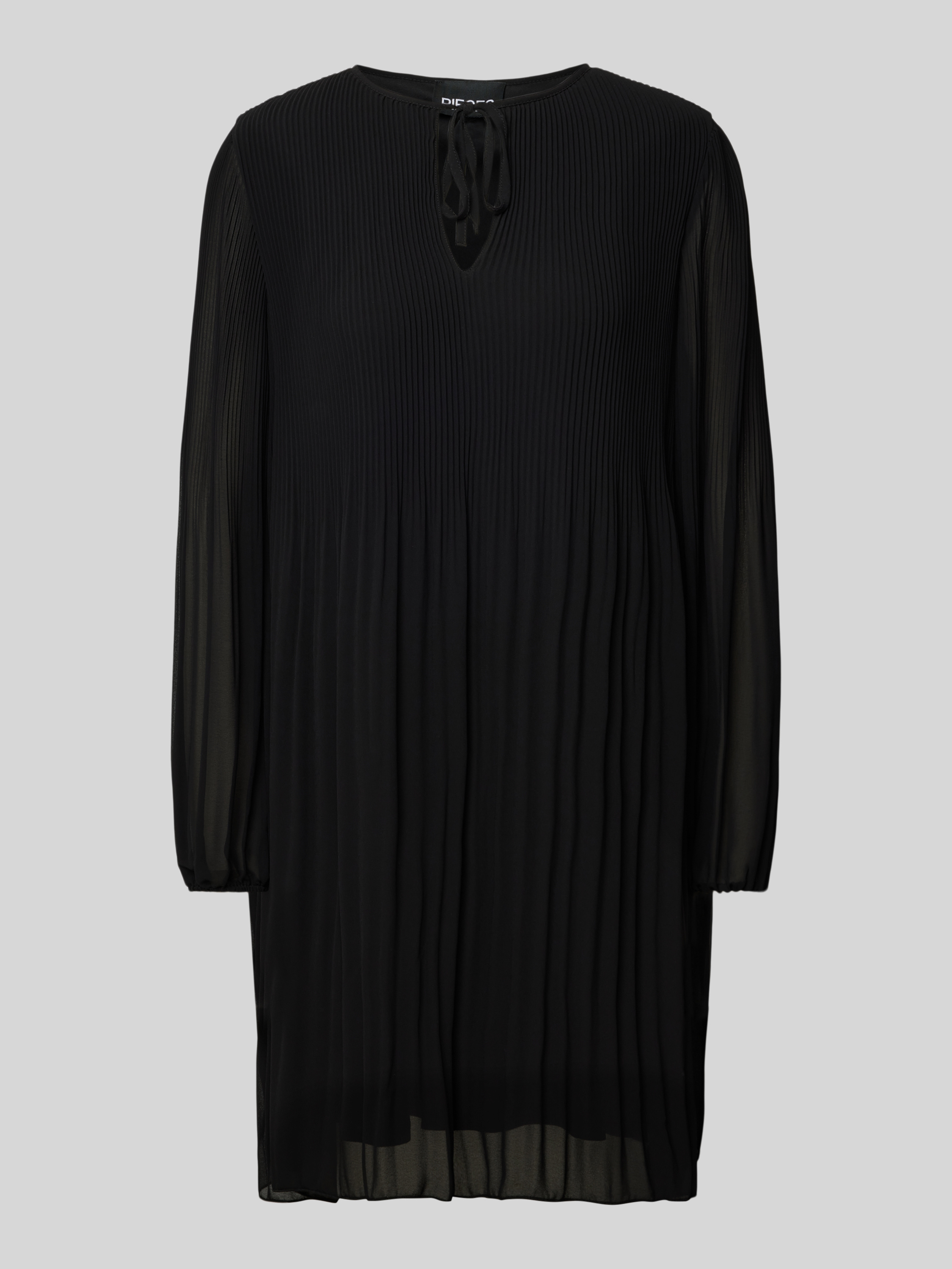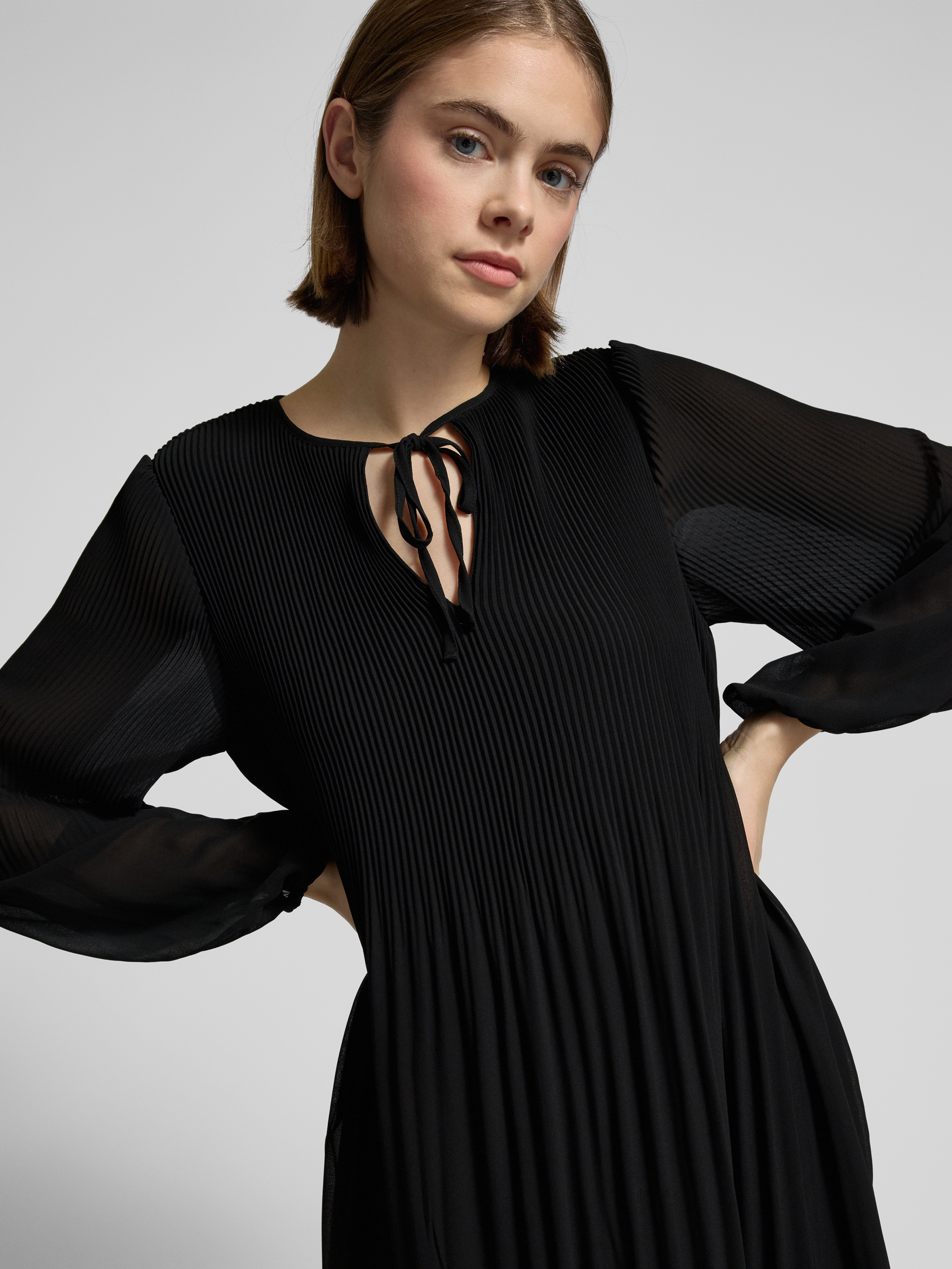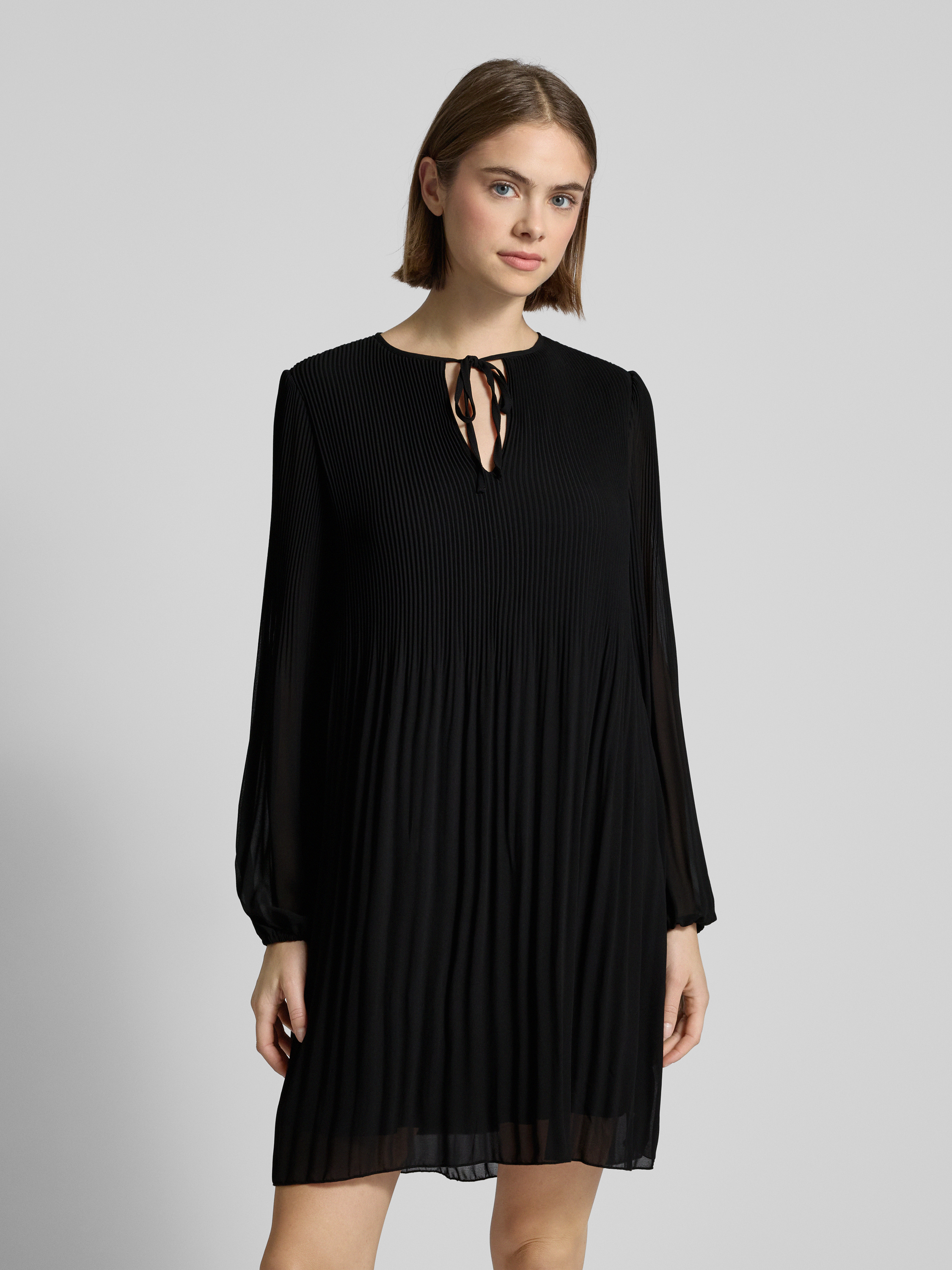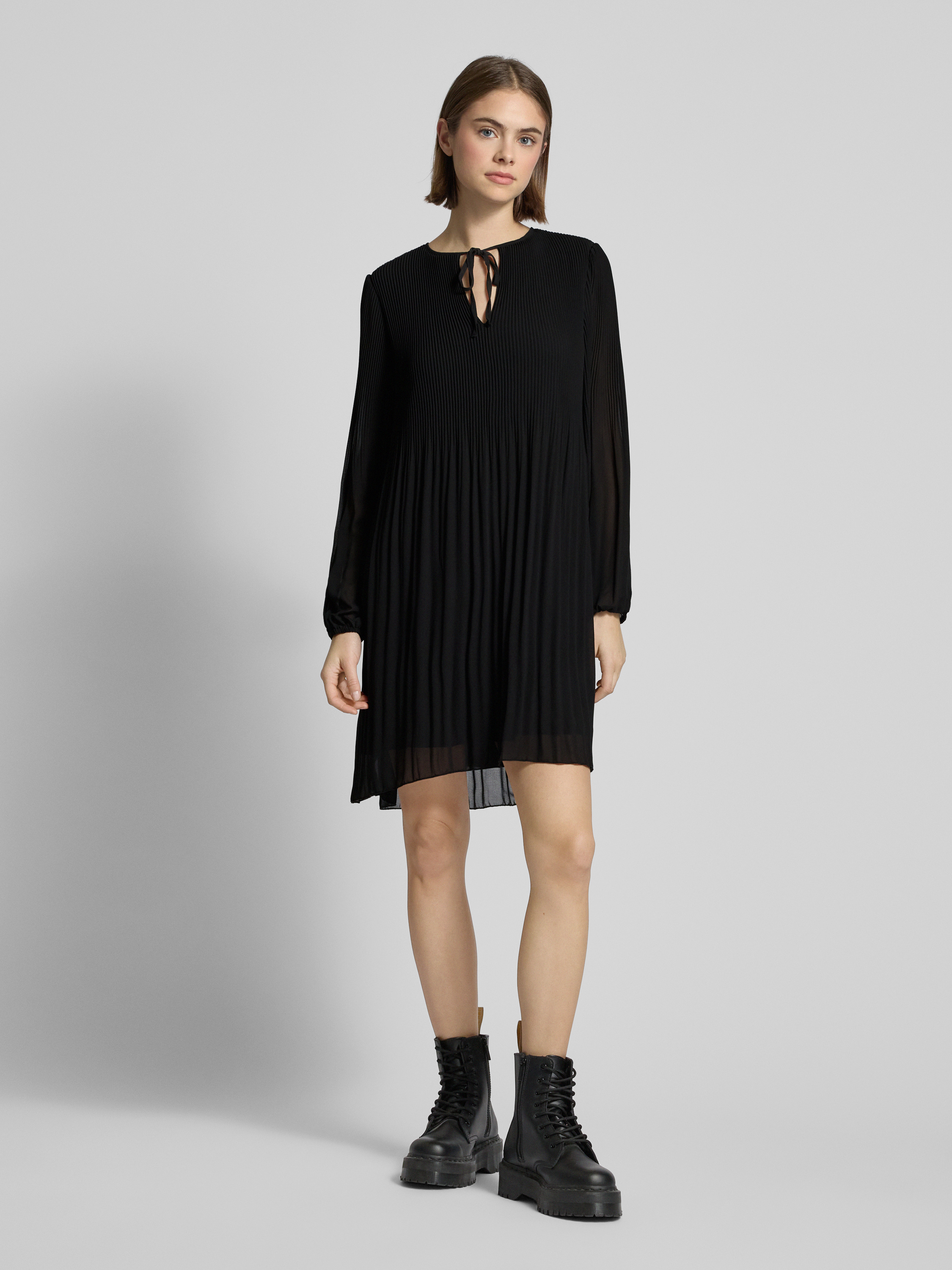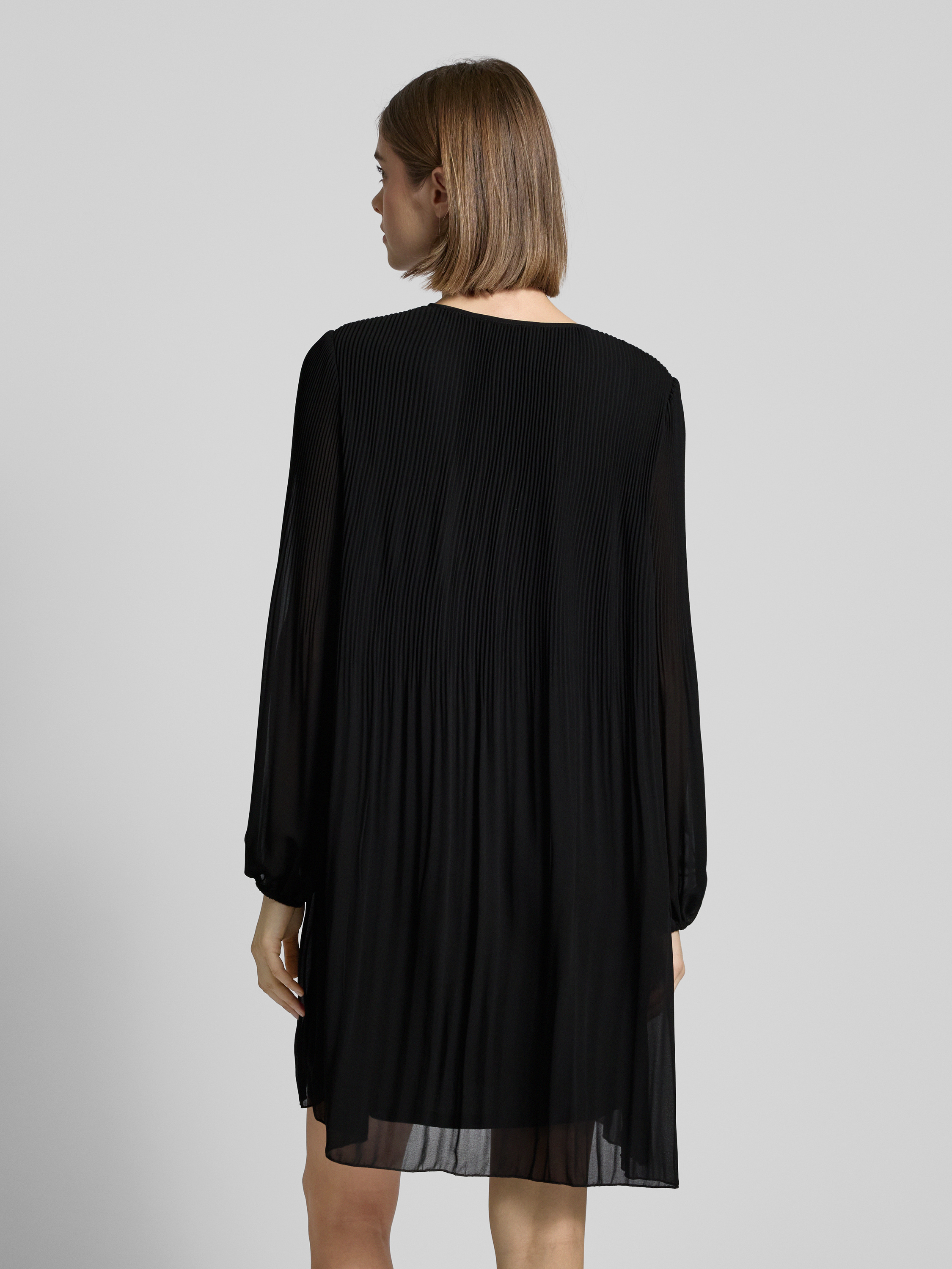 Mini-jurk in A-lijn met plissélook, model 'NAOMIE' in zwart