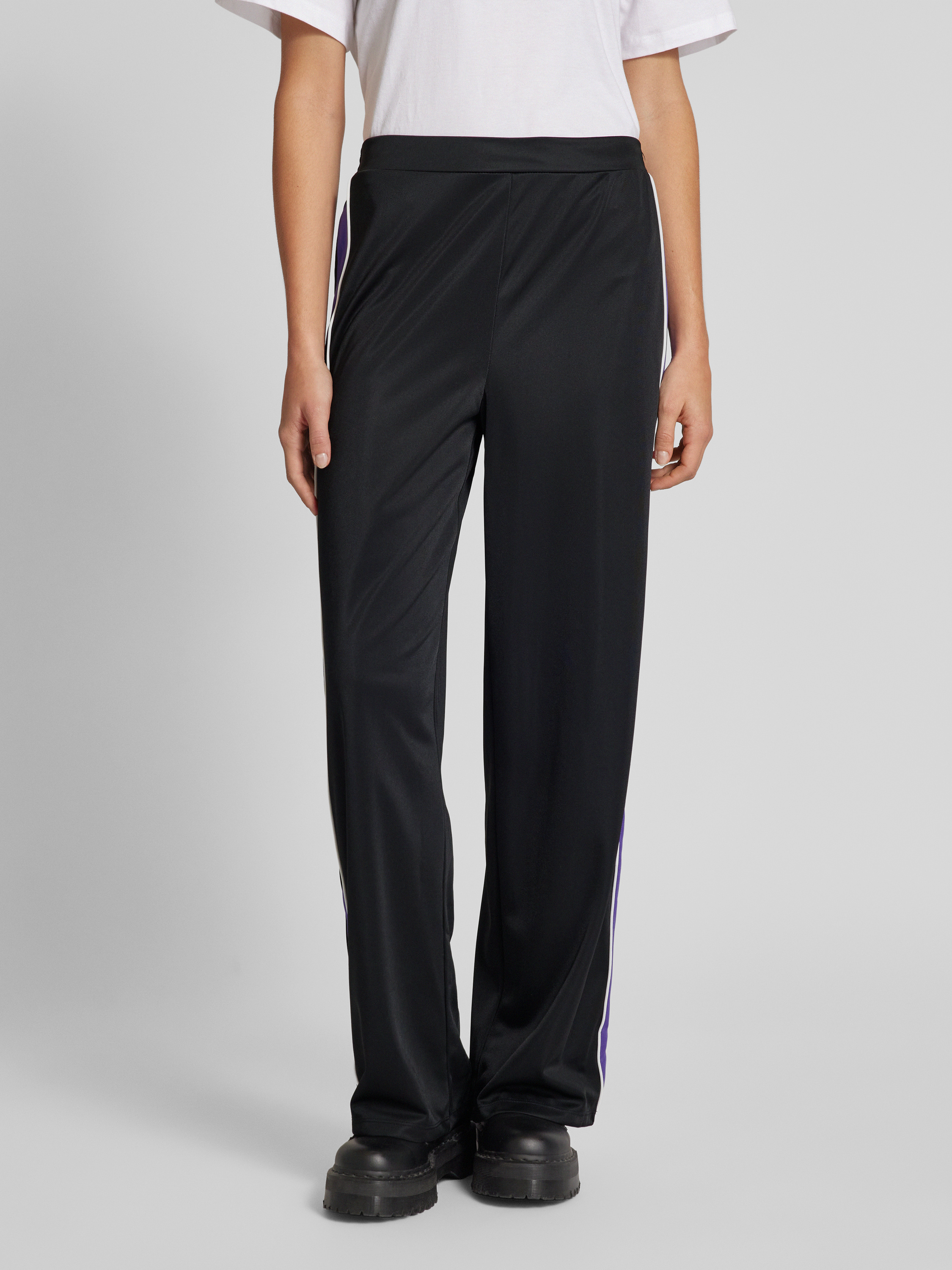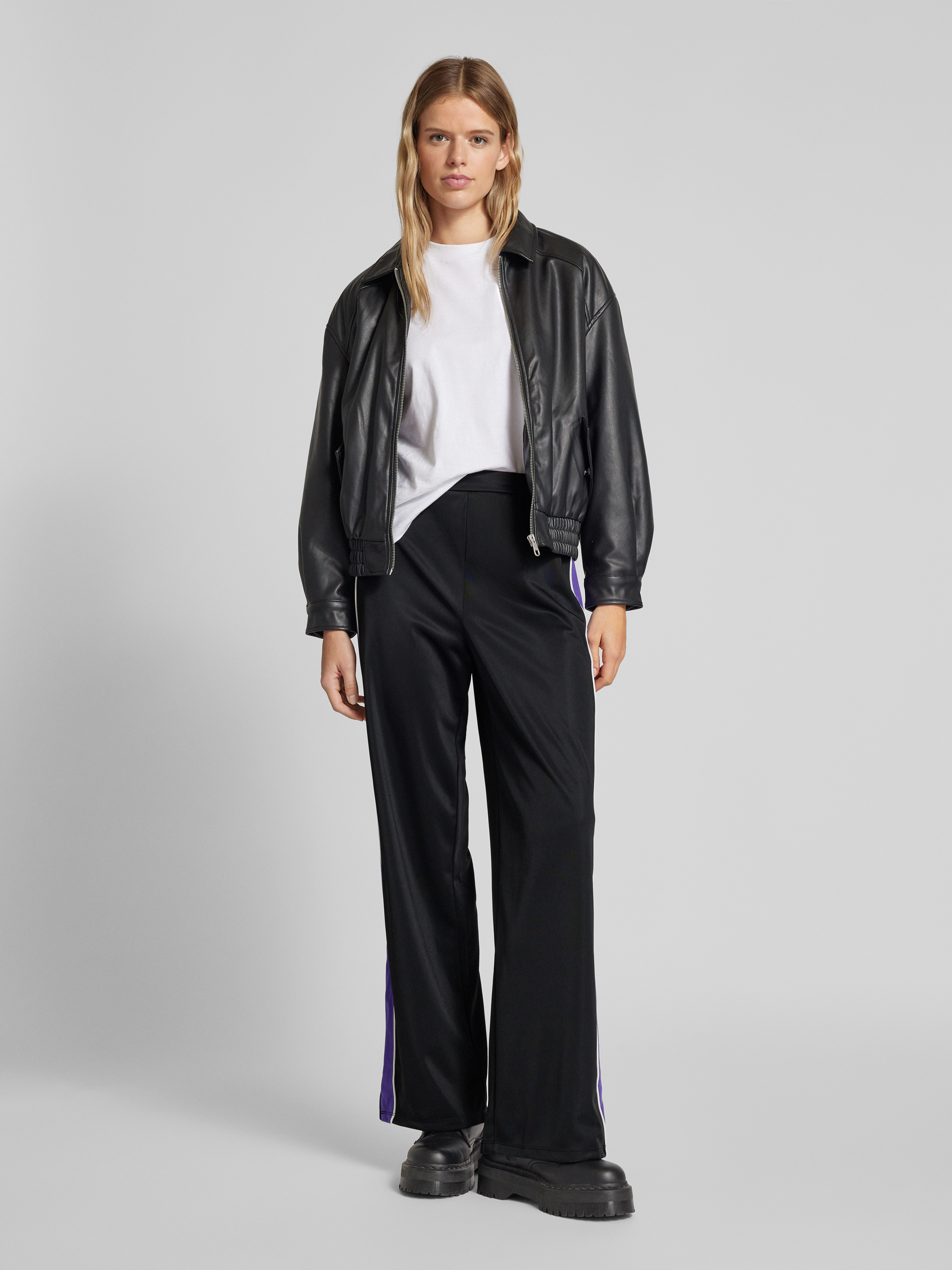 Regular fit broek met wijde pijpen, model 'FELICIA' in metallic zwart