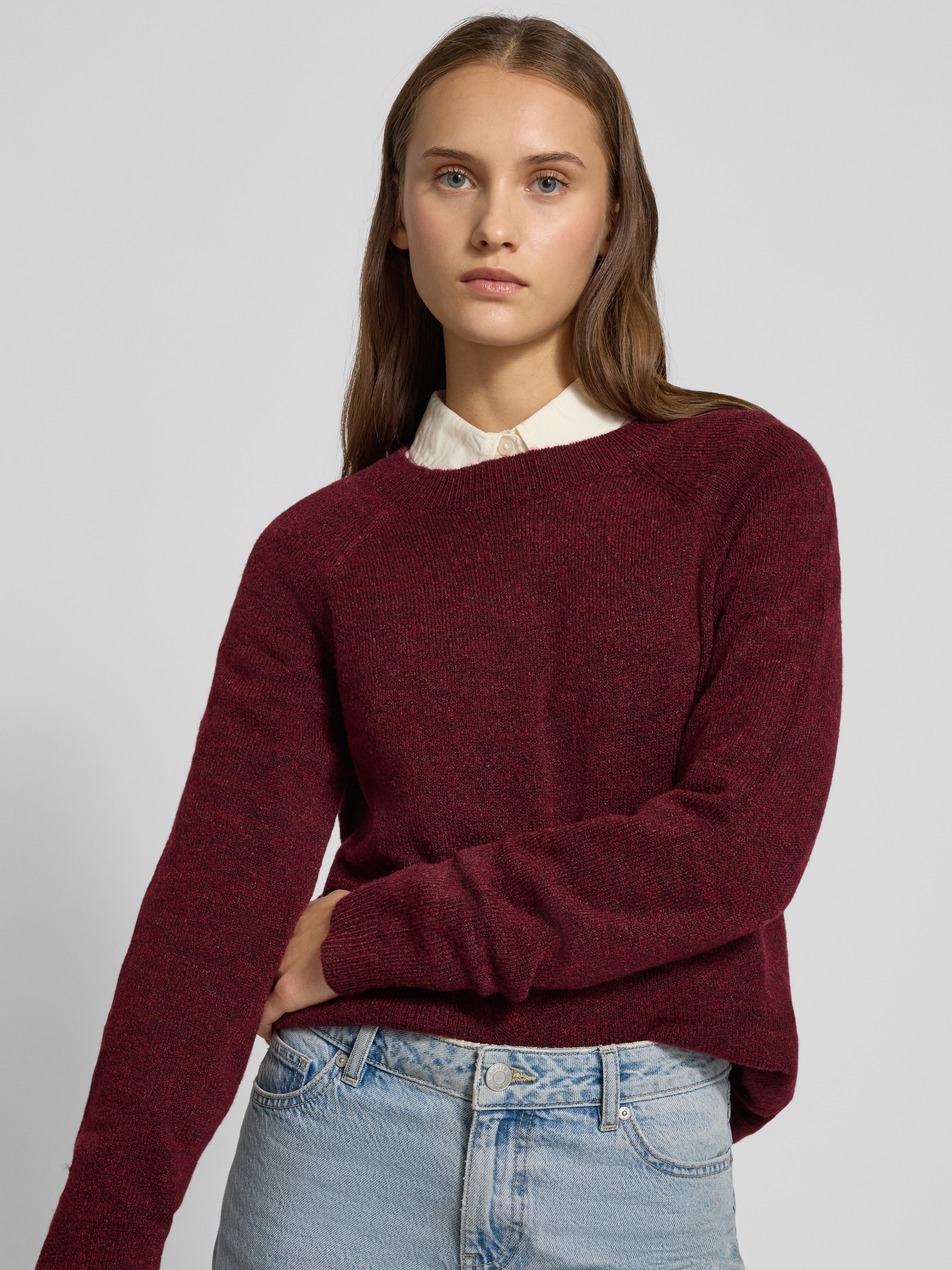 Regular fit coltrui met raglanmouwen, model 'JULIANA' in donkerrood