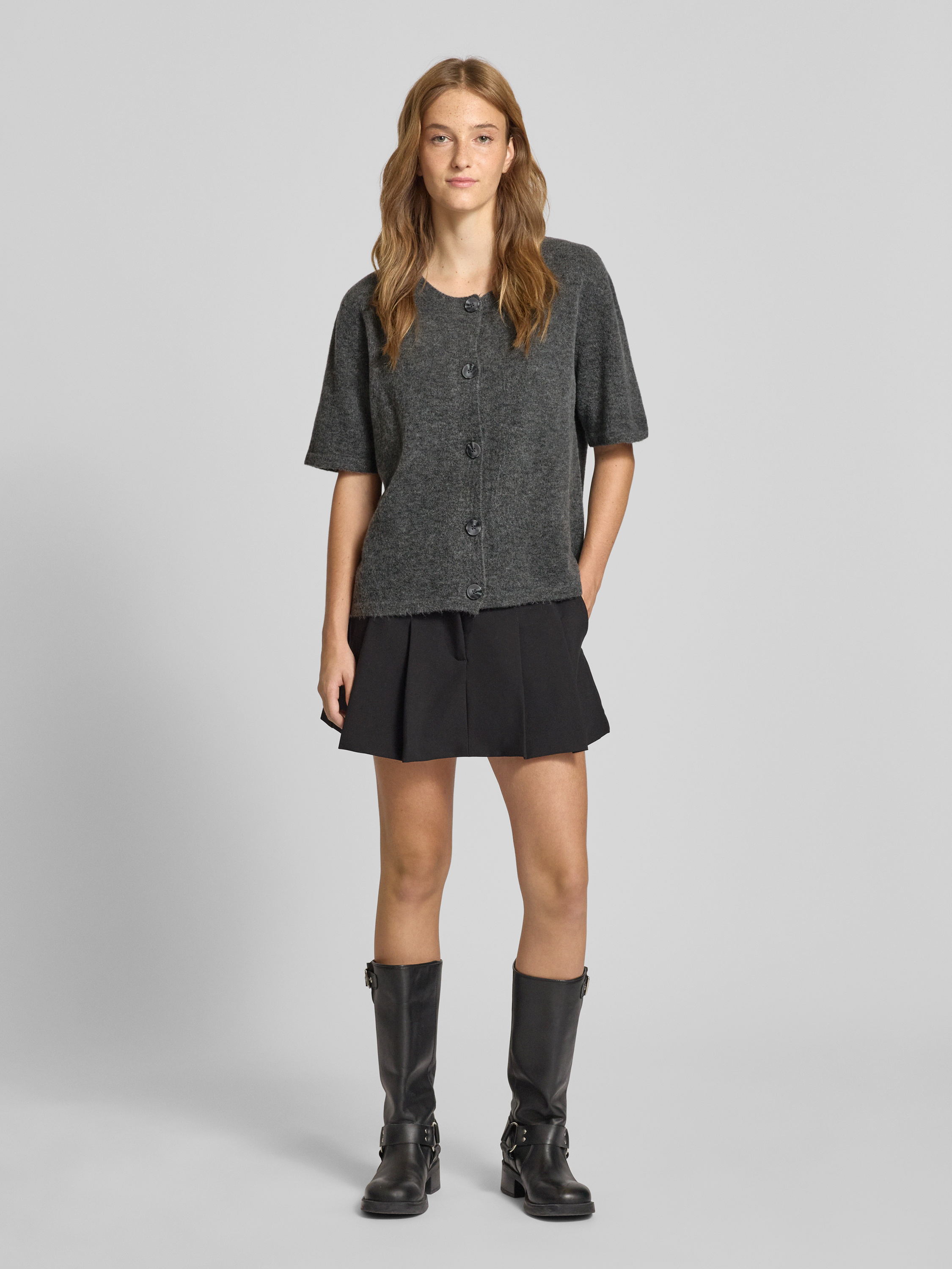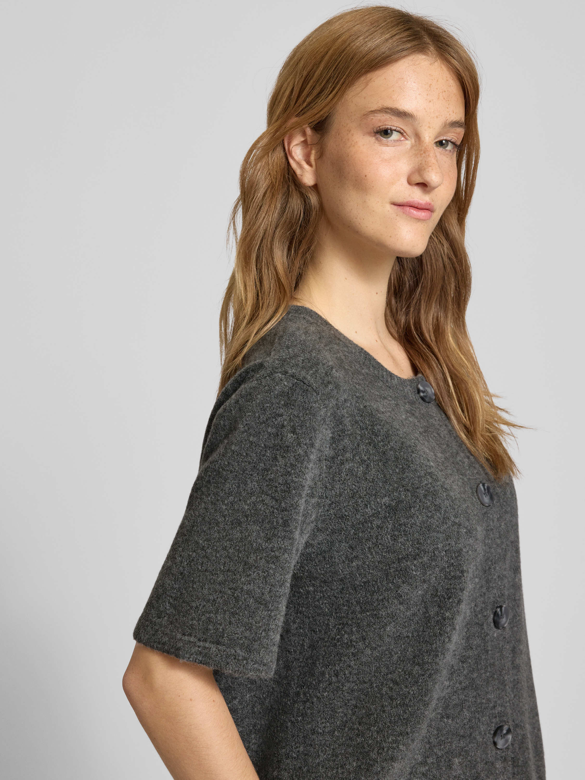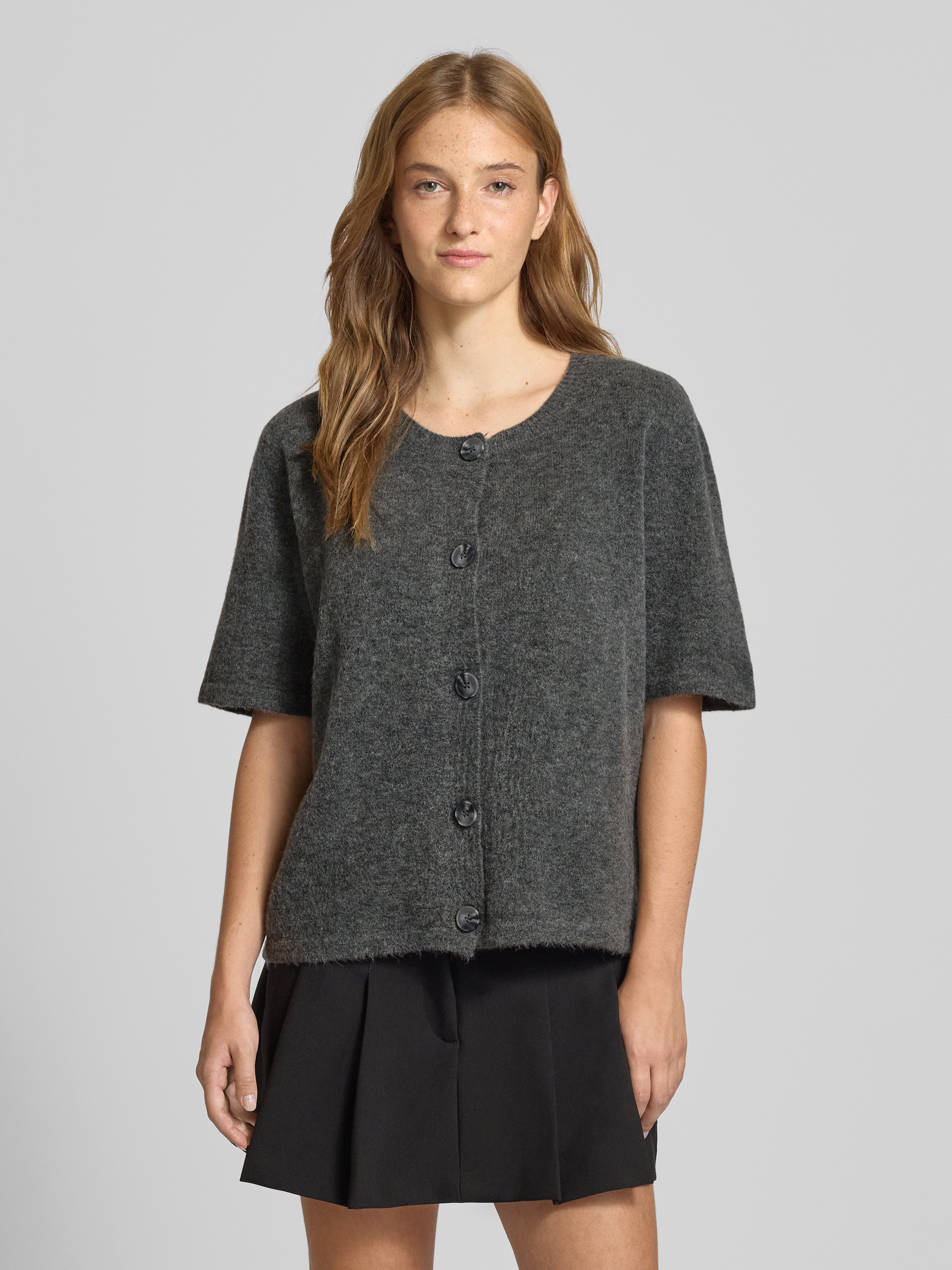 Regular fit gebreid jack met korte mouwen, model 'JIKO' in middengrijs gemêleerd
