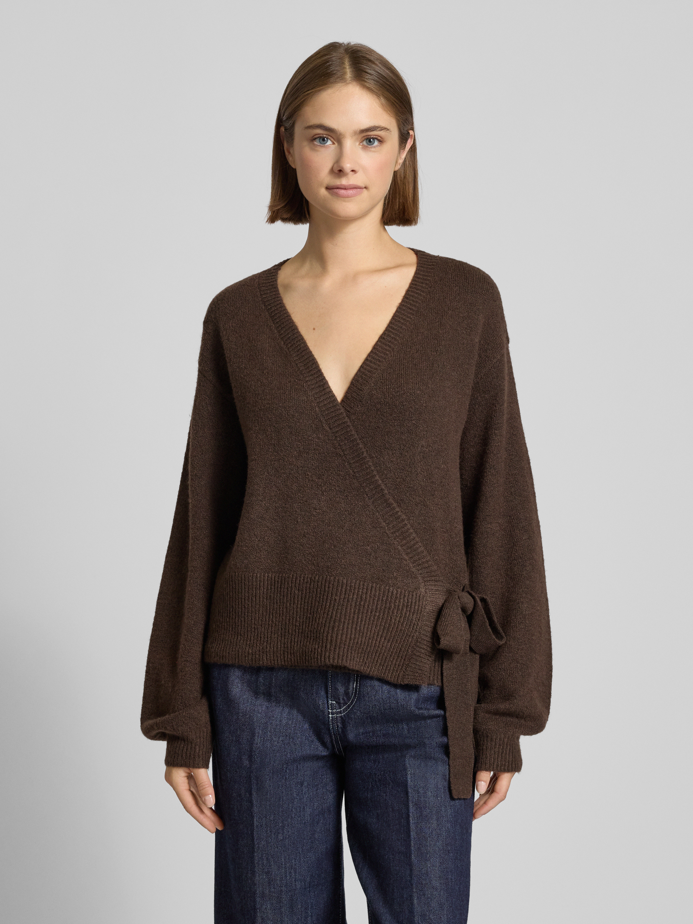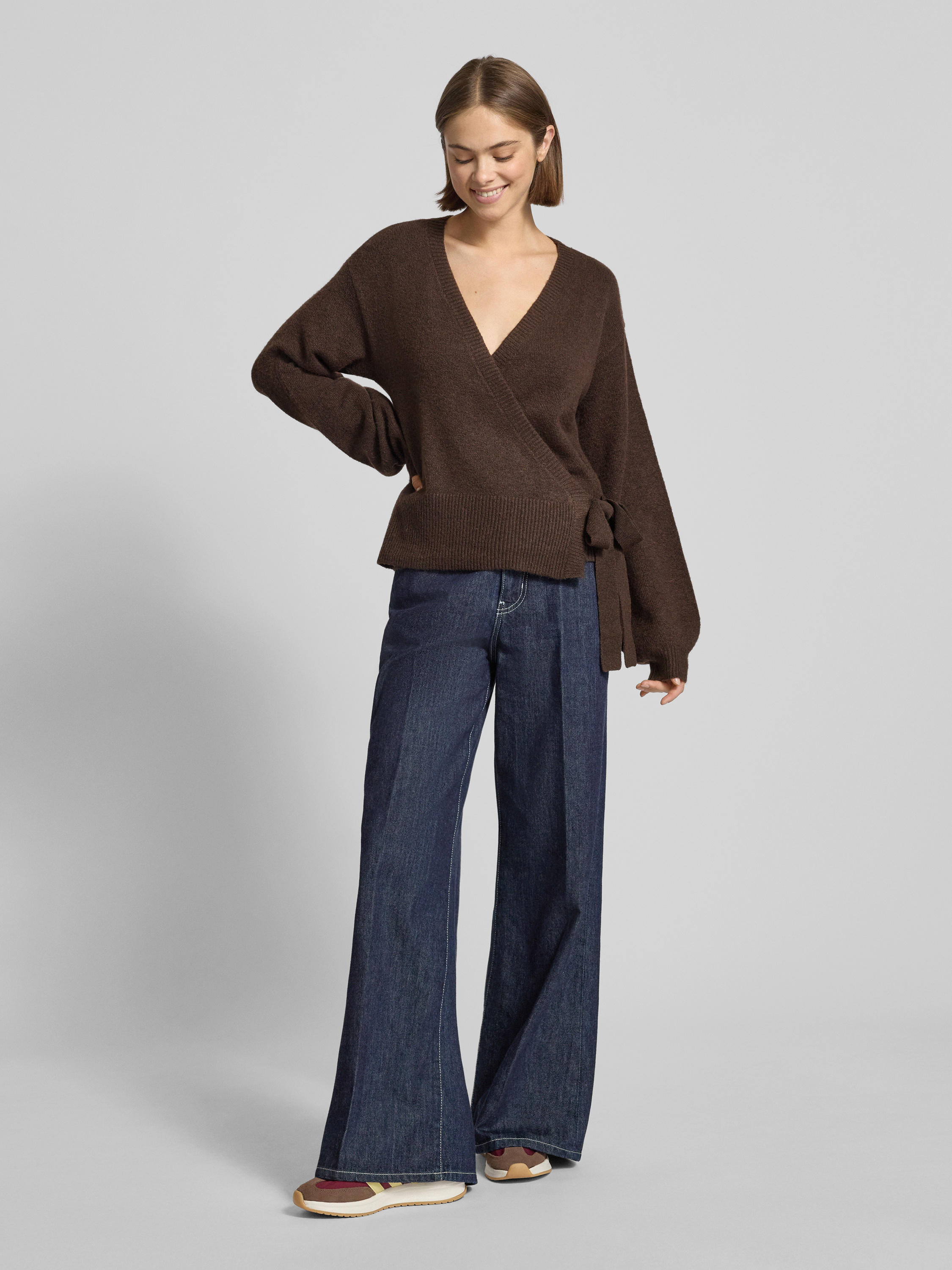 Regular fit gebreid jack met wol, model 'MALOU' in donkerblauw gemêleerd