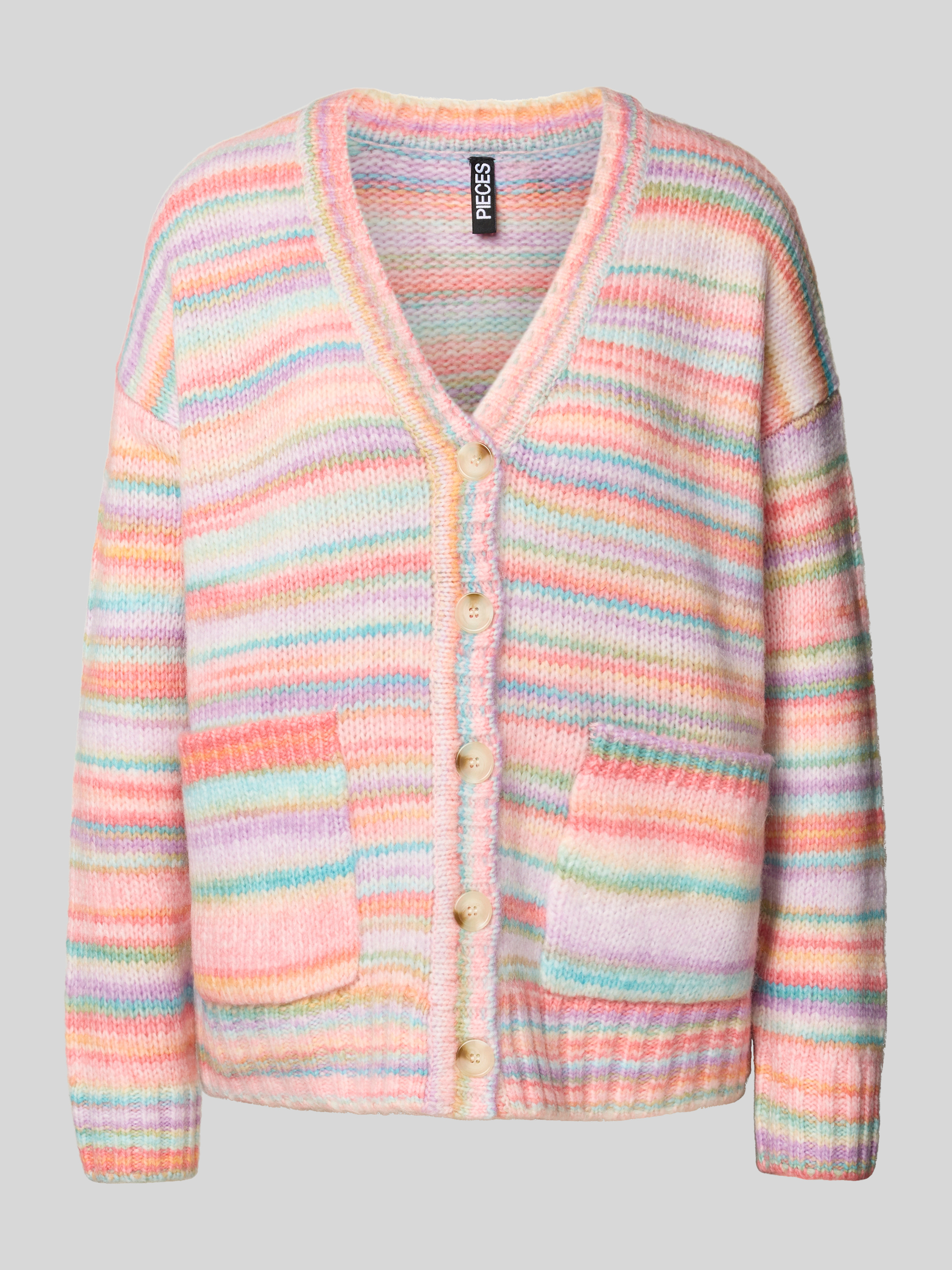 Regular fit gebreid jack van zacht ribtricot, model 'ORMAN' in roze gemêleerd