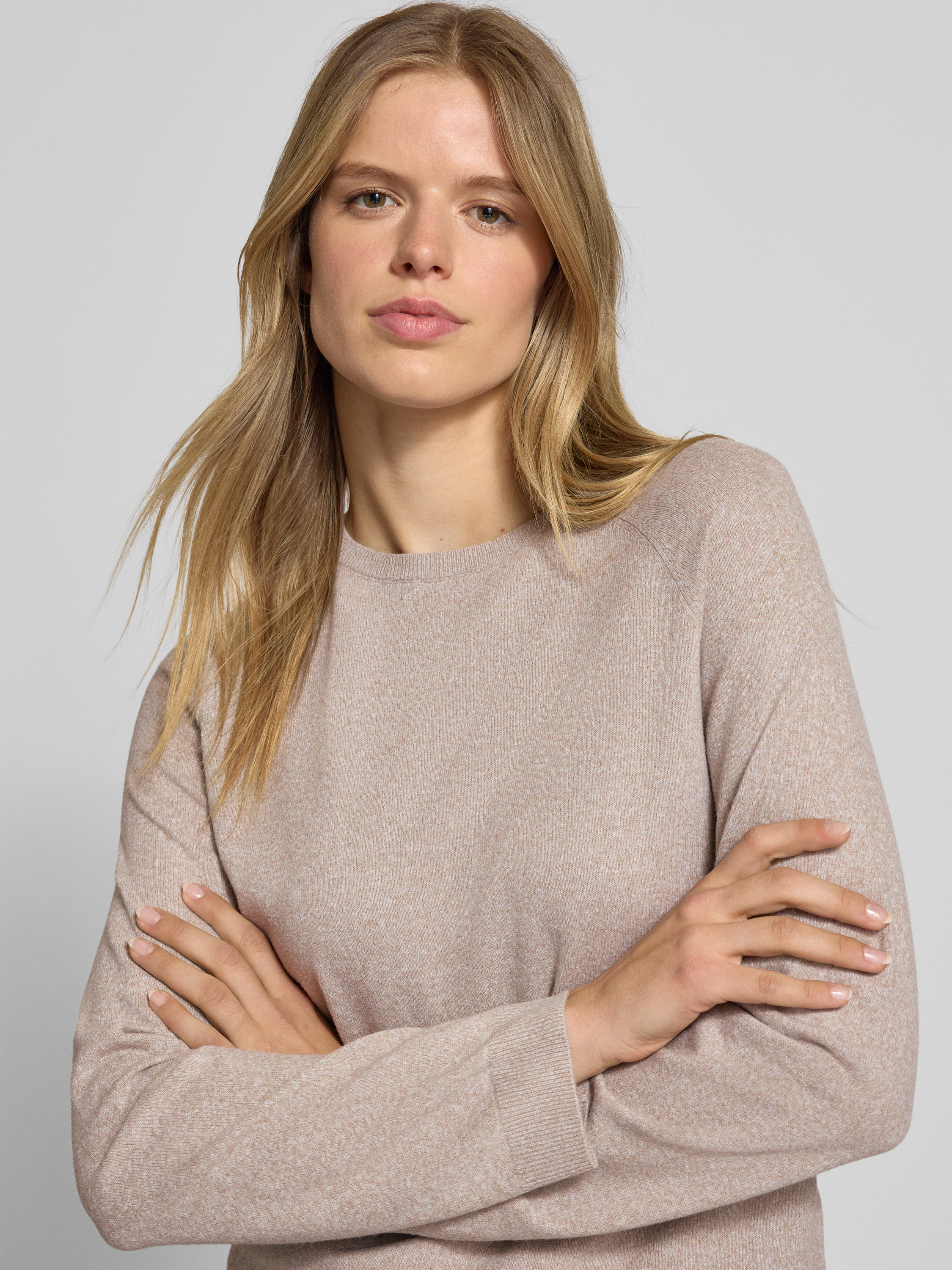 Regular fit pullover met raglanmouwen, model 'BREE' in zand gemêleerd