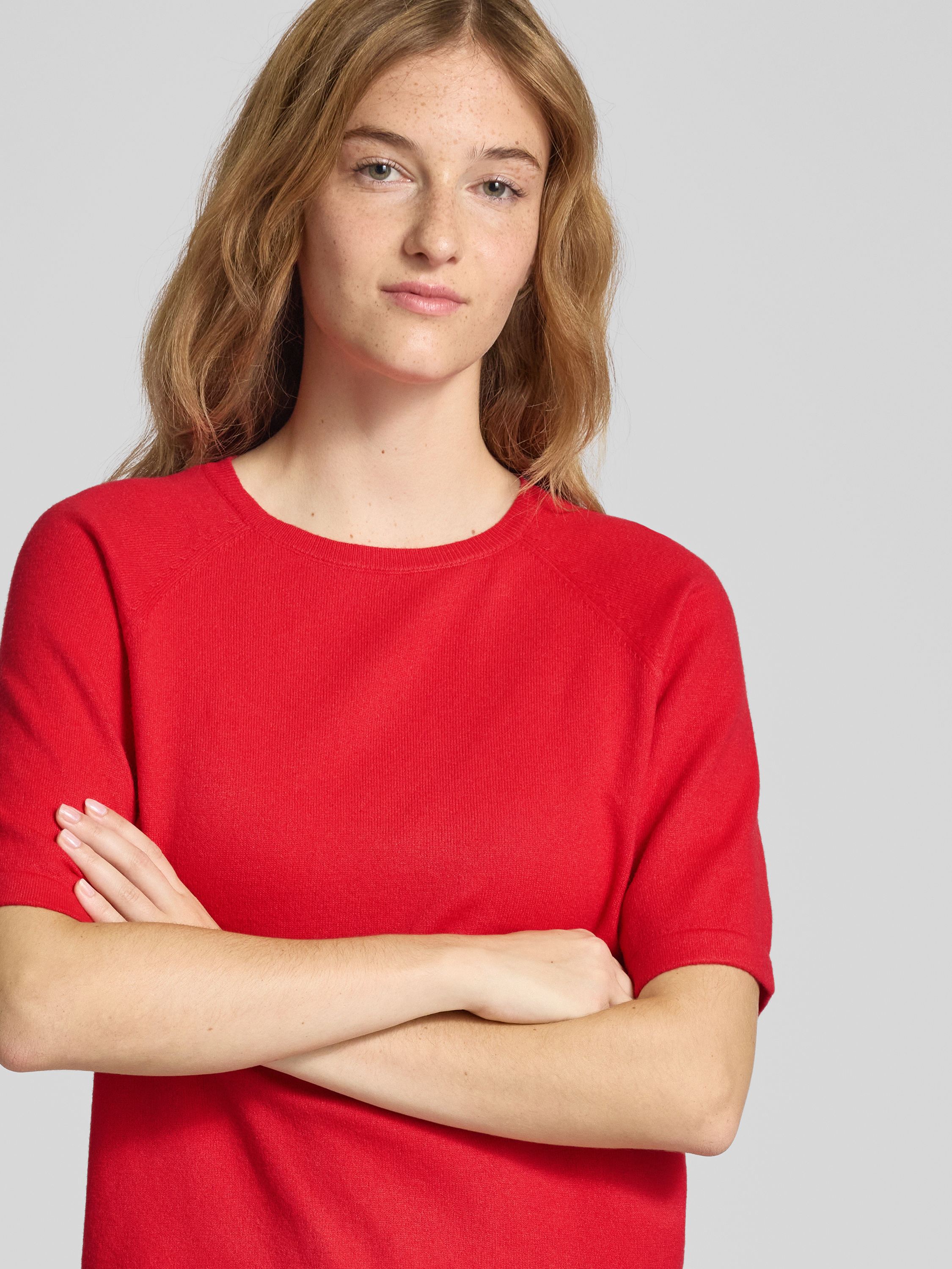 Regular fit T-shirt met raglanmouwen, model 'BREE' in roestrood gemêleerd