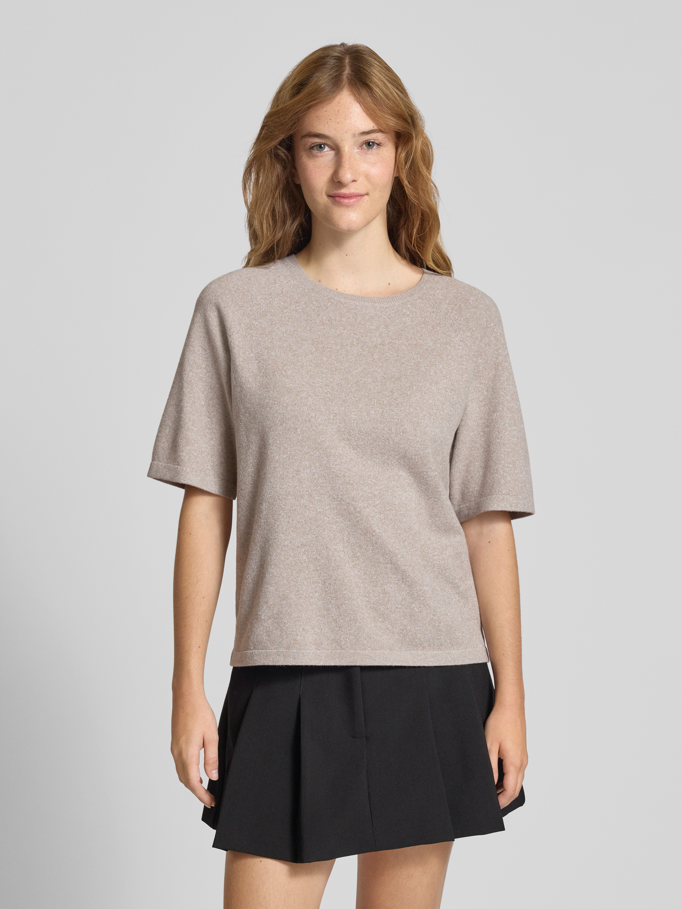 Regular fit T-shirt met raglanmouwen, model 'BREE' in taupe gemêleerd