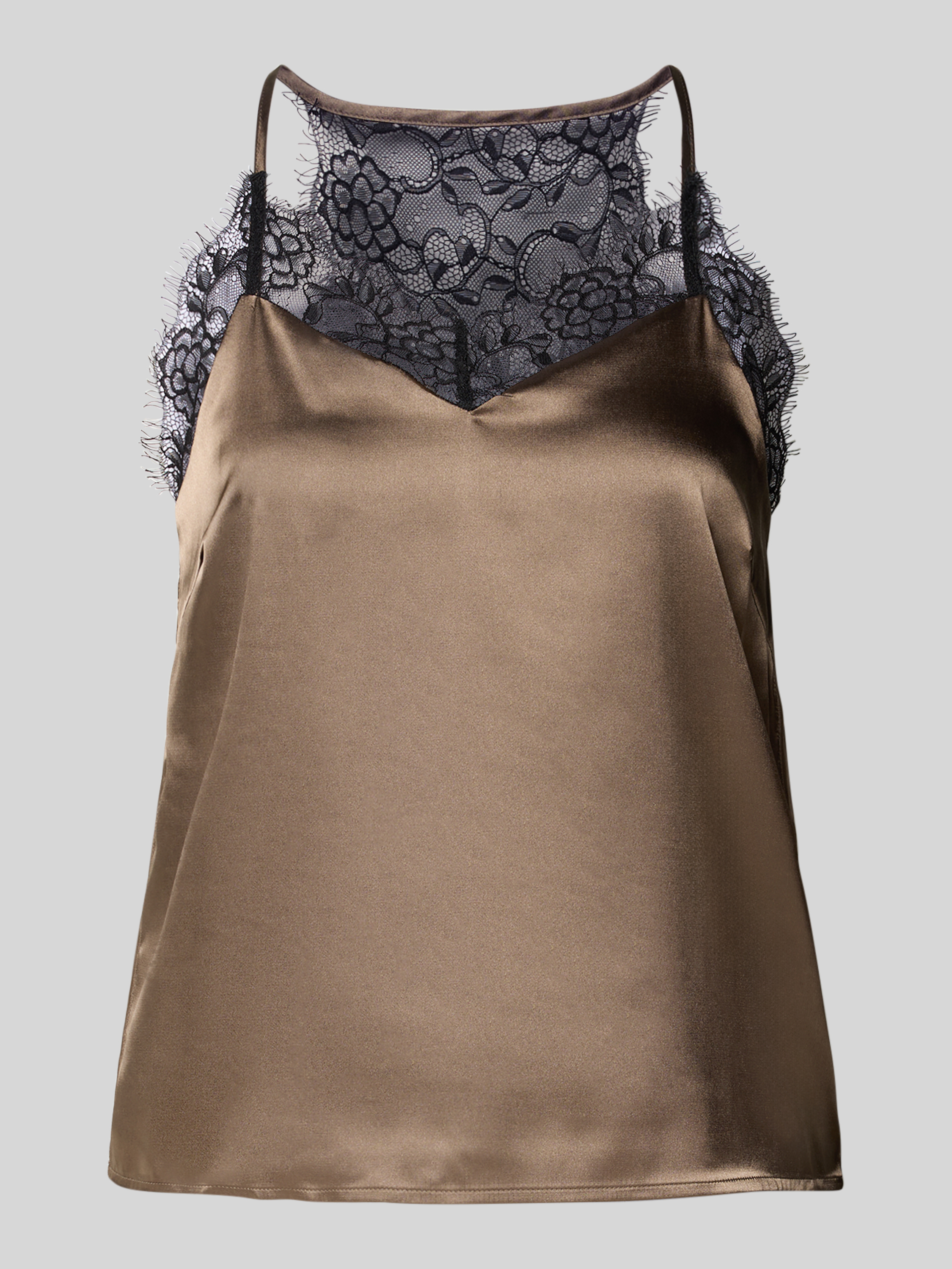Regular fit top met bandjes van satijn, model 'JAHARA' in lichtbruin gemêleerd