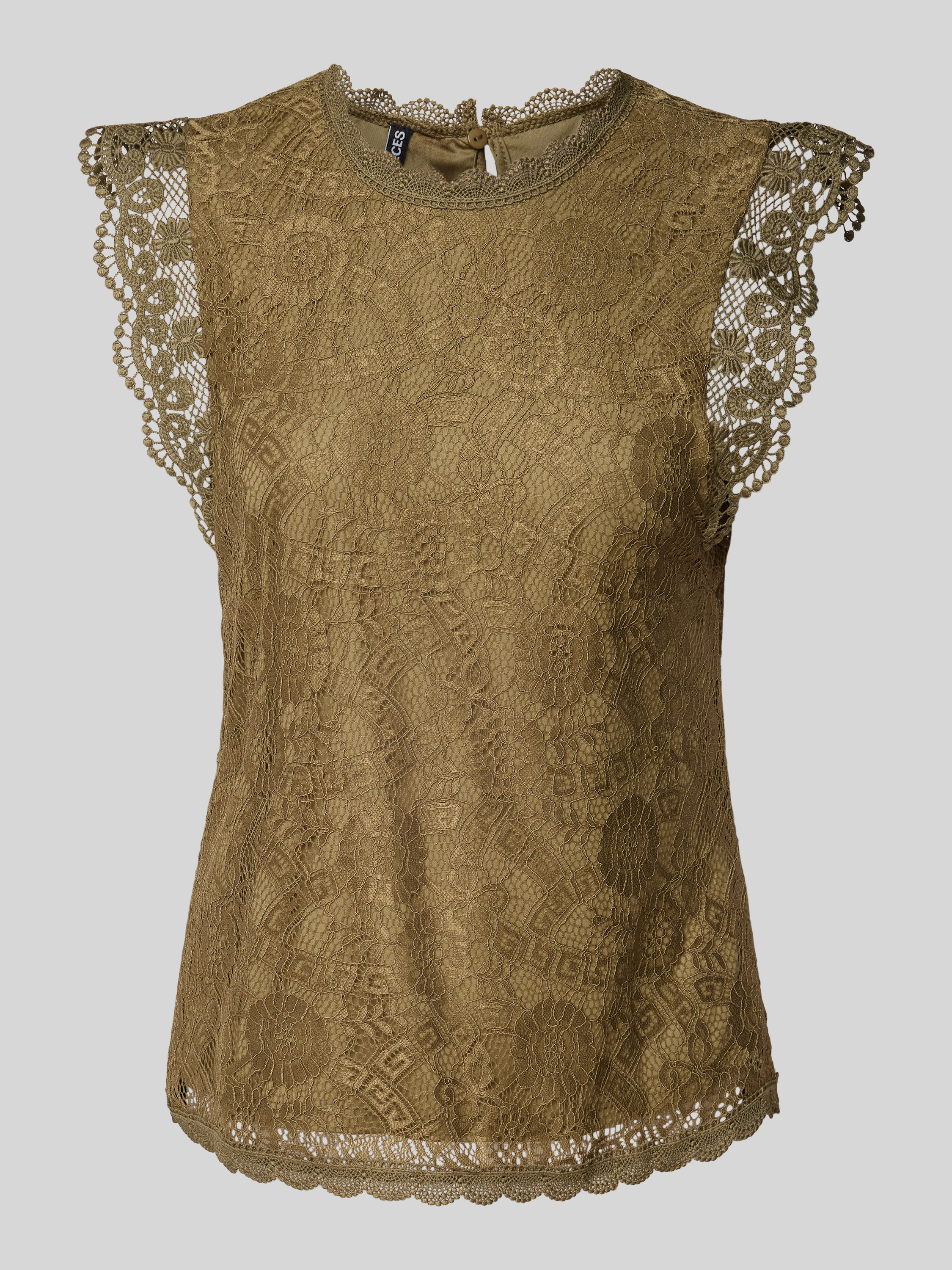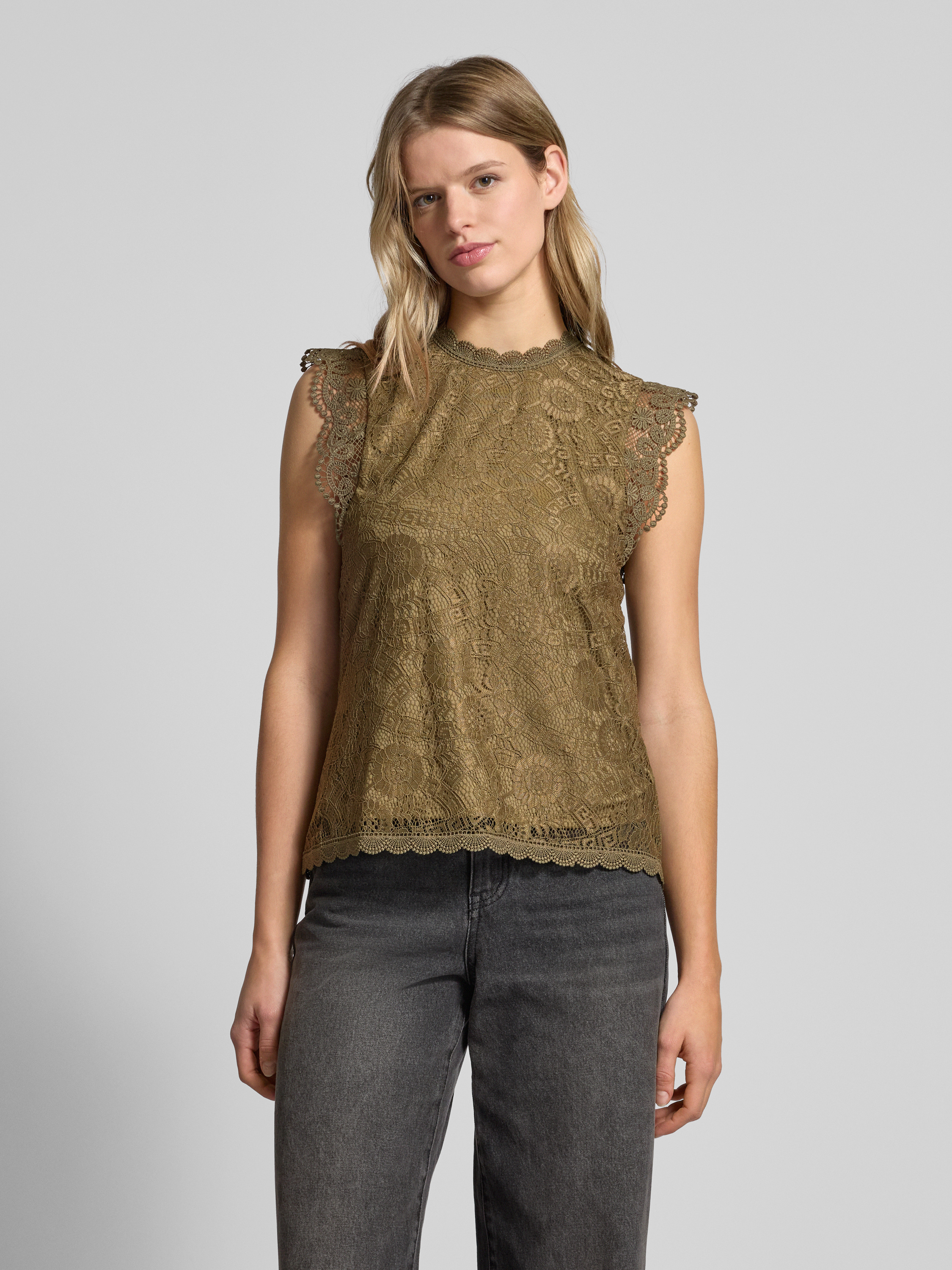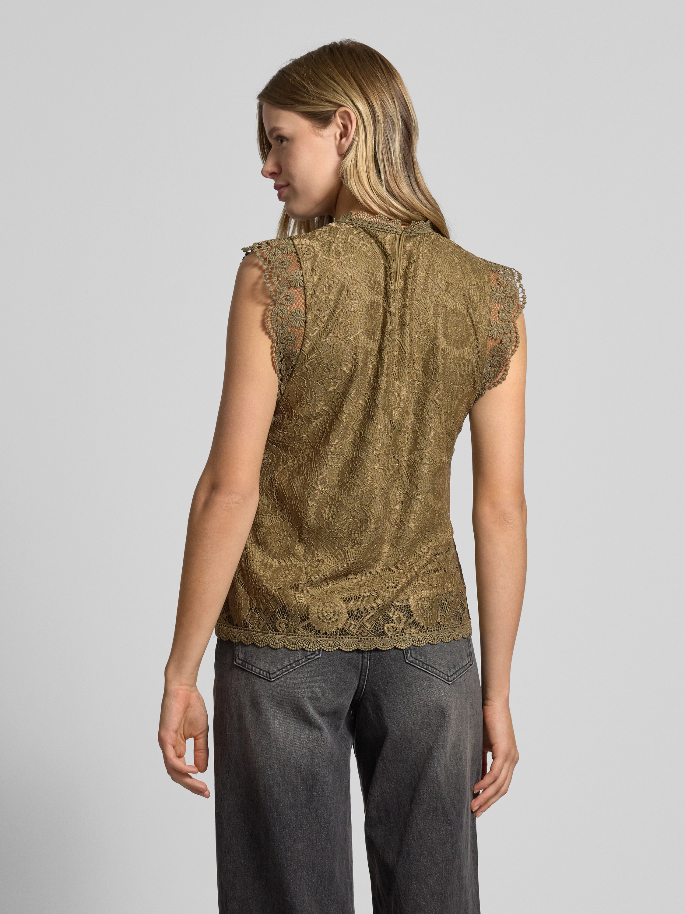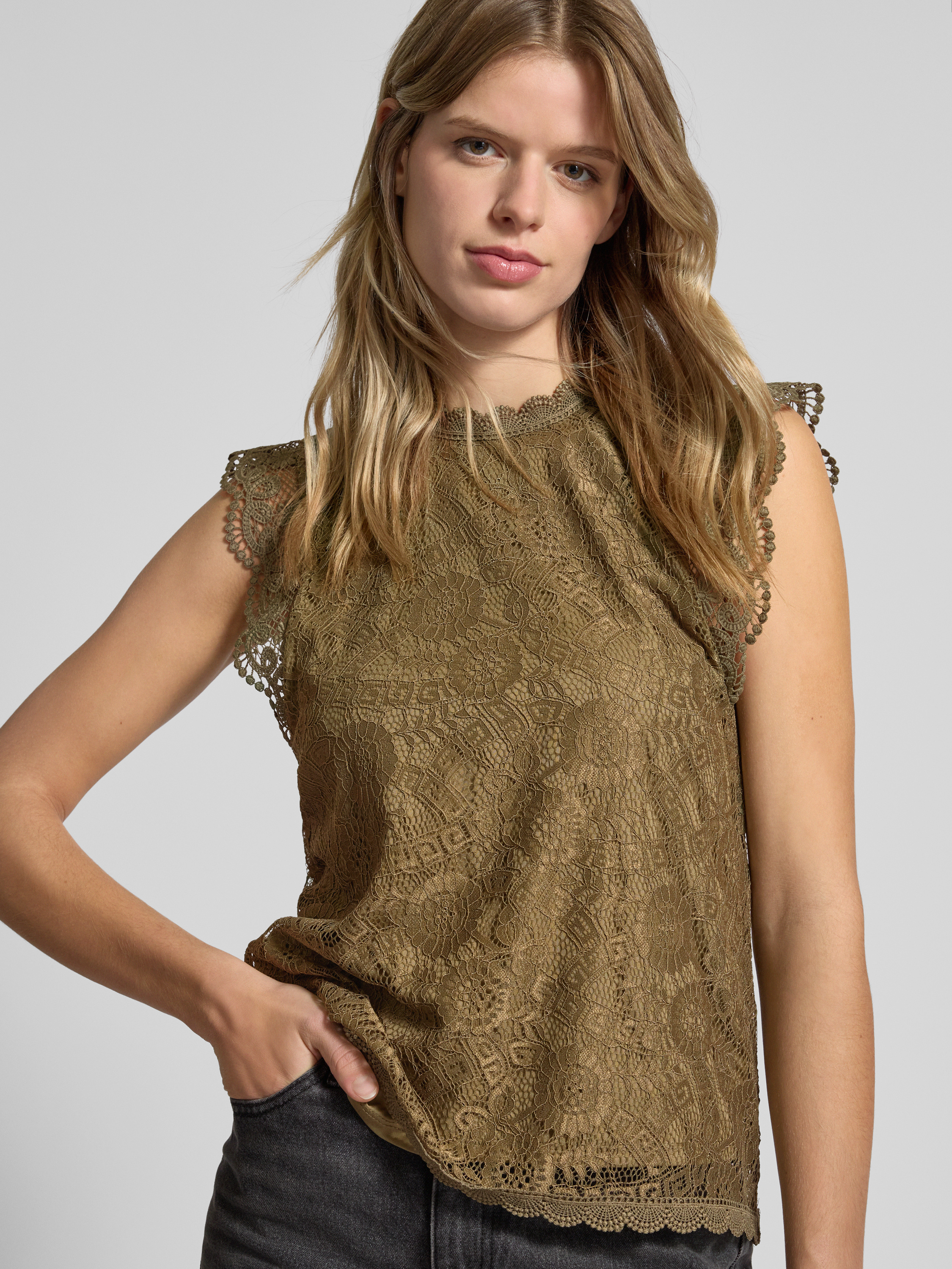 Regular fit top met kant, model 'COLLINE' in olijfgroen