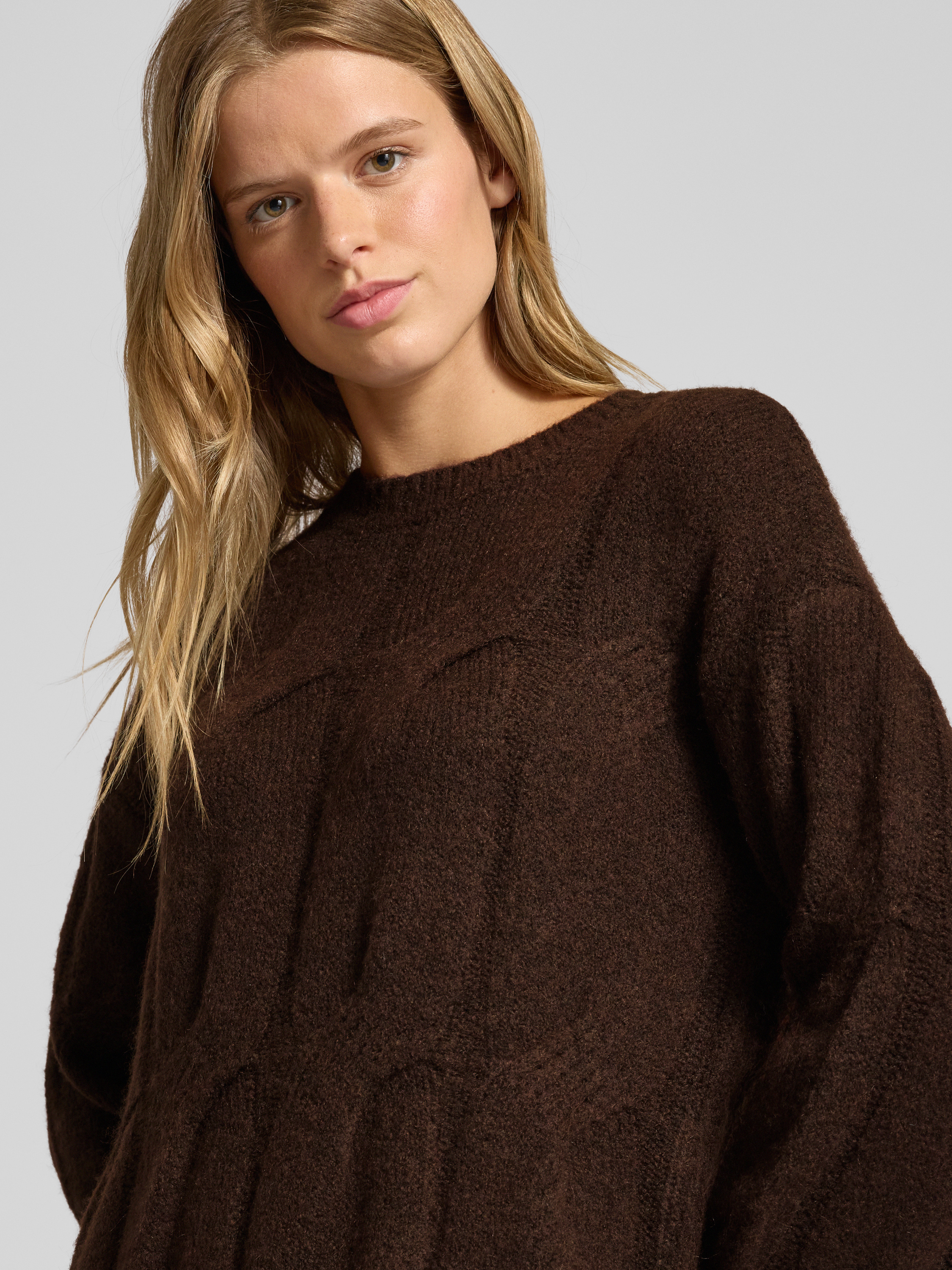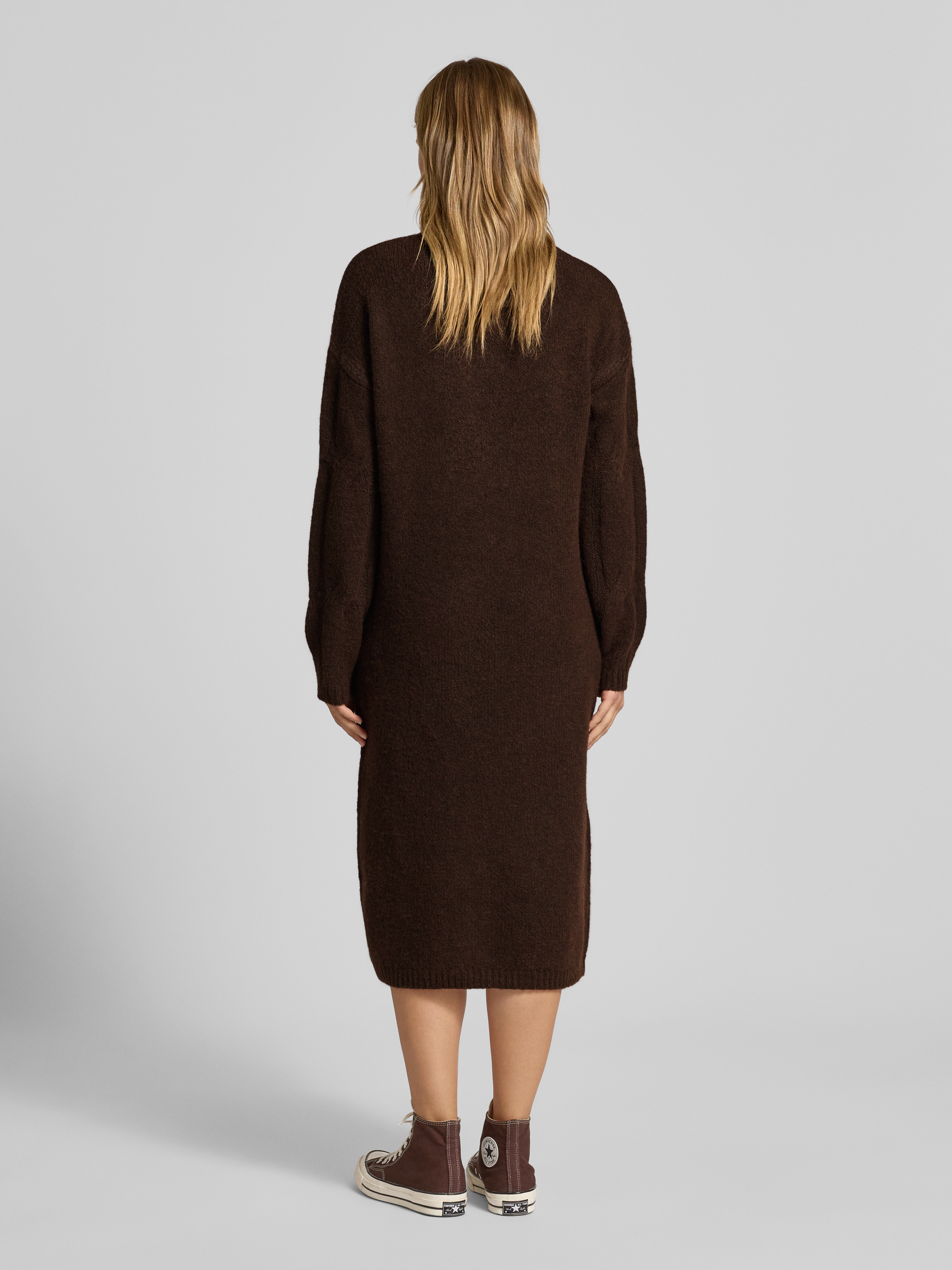 Relaxed fit gebreide jurk met wol, model 'JENNA' in donkerbruin
