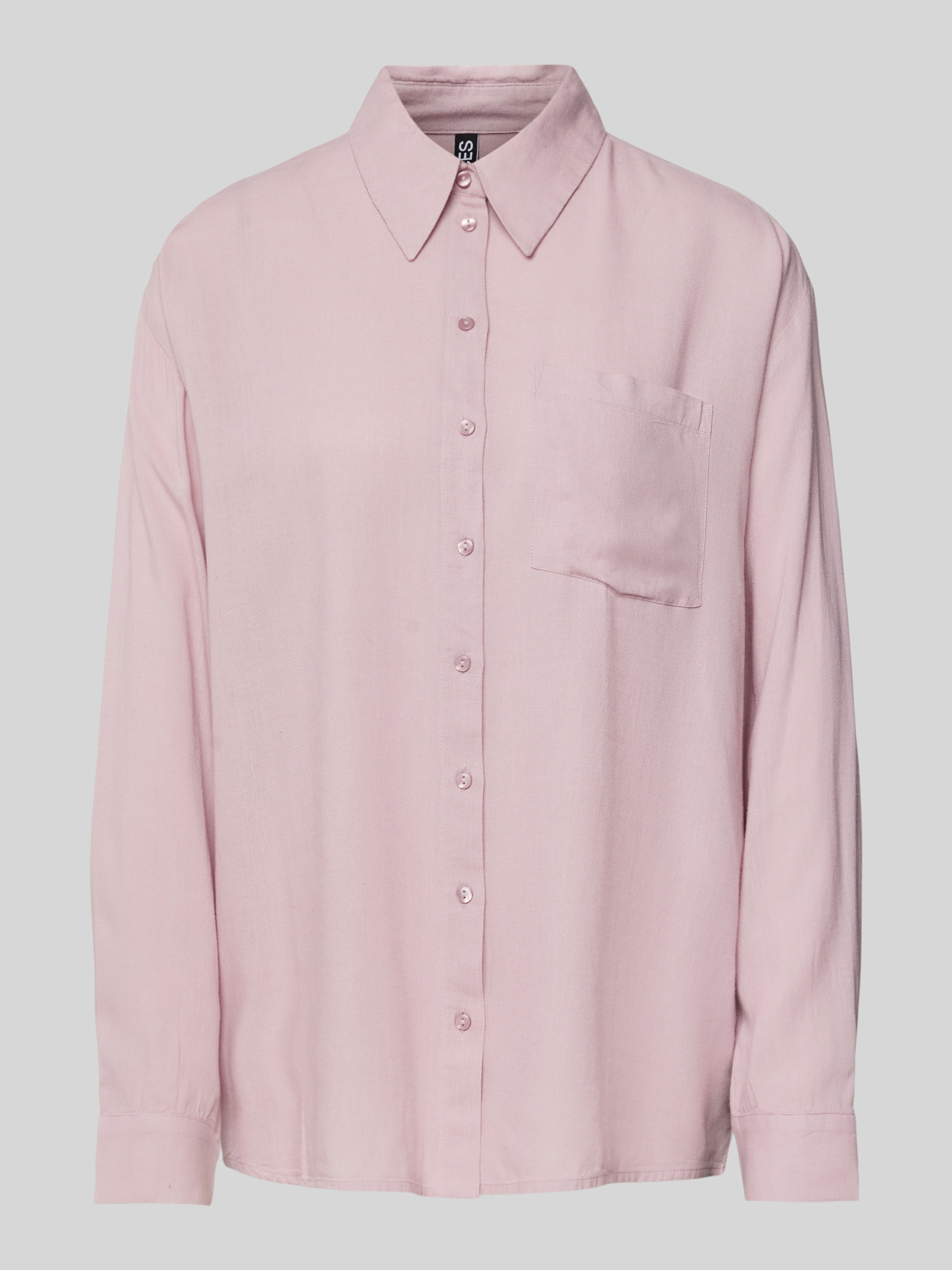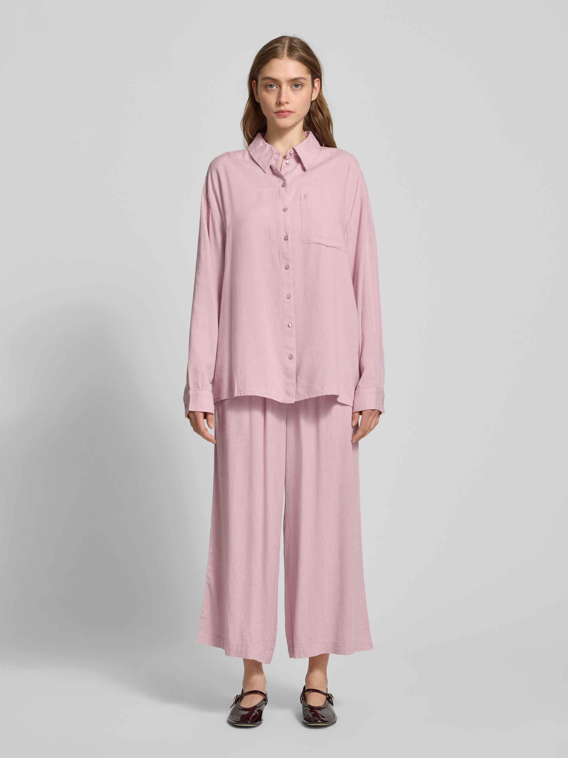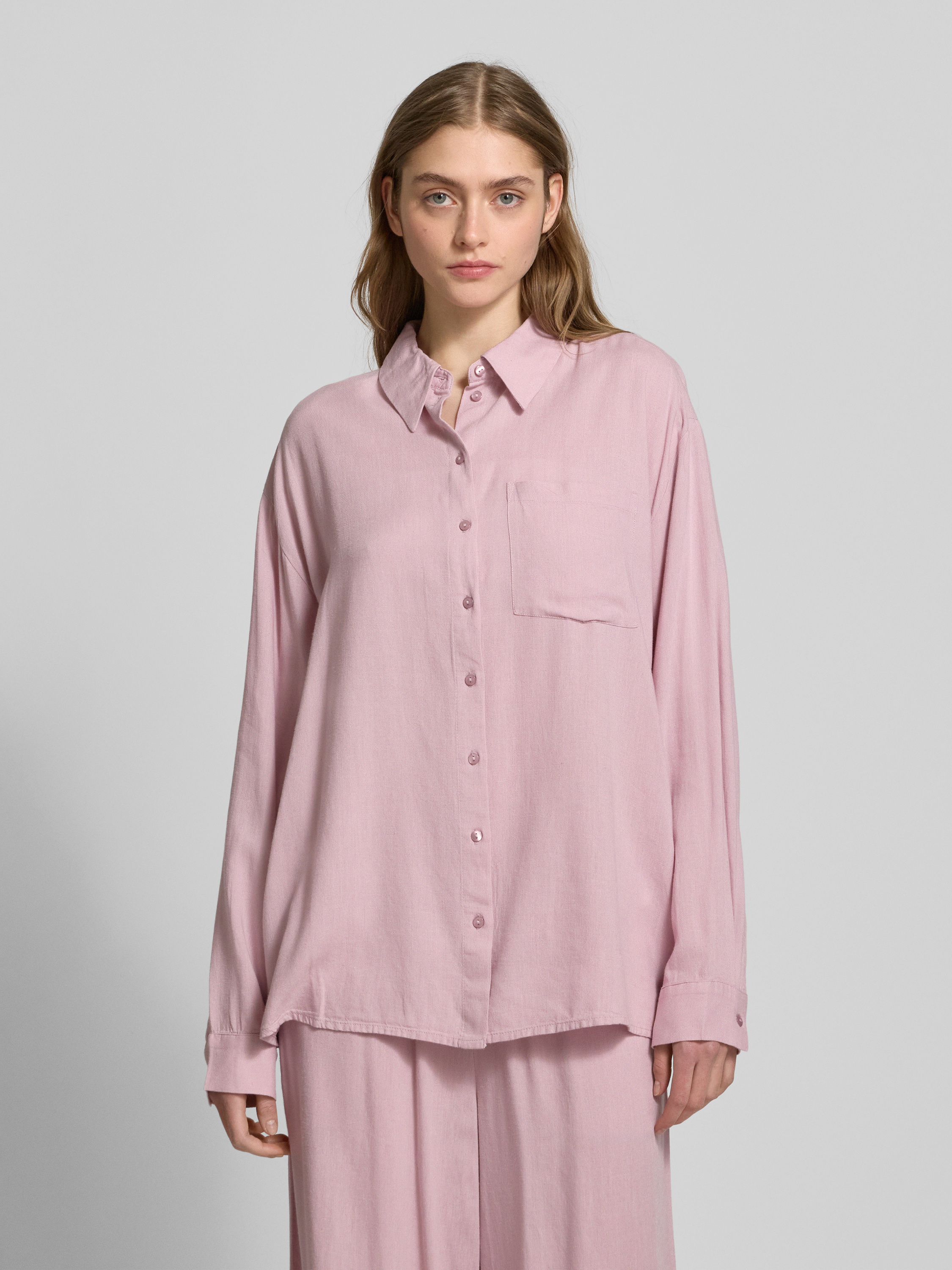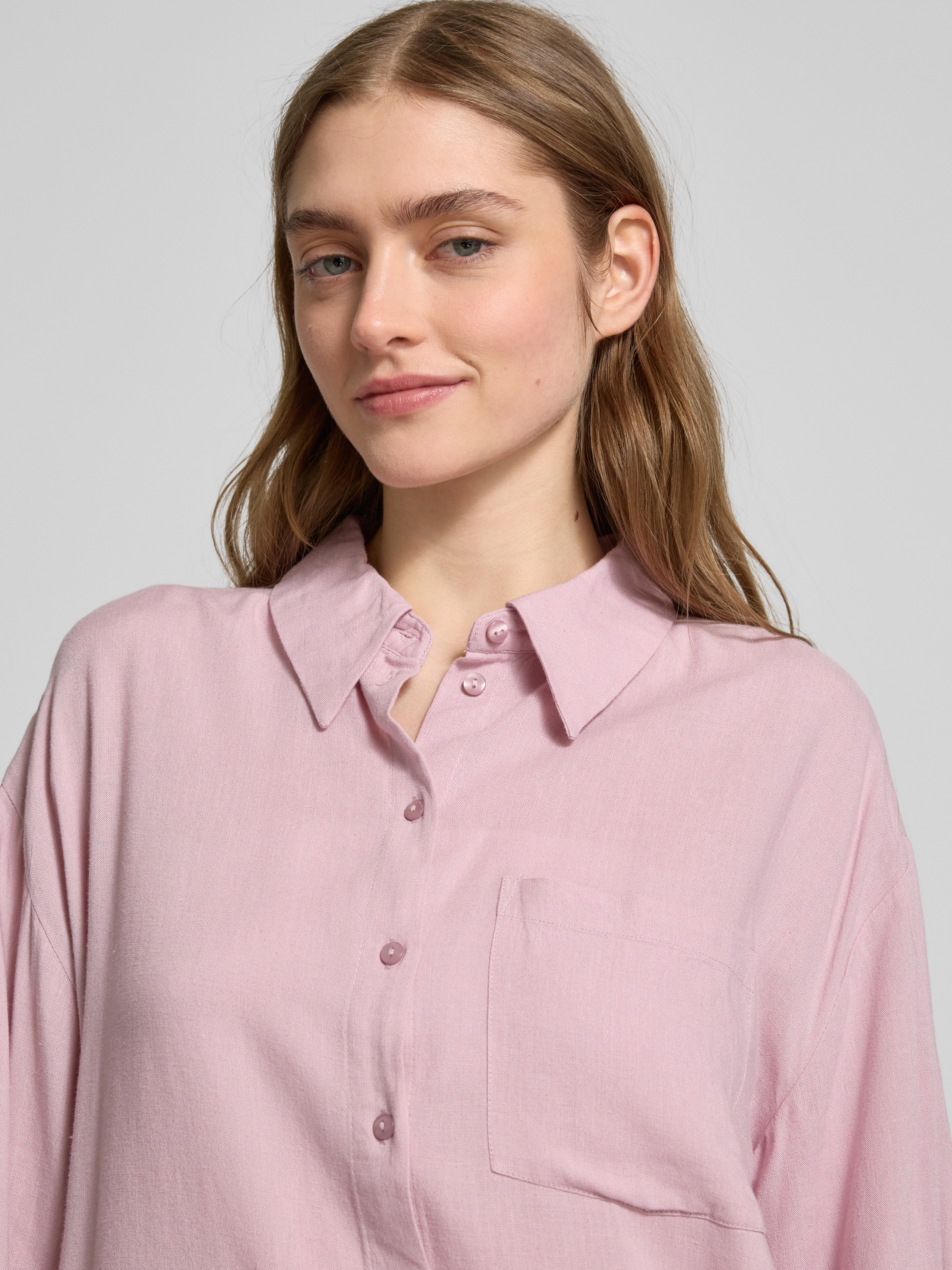 Relaxed fit overhemdblouse in een mix van viscose en linnen, model 'PIA' in roze