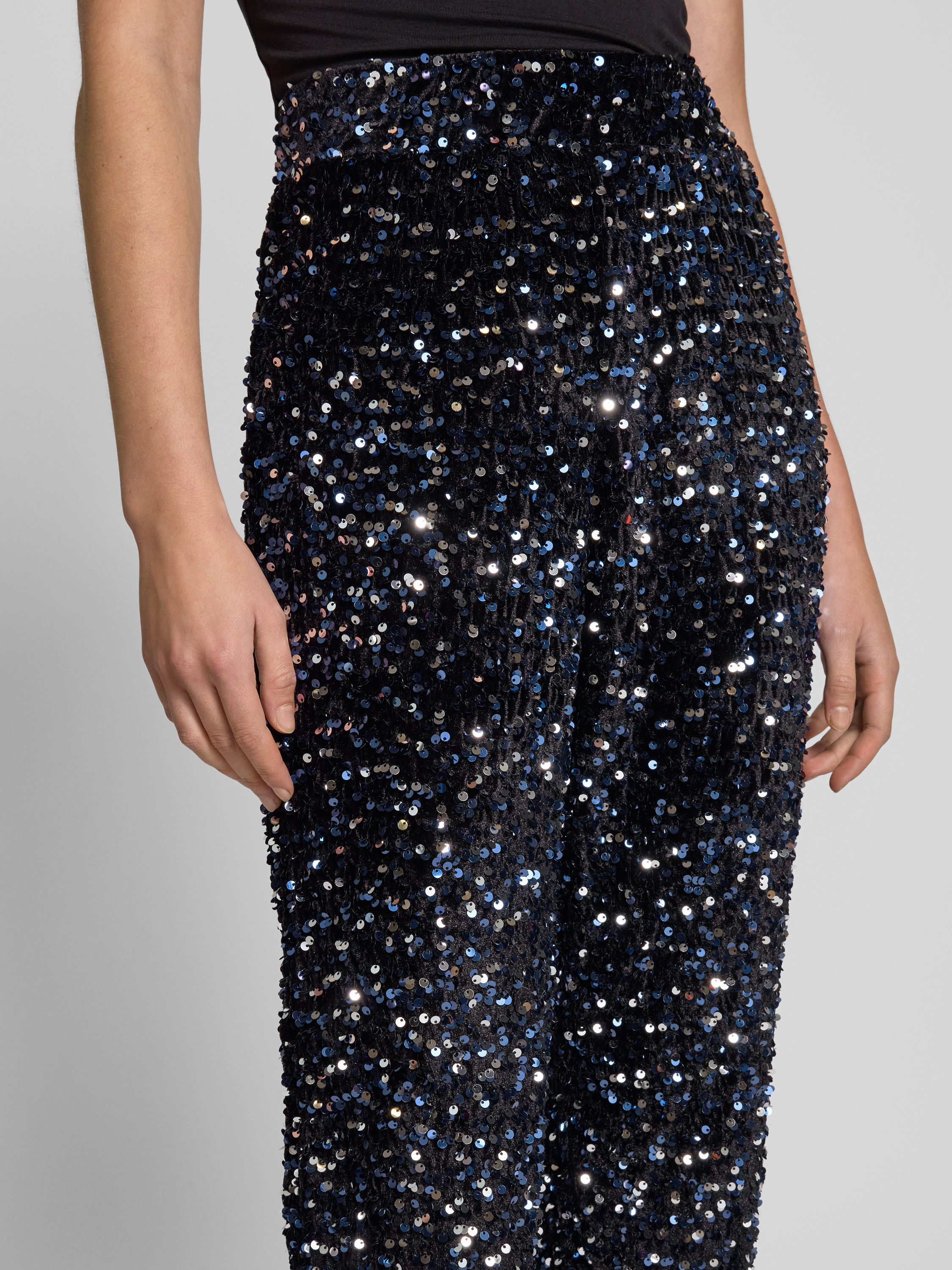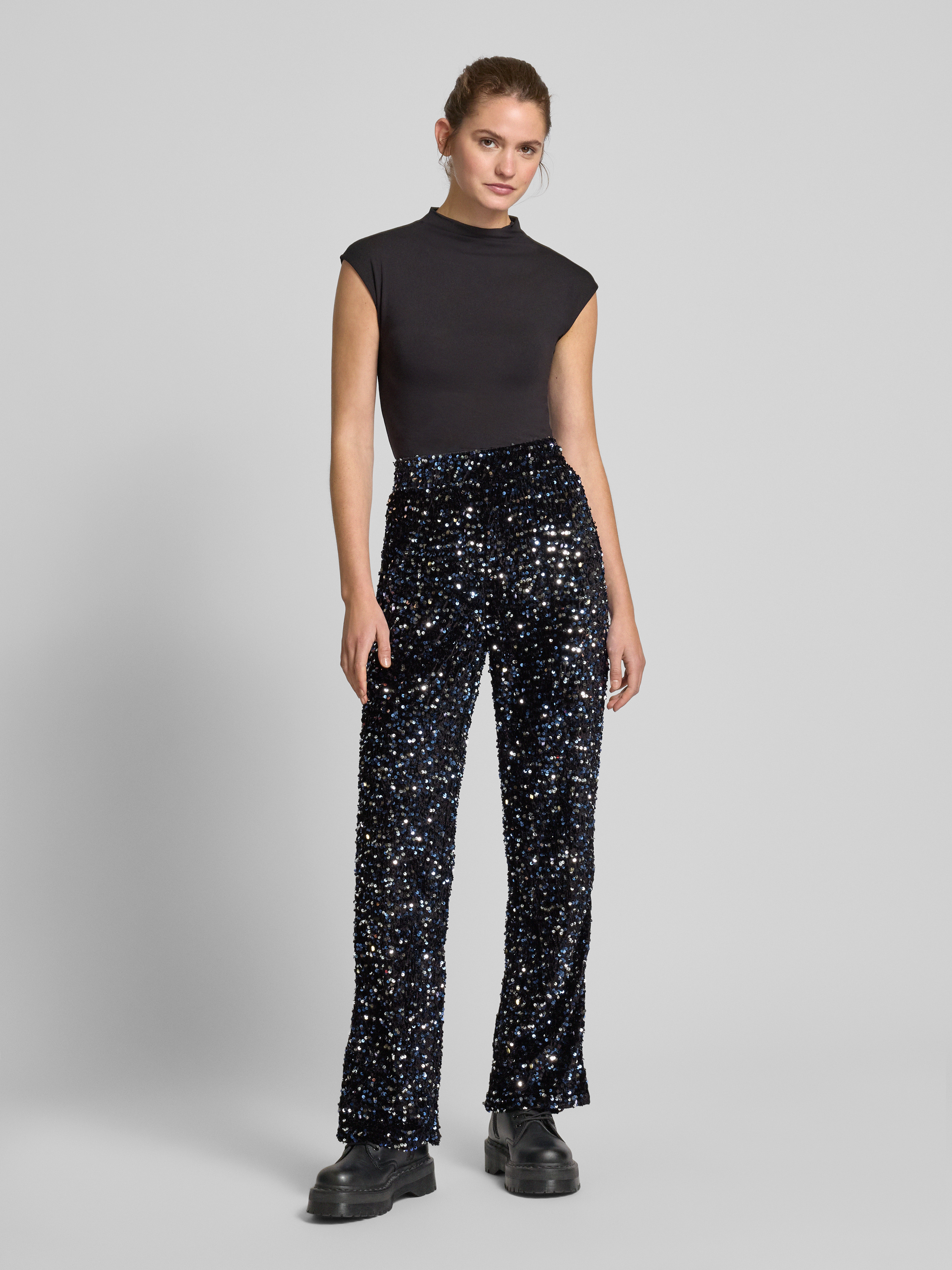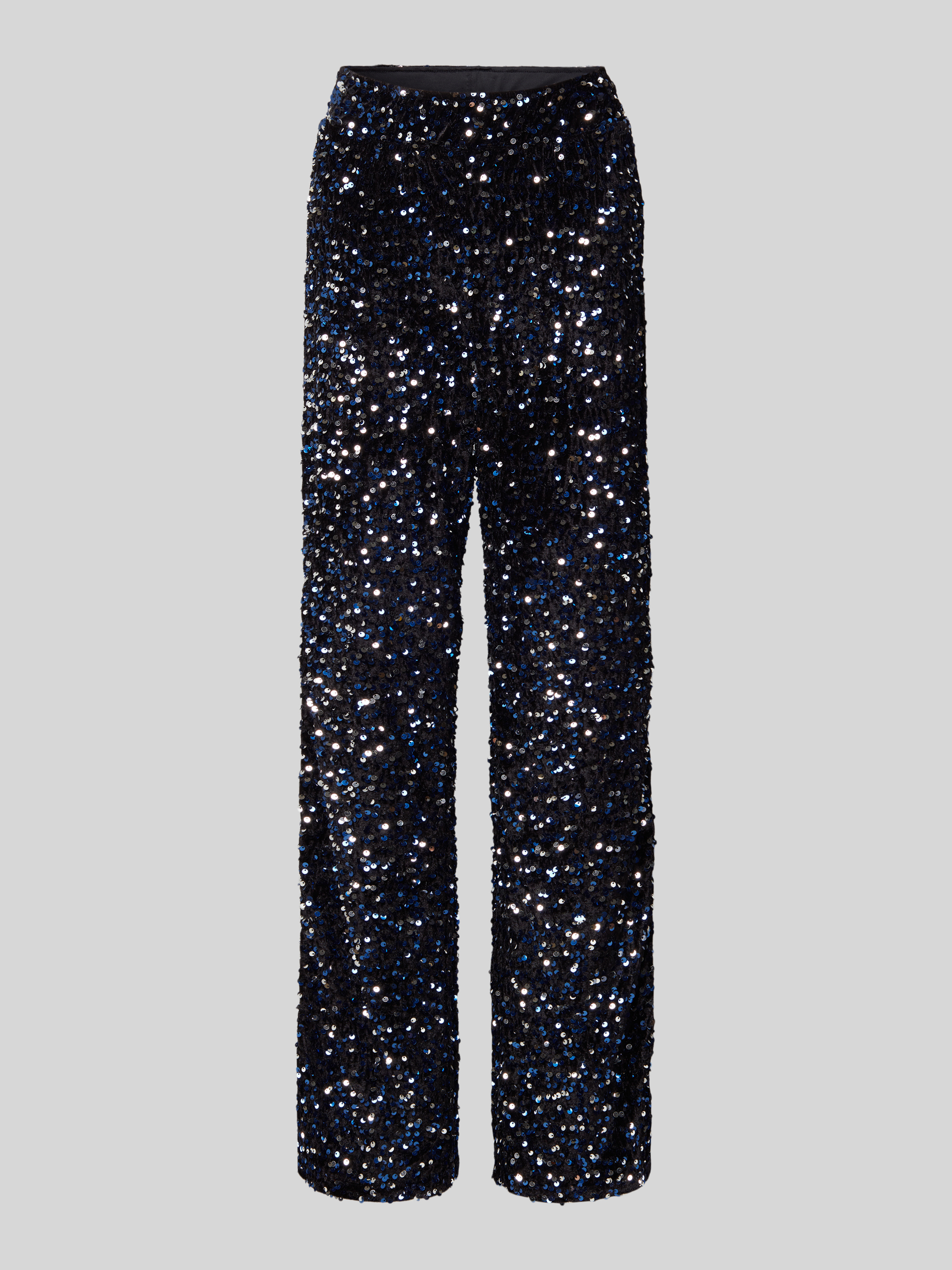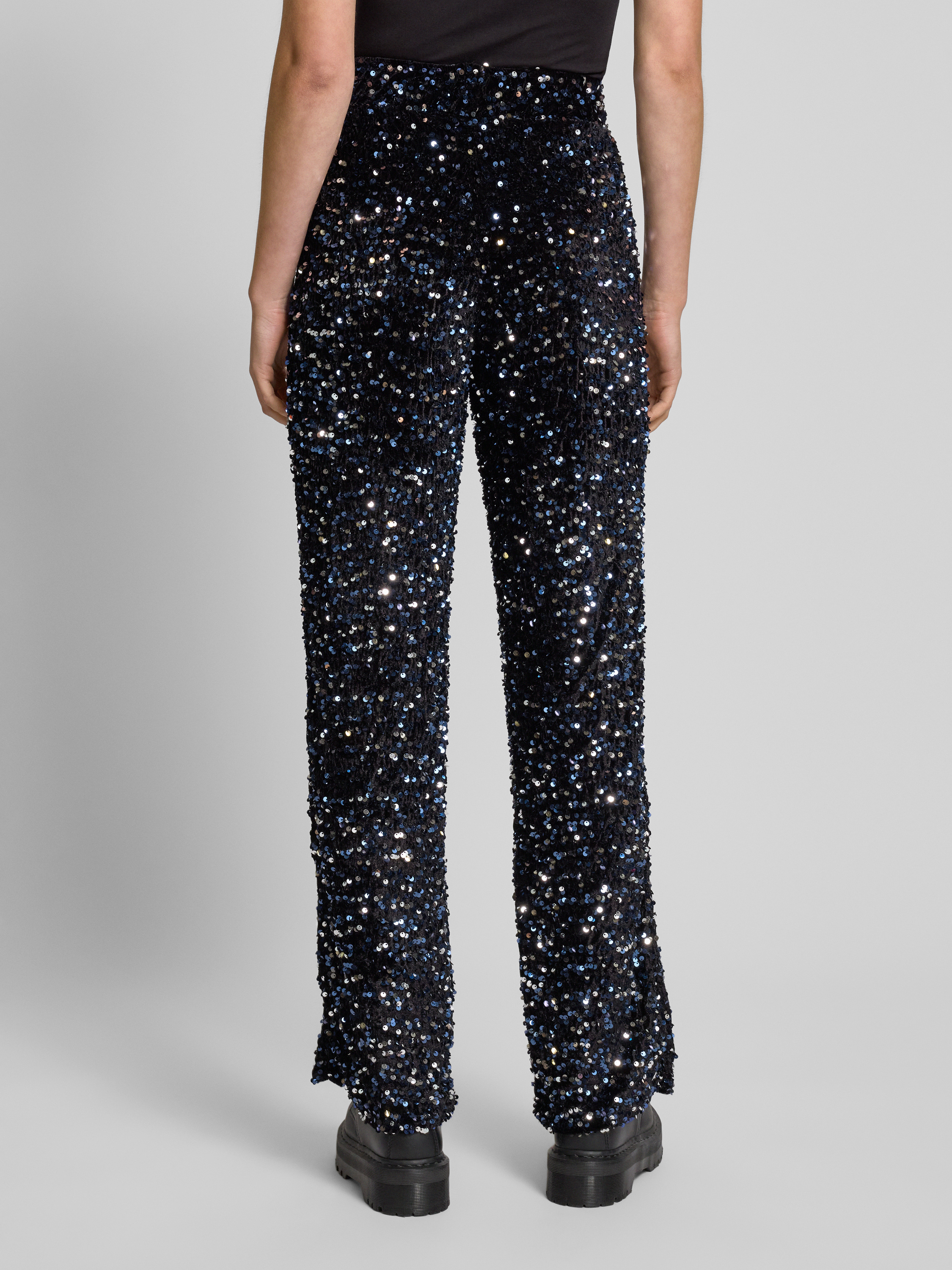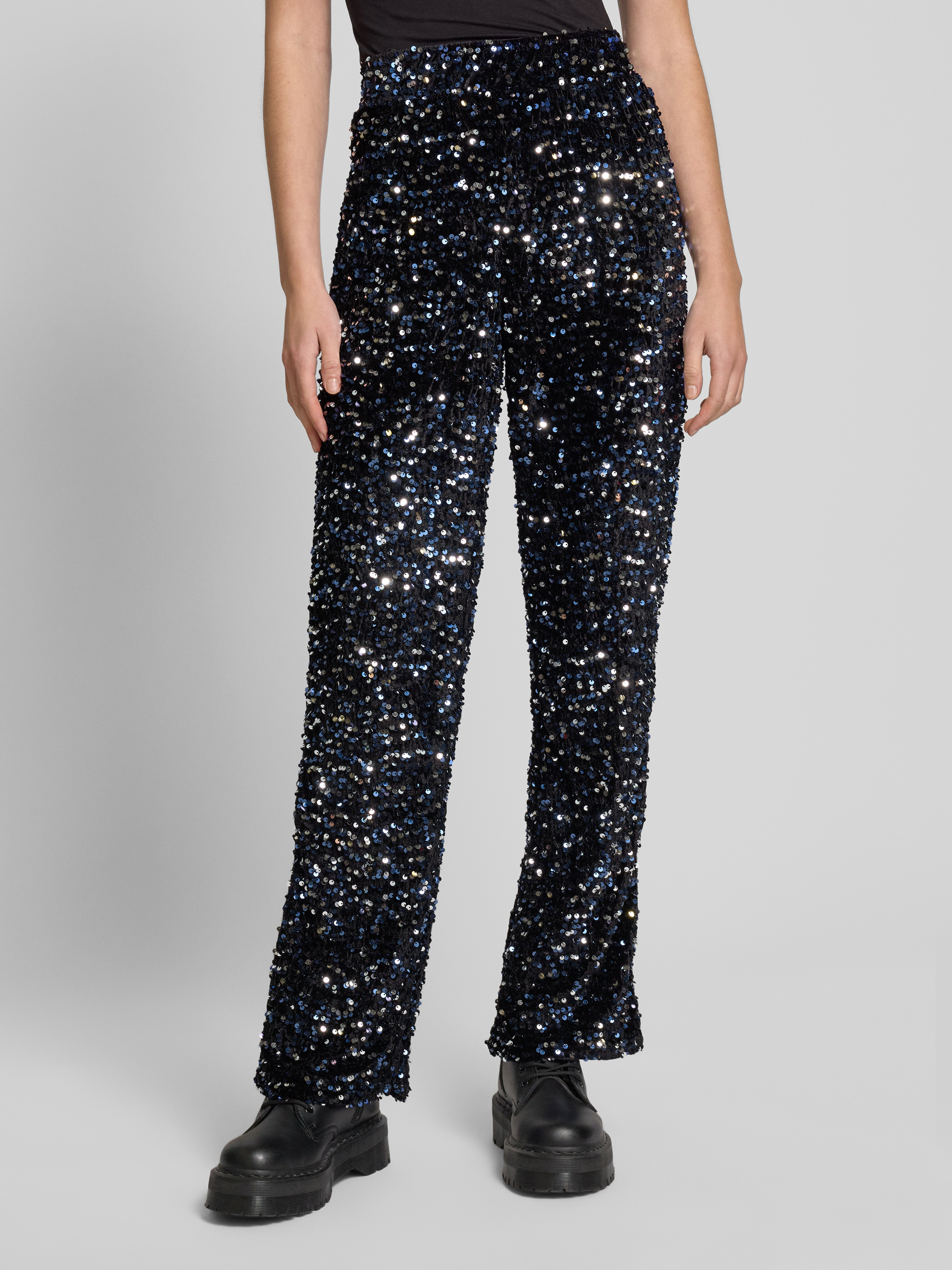 Relaxed fit wijde broek met pailletten, model 'KAM' in zwart