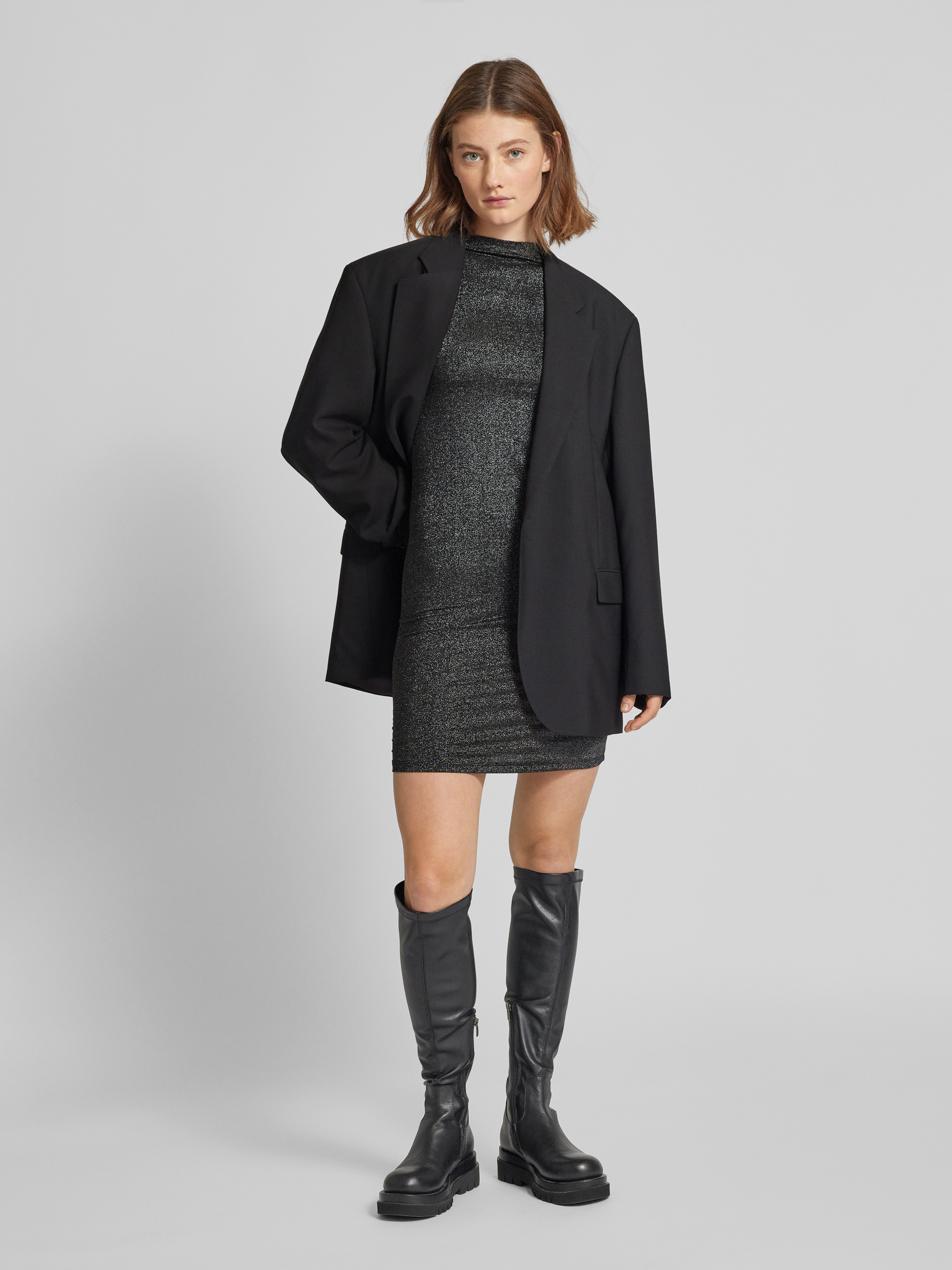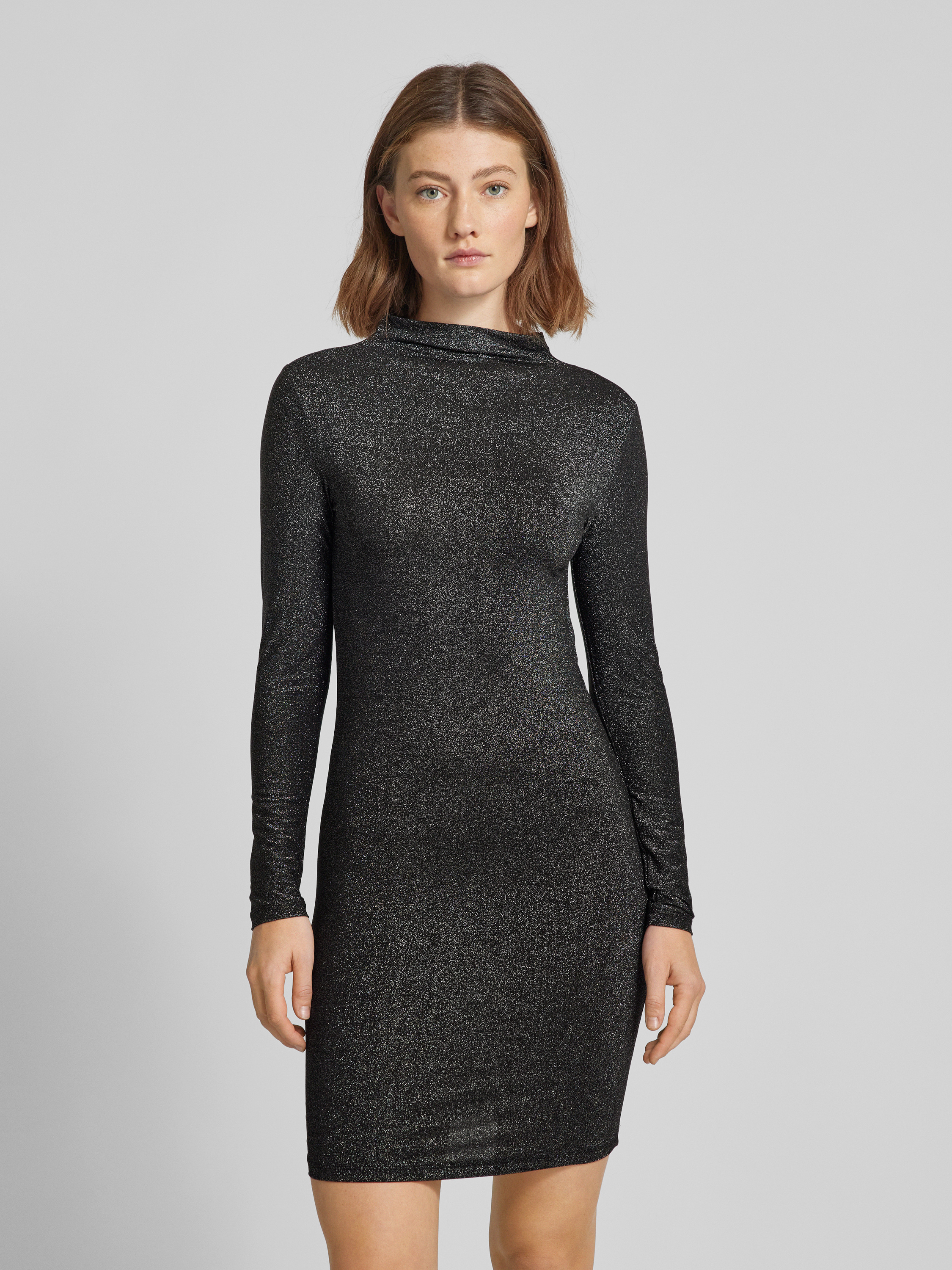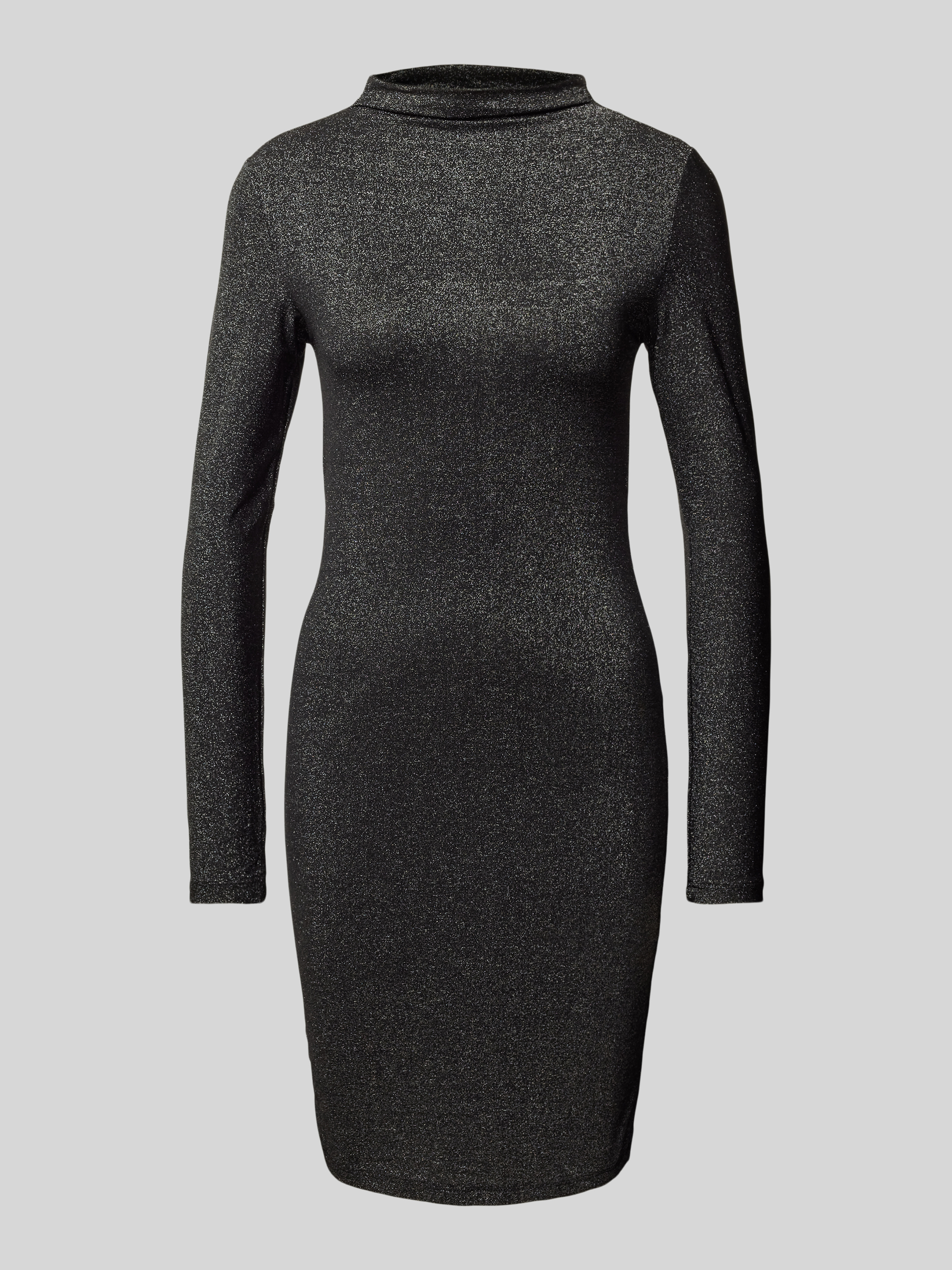 Slim fit bodycon jurk met effectgaren en korte opstaande kraag, model 'MONICA' in zwart