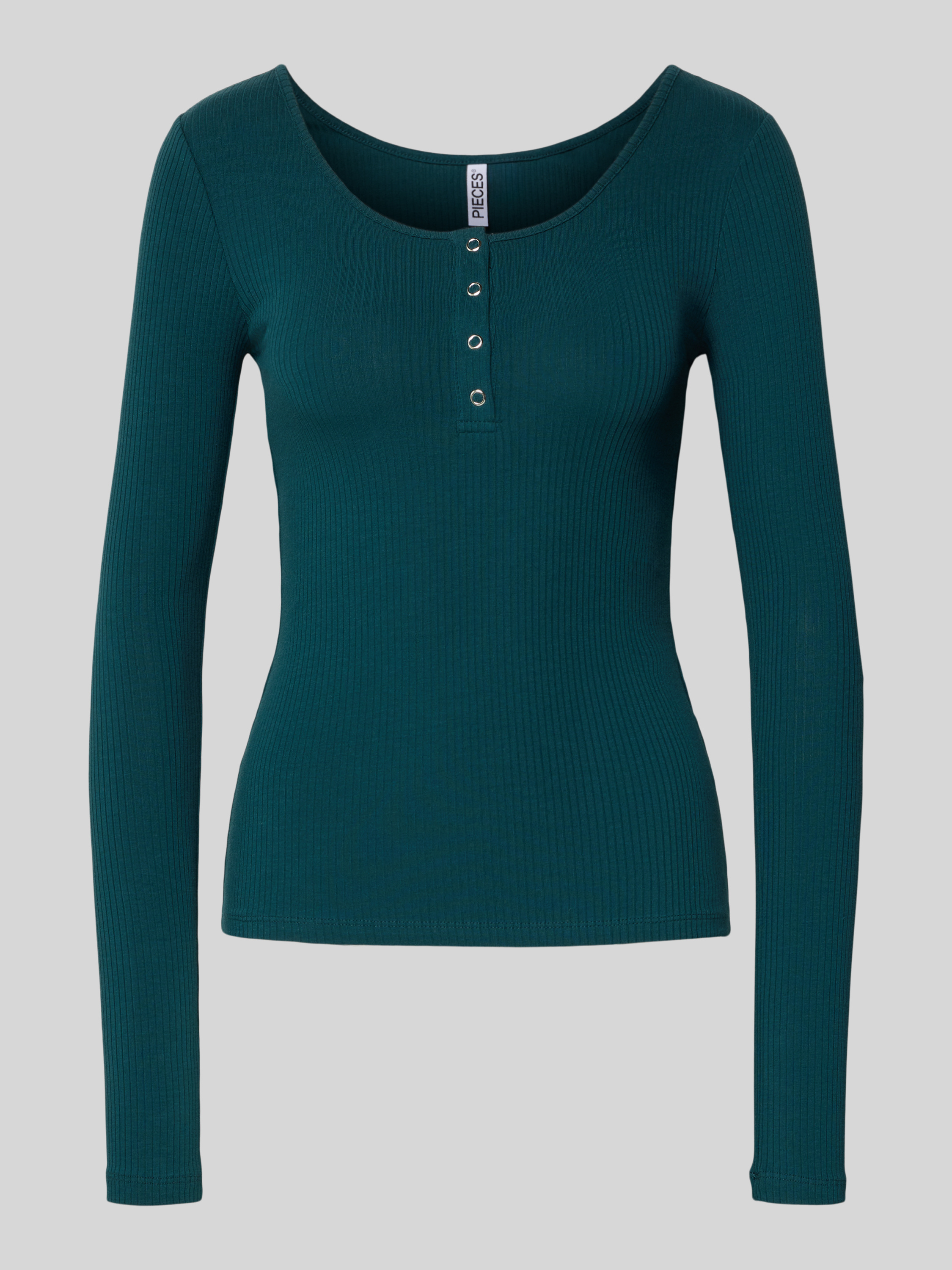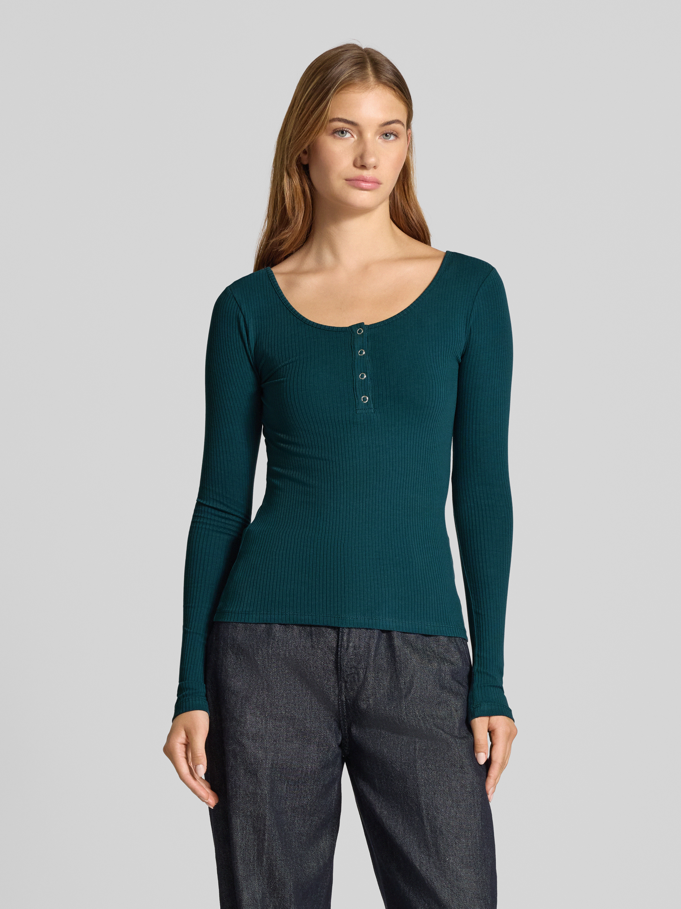 Slim fit shirt met lange mouwen van katoenmix, model 'KITTE' in donkergroen