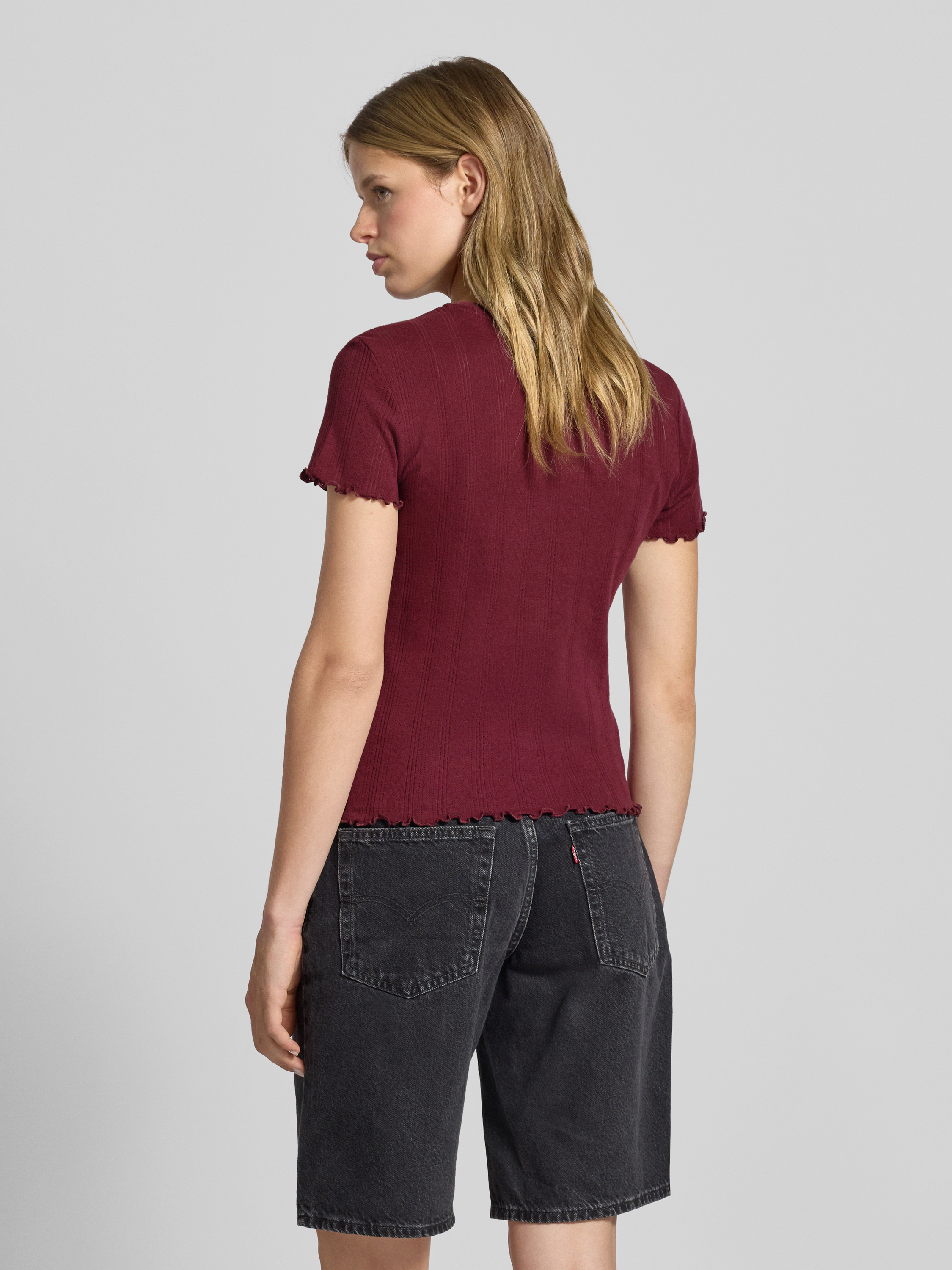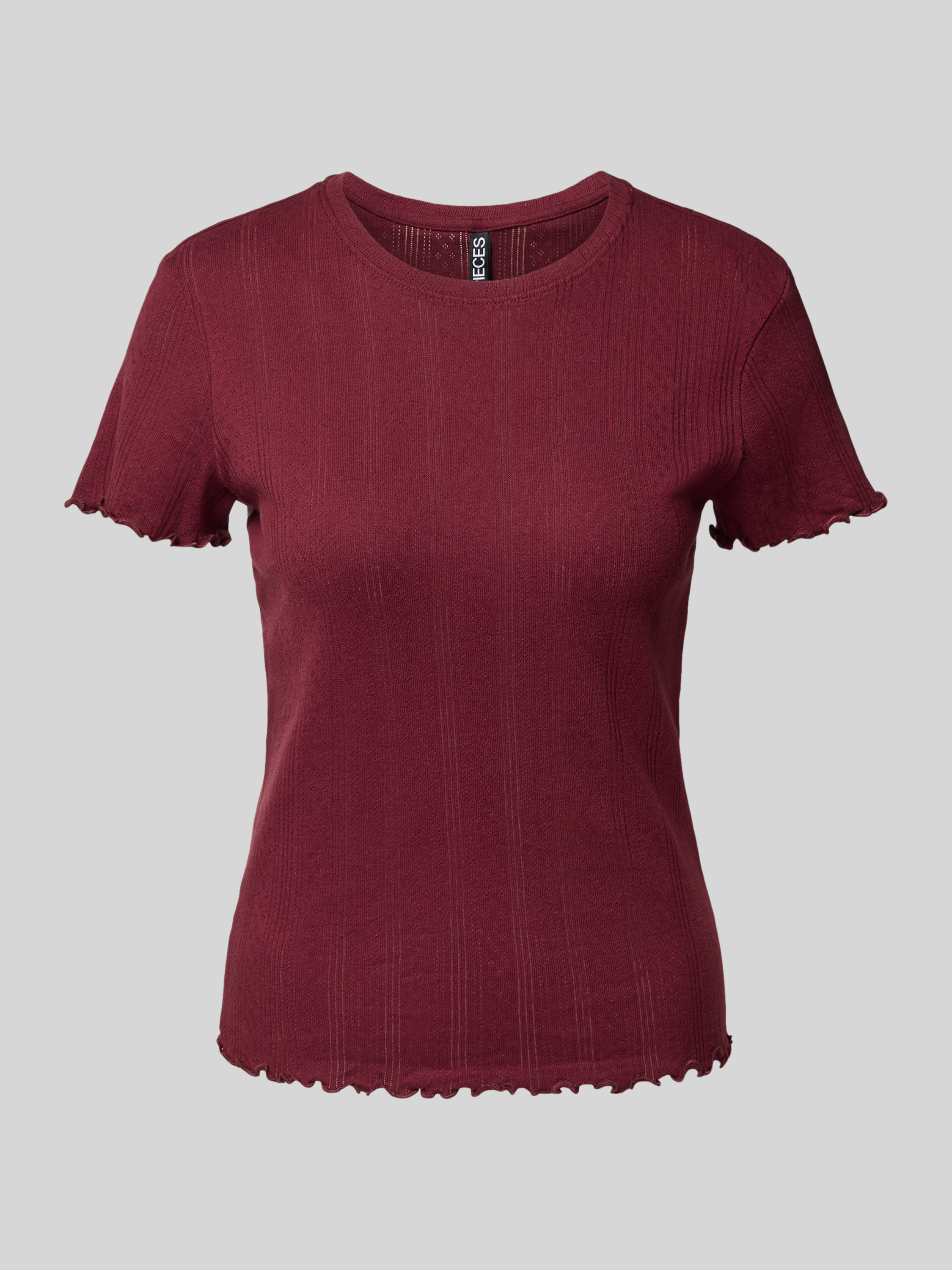 Slim fit T-shirt van puur katoen, model 'MARIE' in donkerrood
