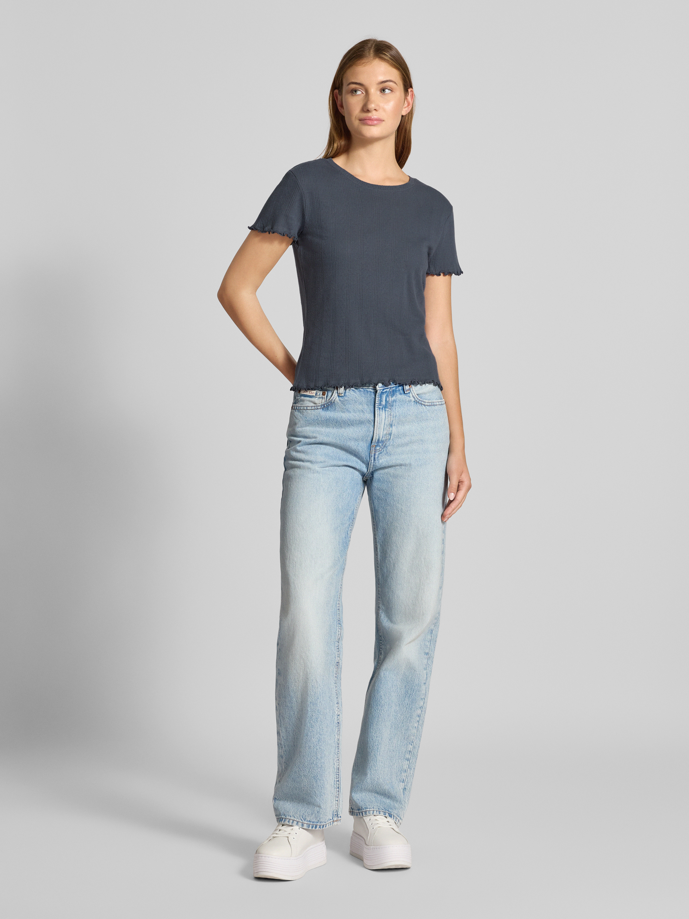 Slim fit T-shirt van puur katoen, model 'MARIE' in rookblauw