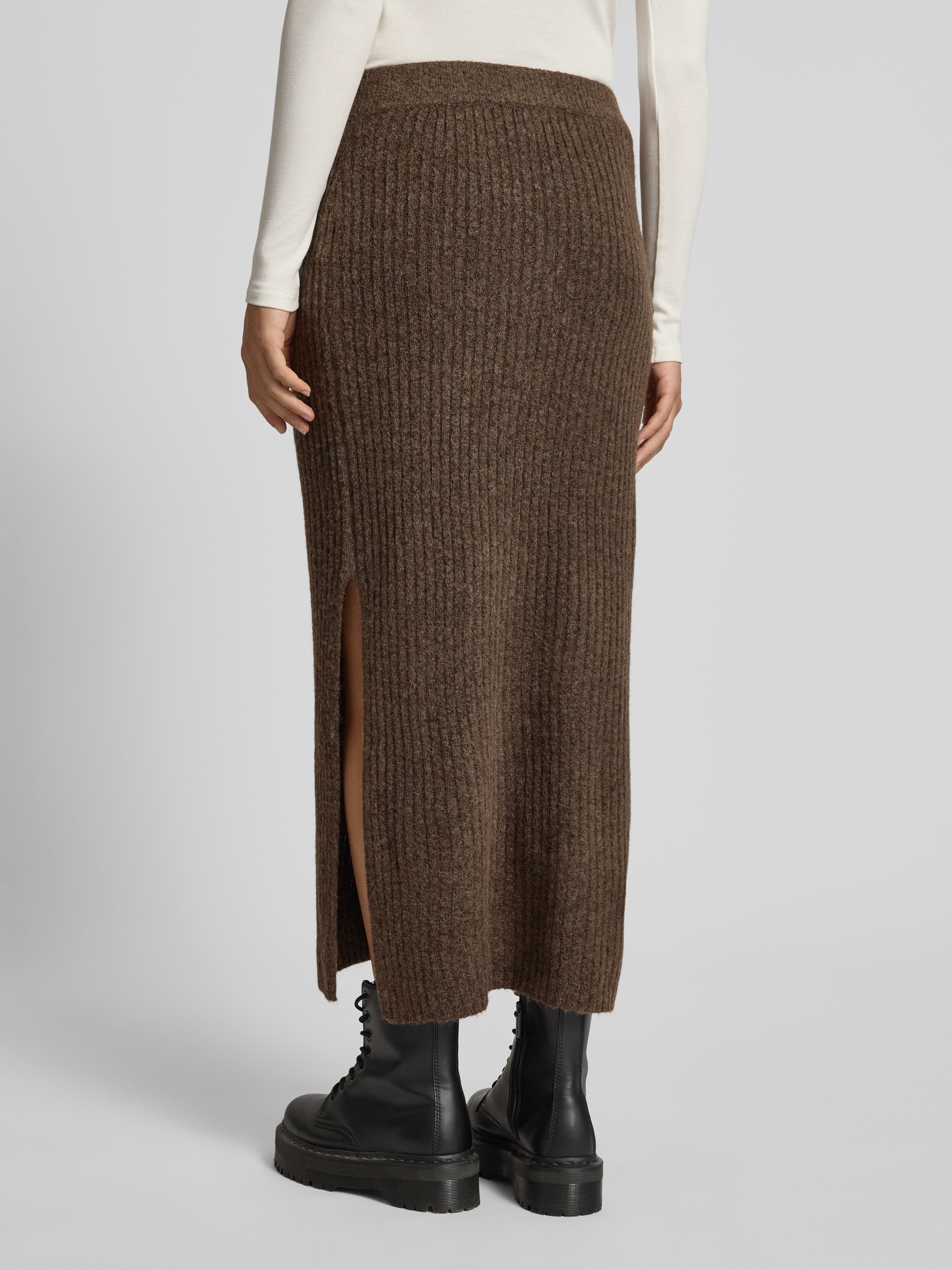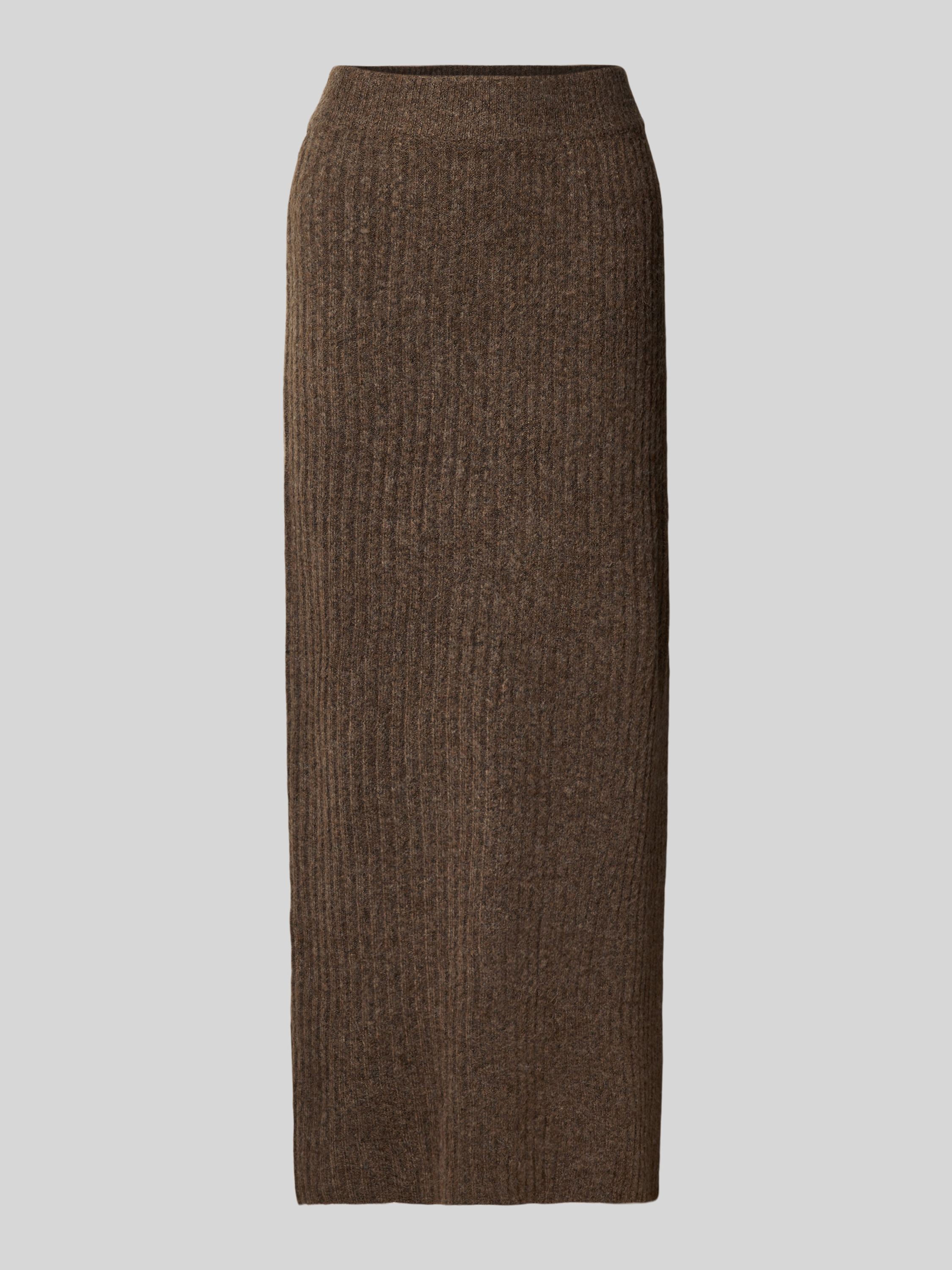 Smalle midirok met elastische band, model 'TULLE' in donkerbruin