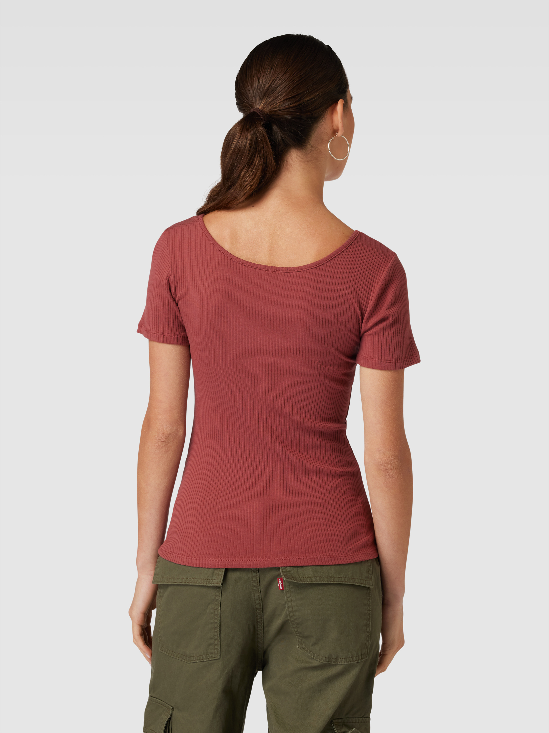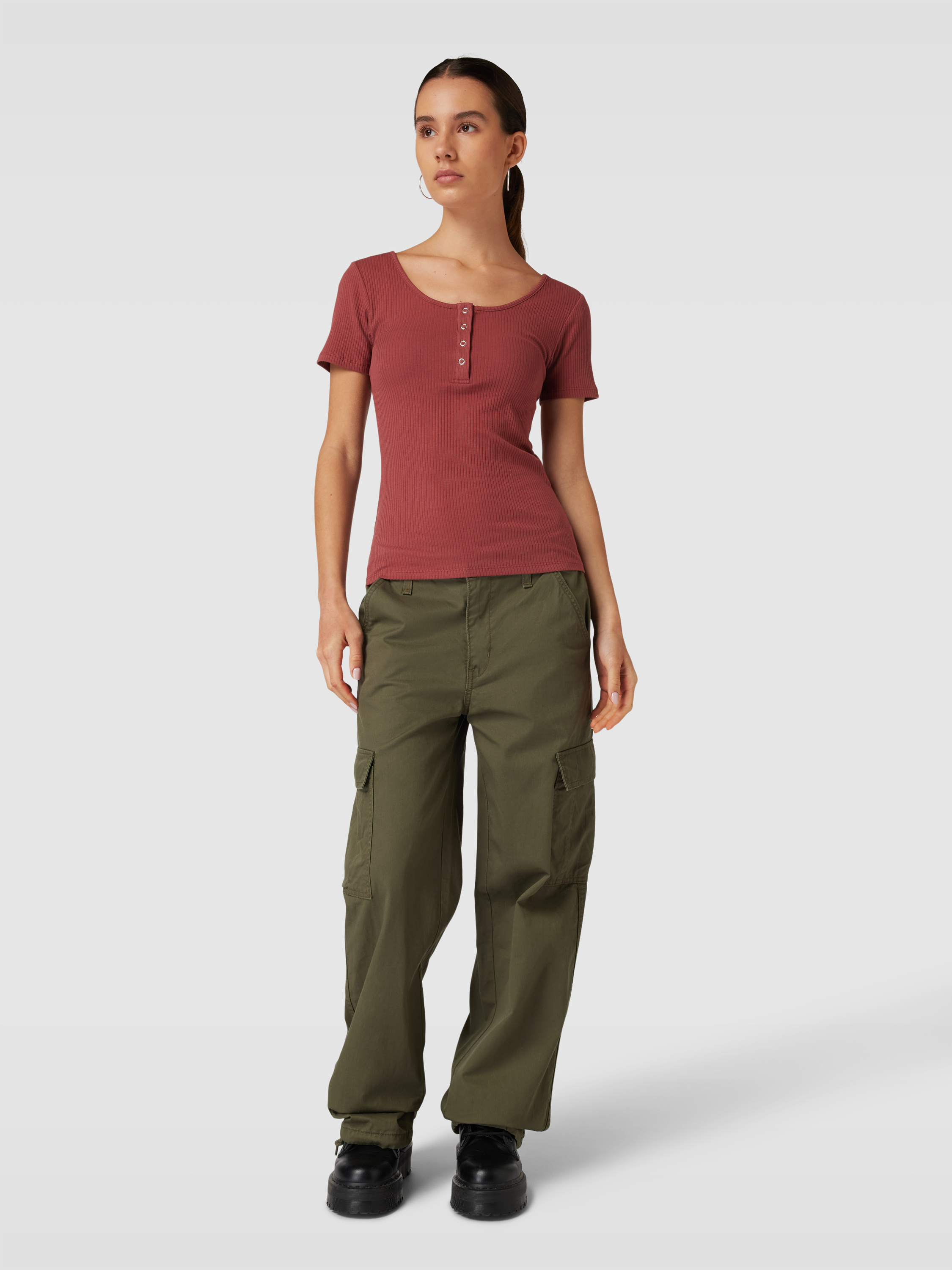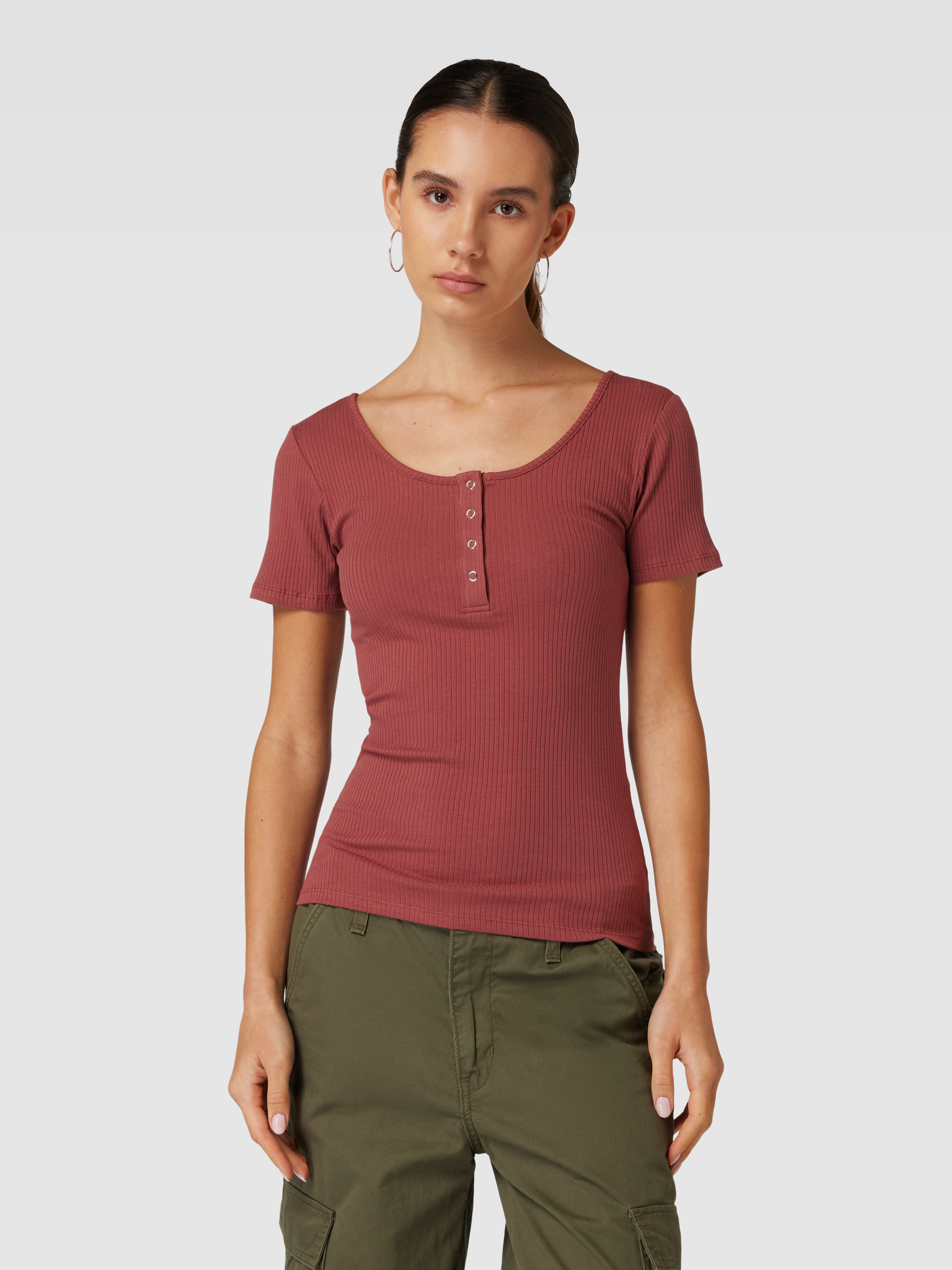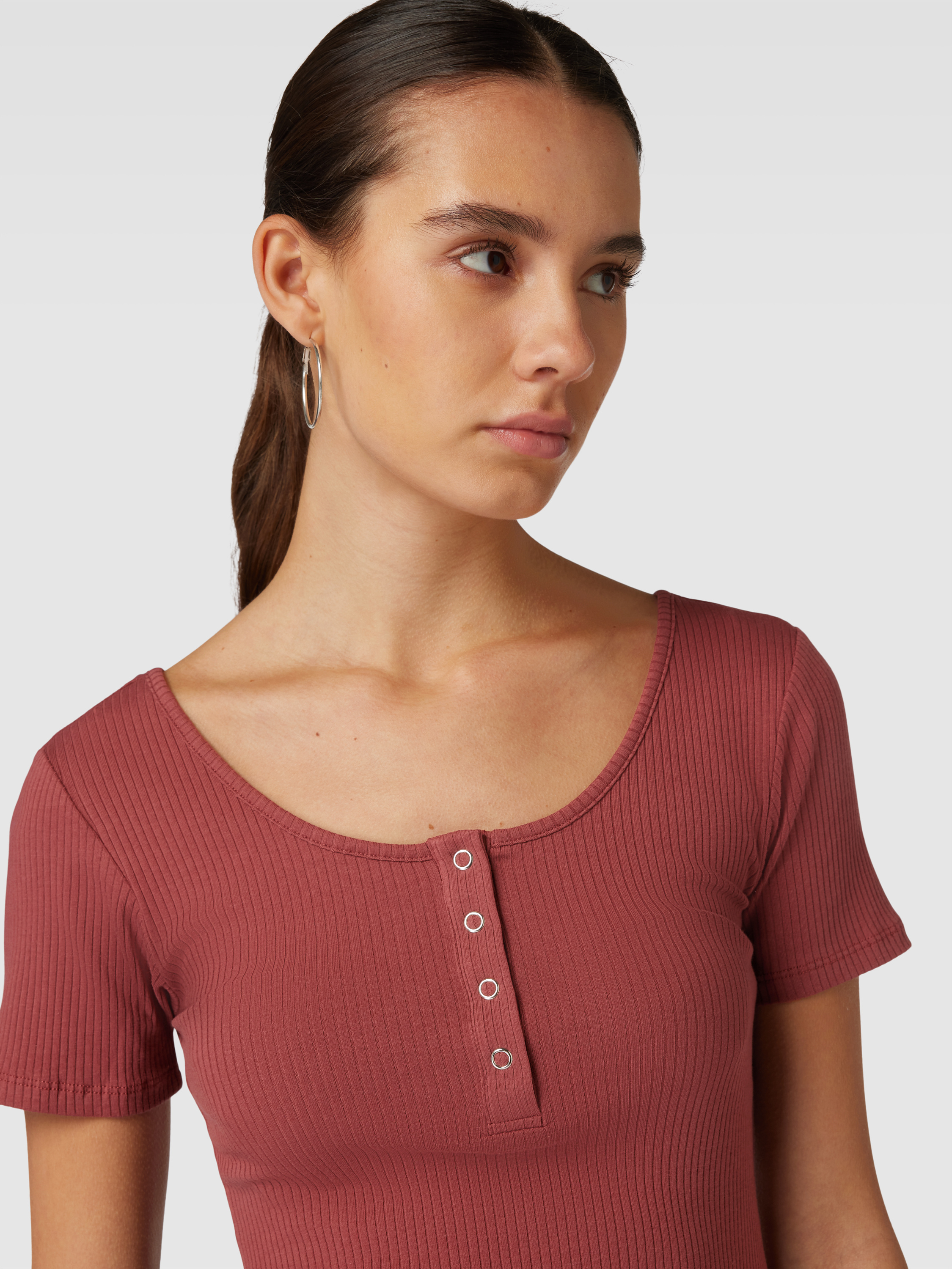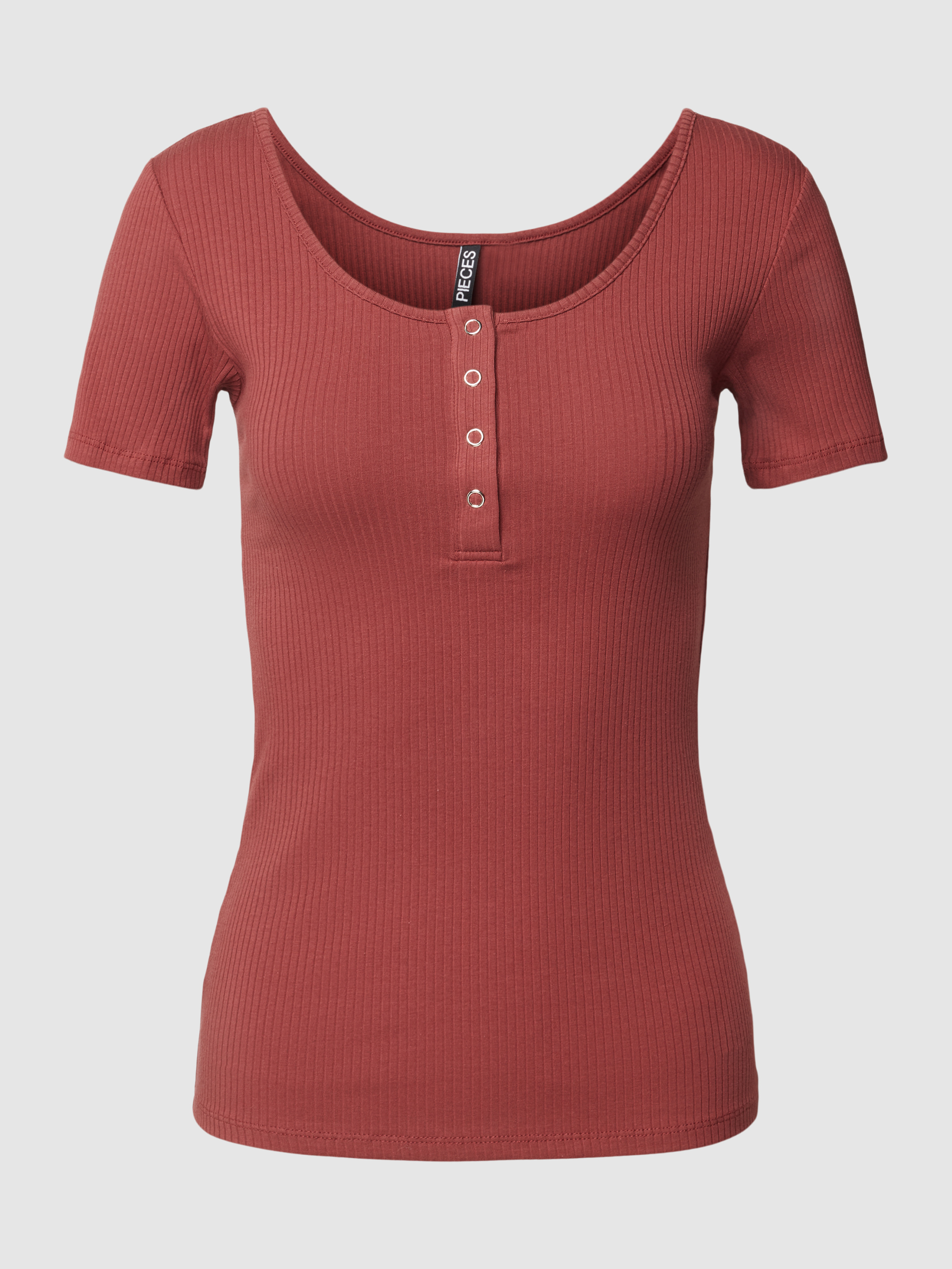 PiecesT-shirt met korte drukknoopsluiting, model 'KITTE' in roestrood