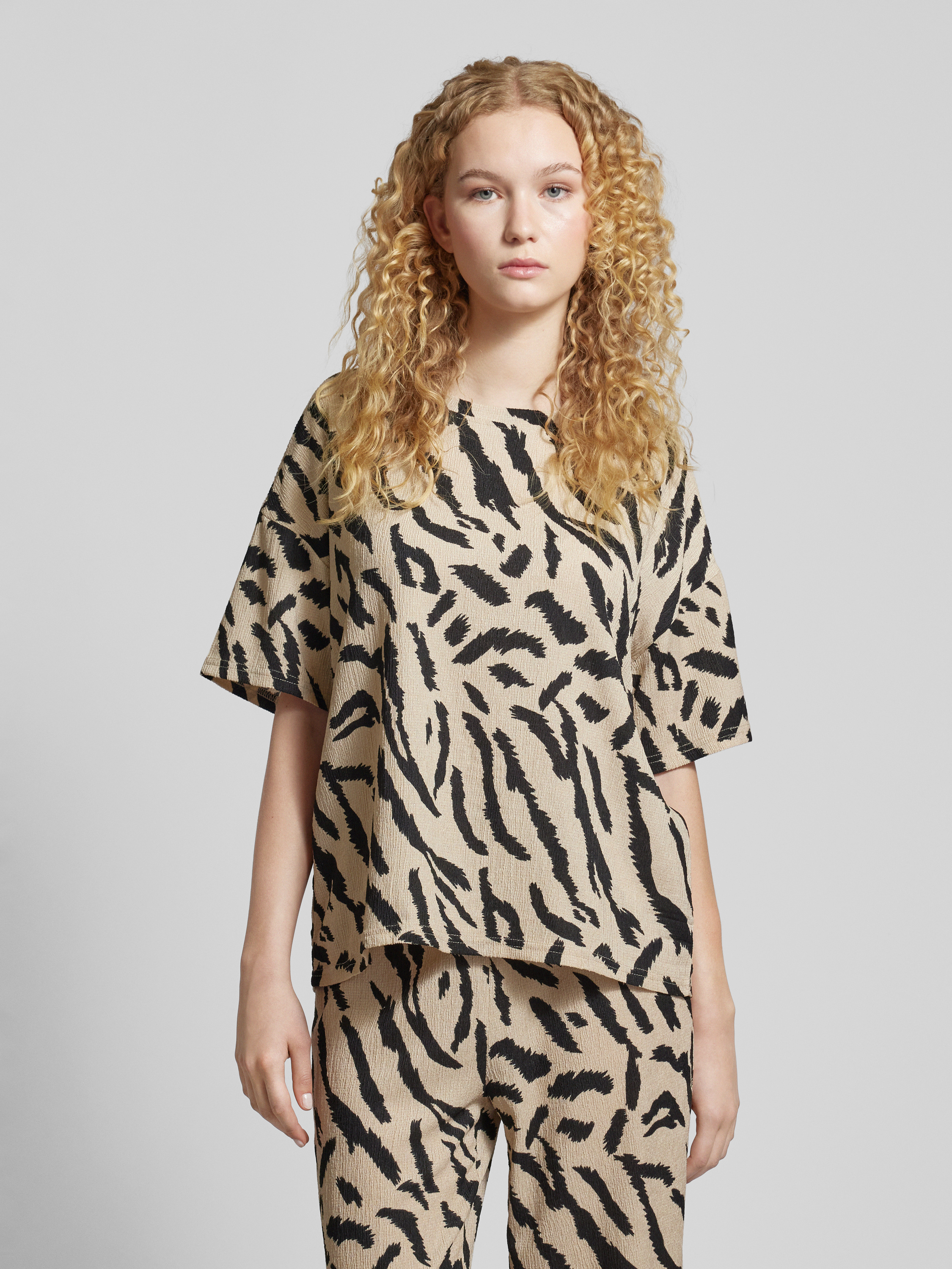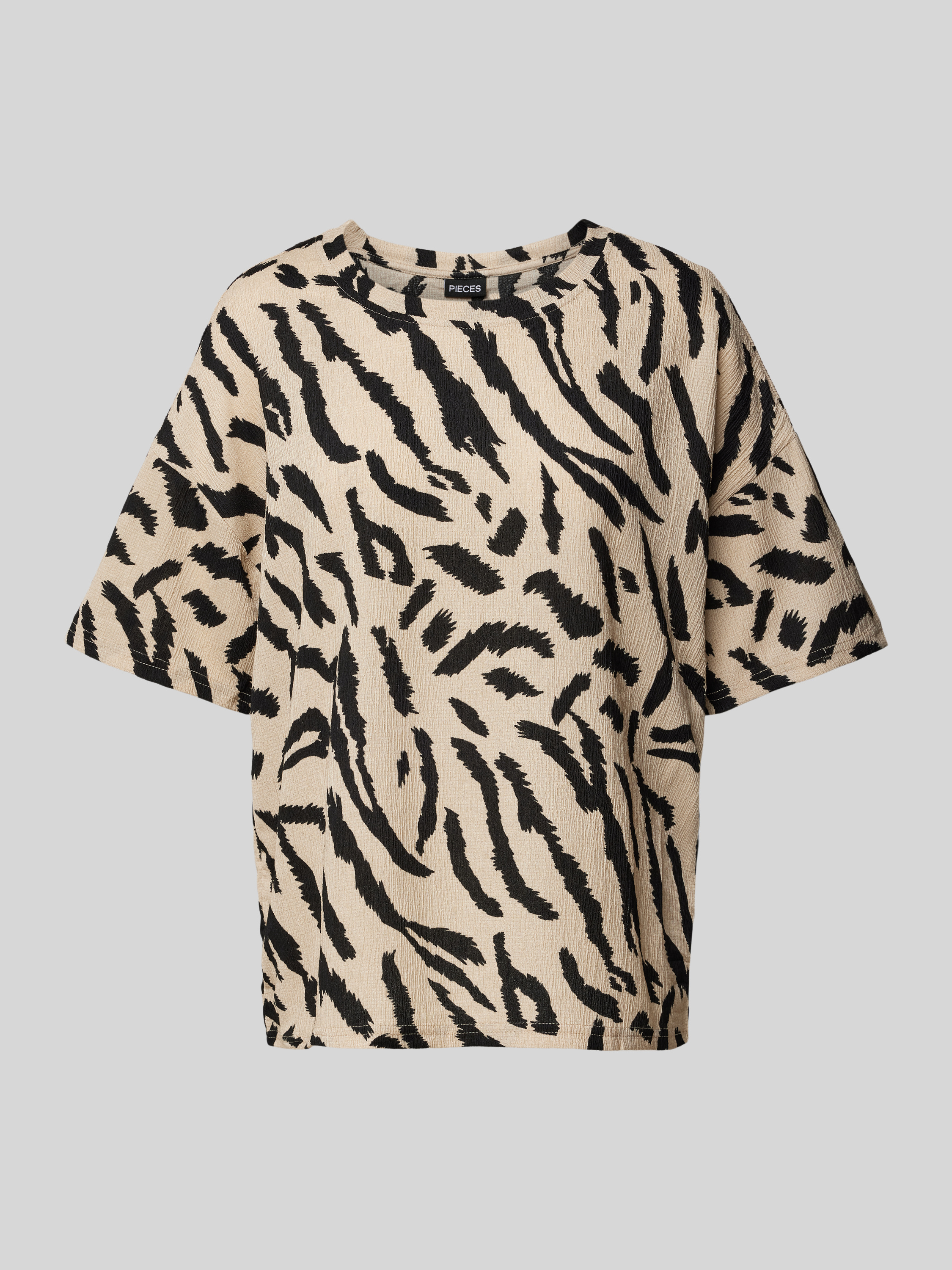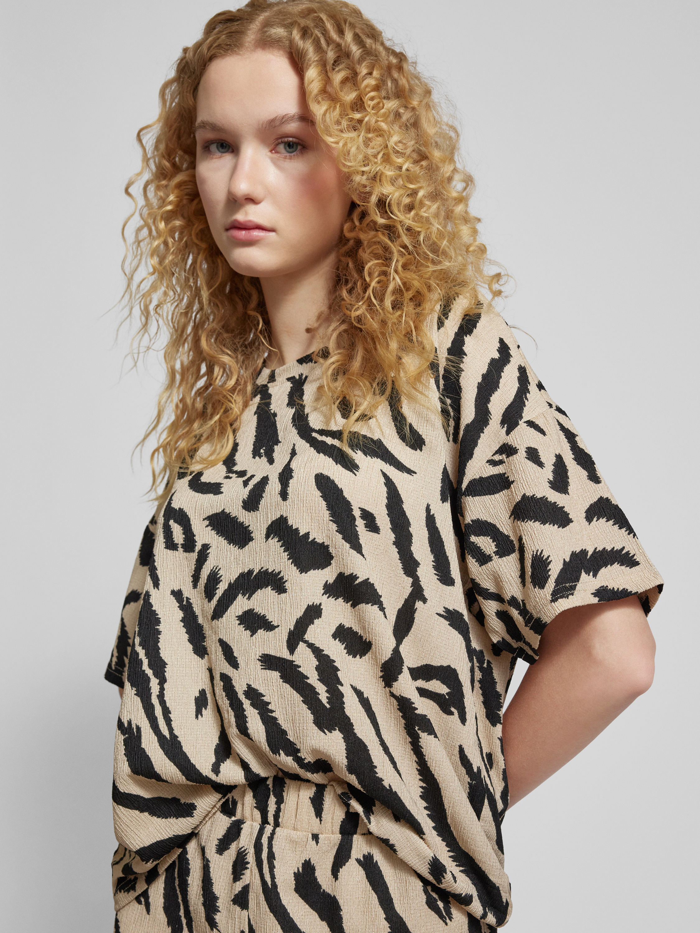 T-shirt met structuurmotief, model 'LUNA' in zand