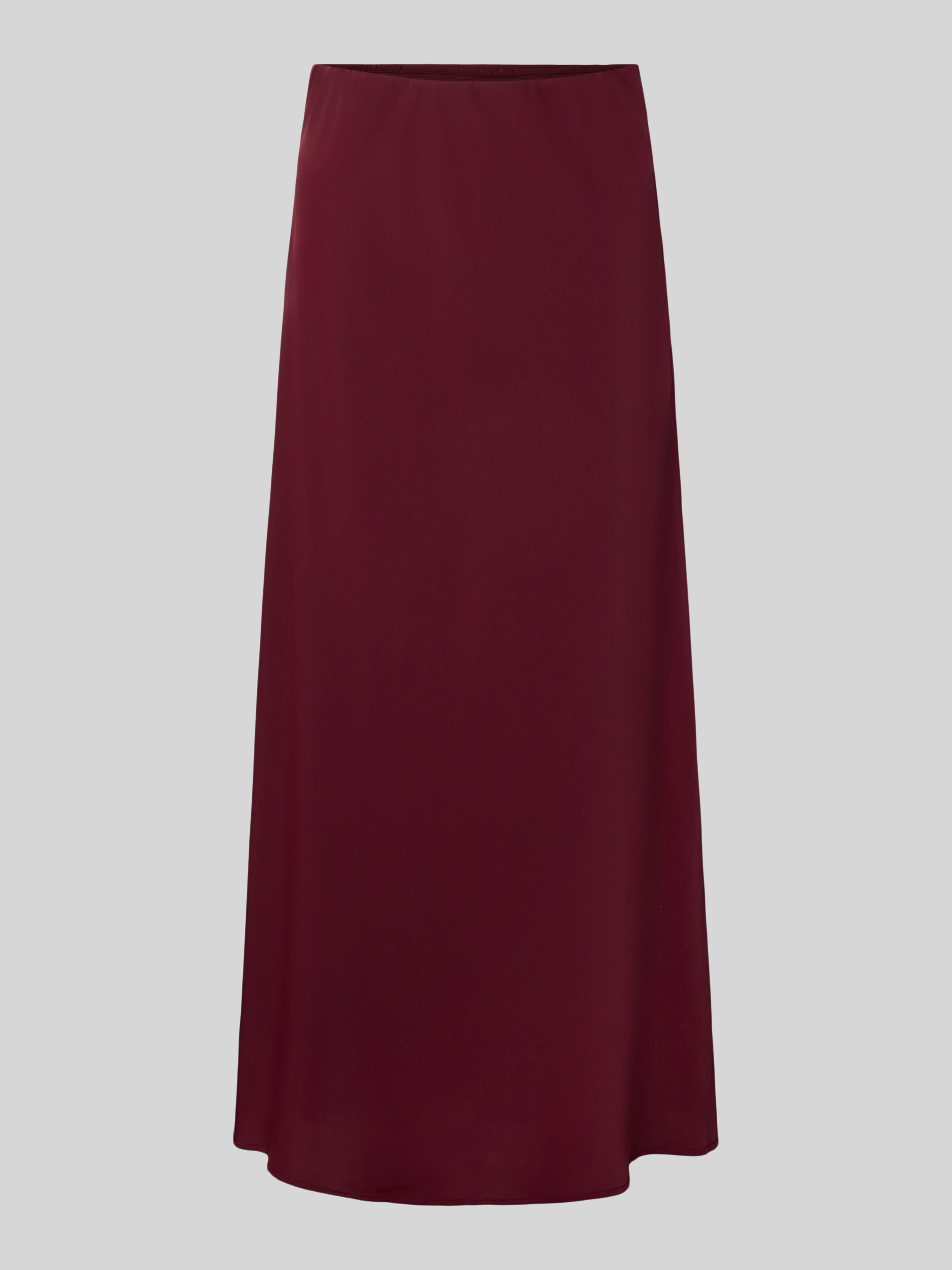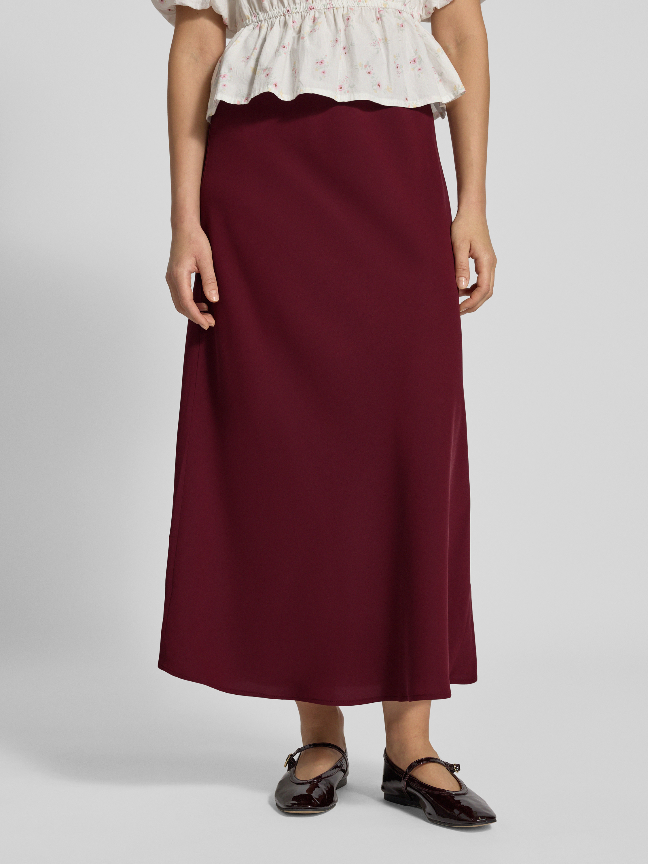 Uitlopende midirok met elastische band, model 'FRANAN' in donkerrood