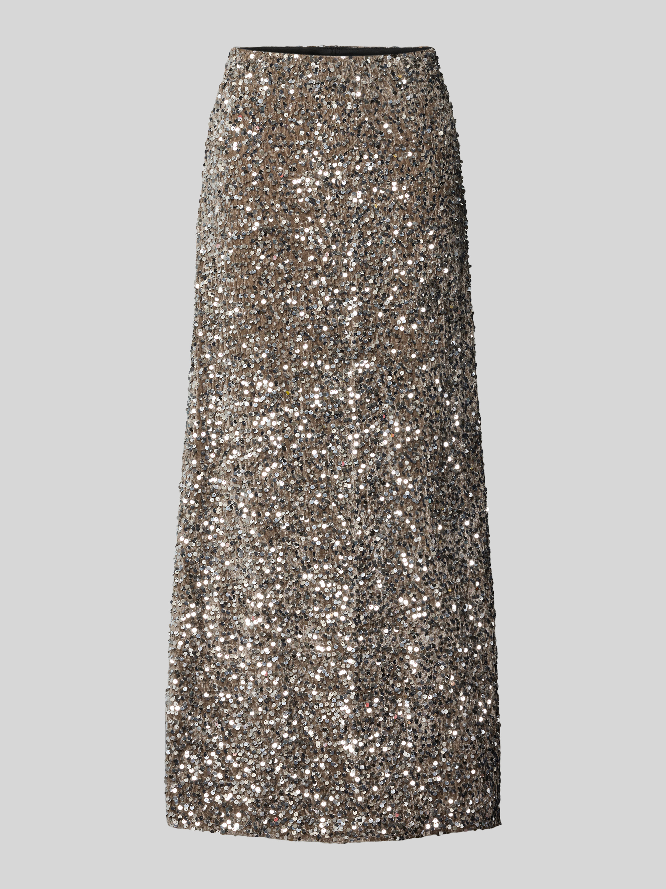Uitlopende midirok met pailletten, model 'SILVER SEQ' in antraciet