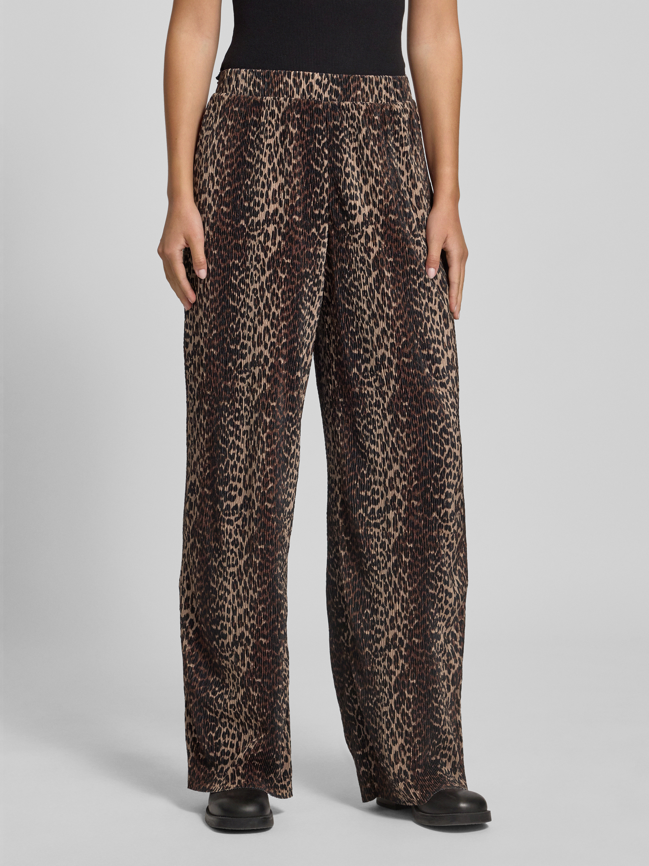 Wijde broek van crêpe afwerking, model 'FLORA' in zand