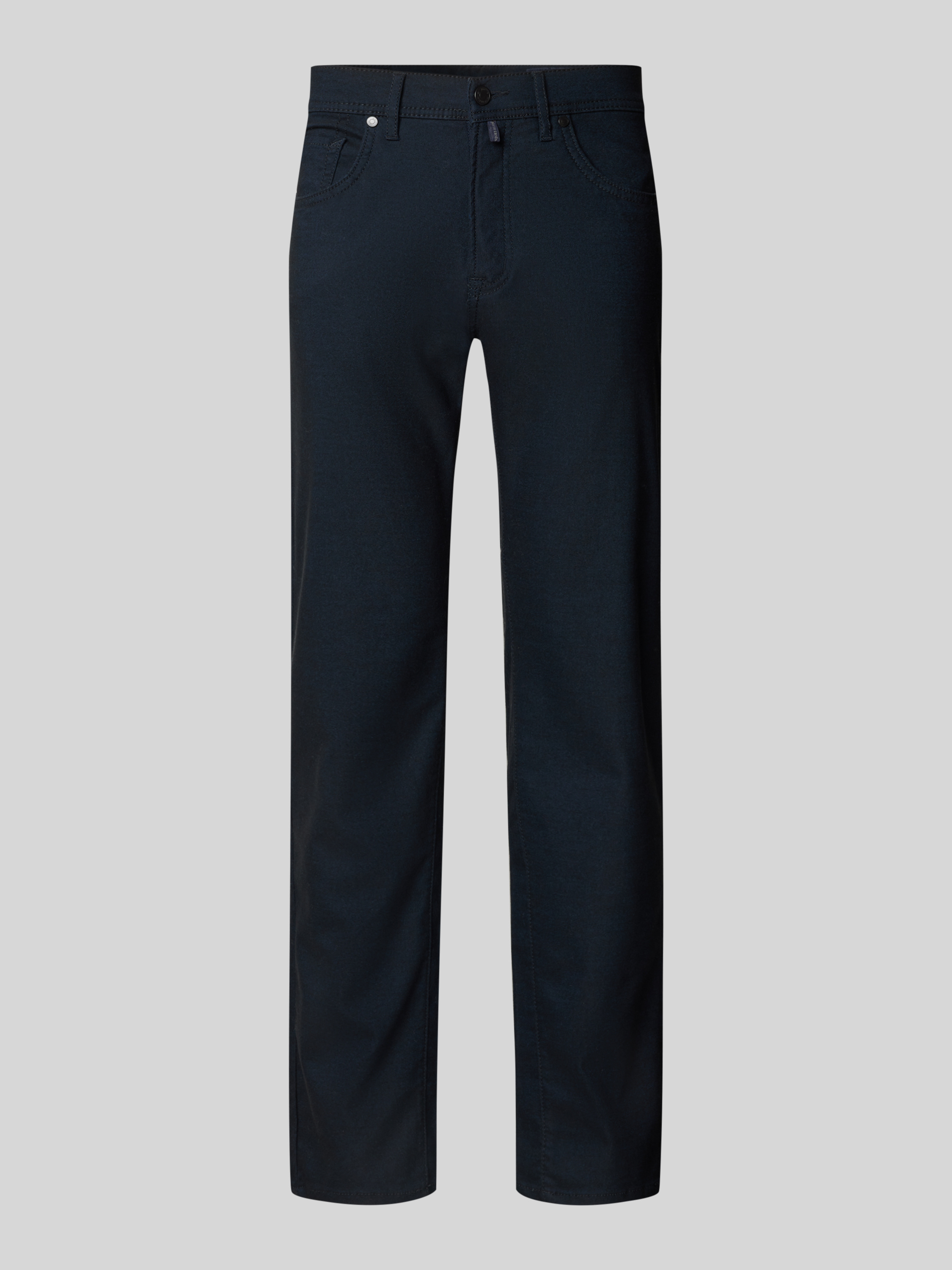 Slim fit stoffen broek met viscose, model 'Lyon' in marineblauw